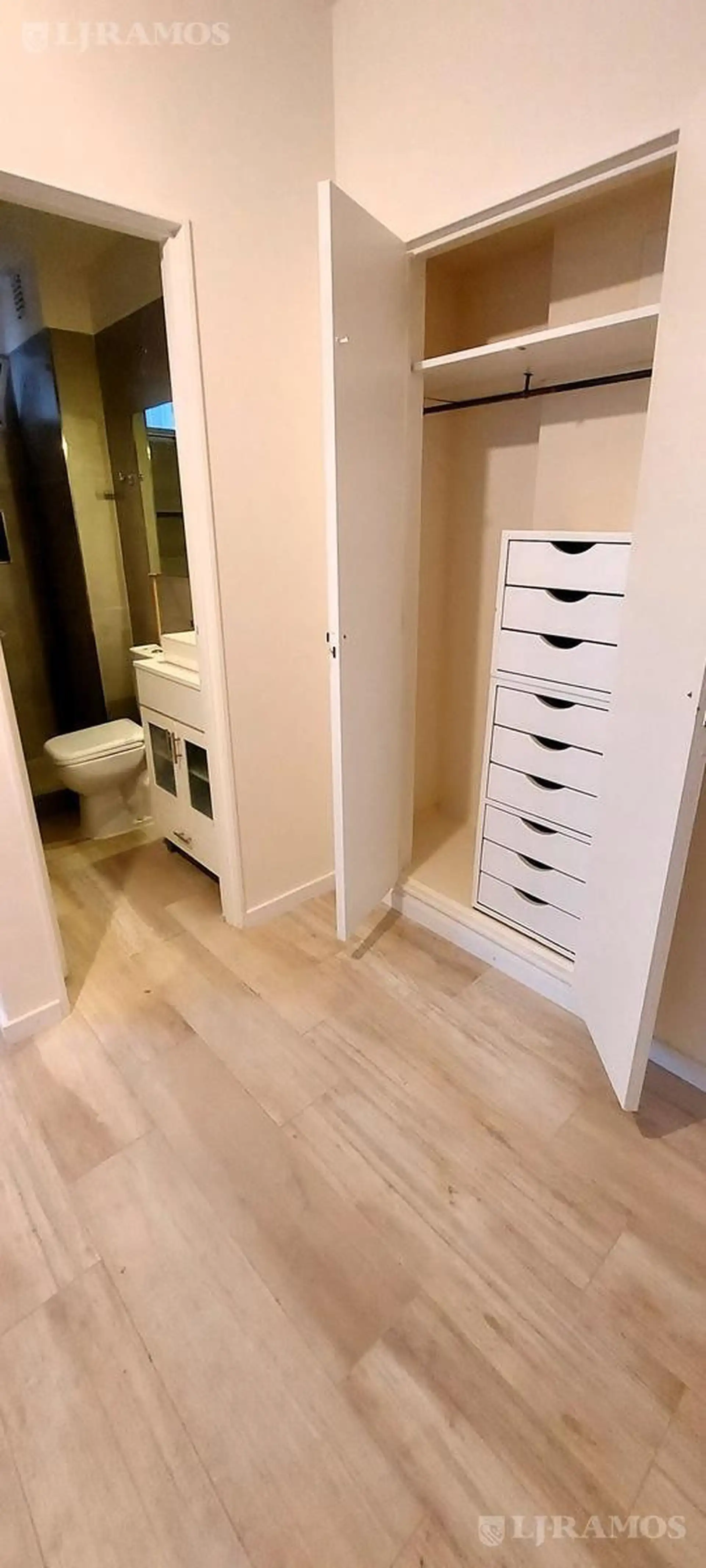 Unfurnished studio apartment, refurbished in 2023, 33 m² on the 8th floor in Recoleta. Internal unit with no balcony and bright interiors. Heating is provided by radiant floor heating and one split (cold-heat). The unit has three windows in the living-dining-bedroom area, plus one in the kitchen and one in the bathroom; porcelain tile floors and built-in storage with one wardrobe and a large storage room that can also serve as a laundry area due to a washing-machine connection. Delivered with an