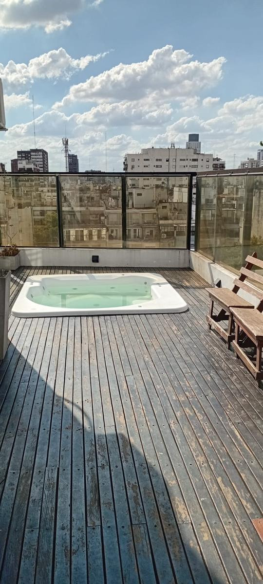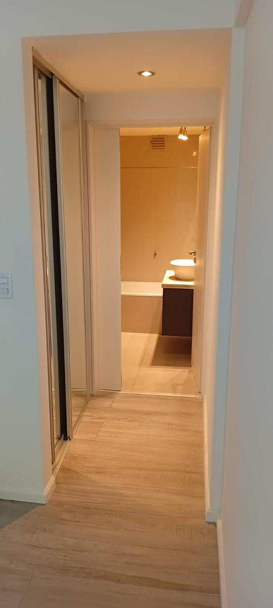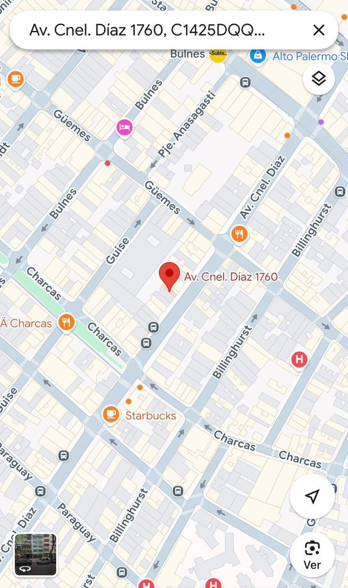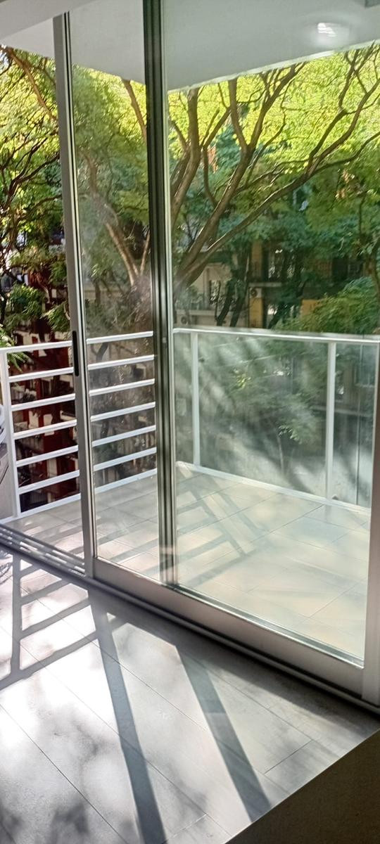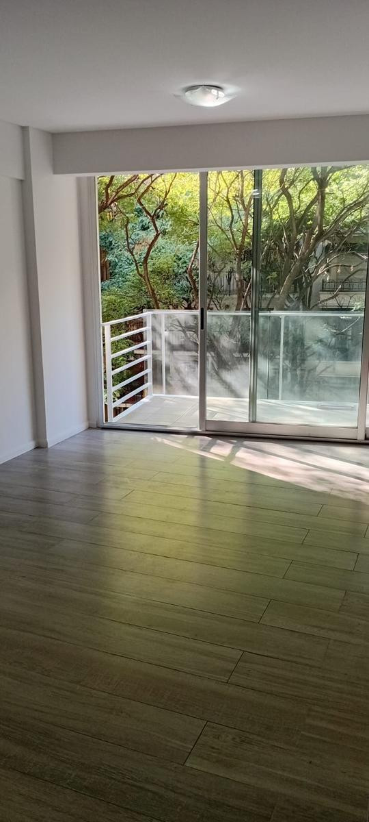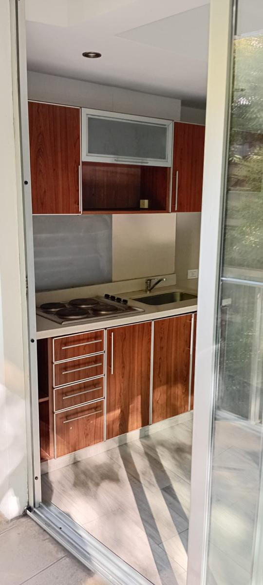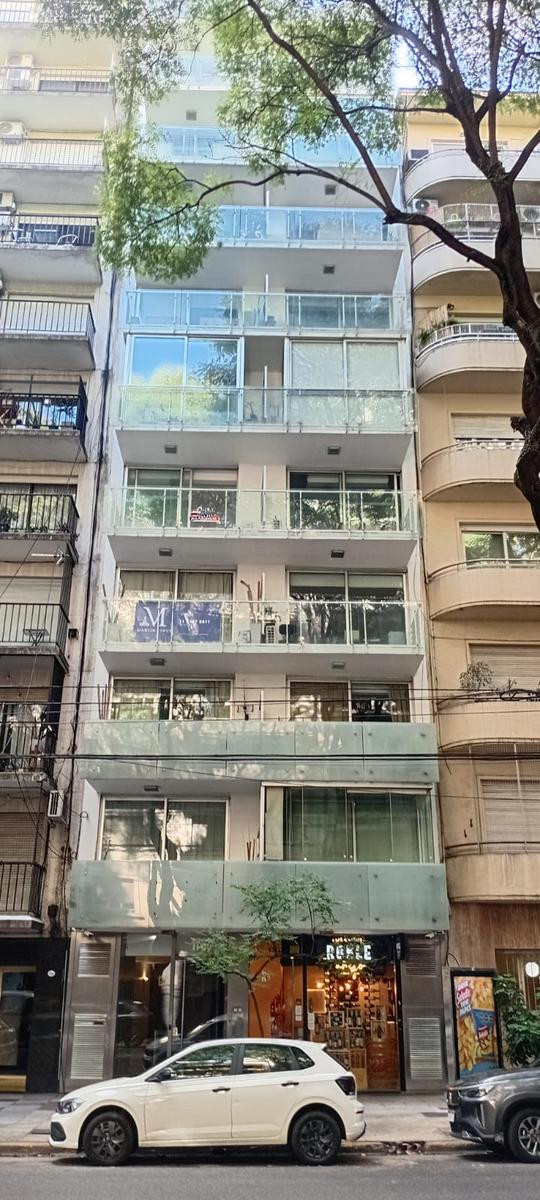 Studio apartment for rent in Recoleta, on Av. Coronel Díaz between Güemes and Chacras. Located on a high floor served by elevator, street-facing with a north-east orientation. It has an equipped kitchen with upper and lower cabinets, a main living space, and a full bathroom. Total area is approximately 35 m², with 33 m² covered. Building fees were approximately $130,000 as of 17/03/2026.