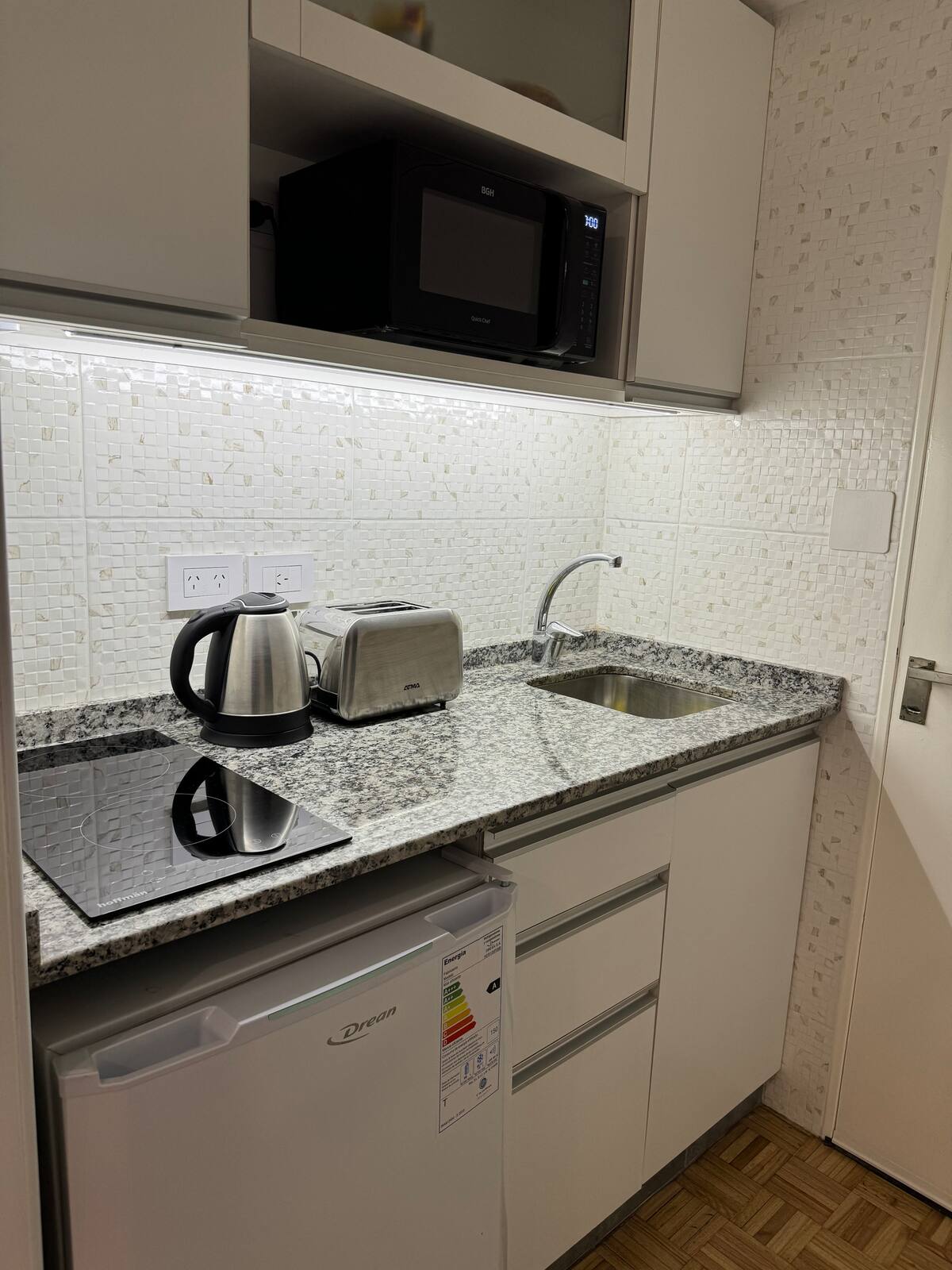 Studio apartment on the 6th floor with elevator, located two blocks from Plaza San Martín in Retiro. Double bed, desk, and a bathroom with a kitchenette are included. Wi-Fi is available in the work area.