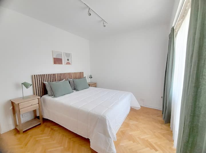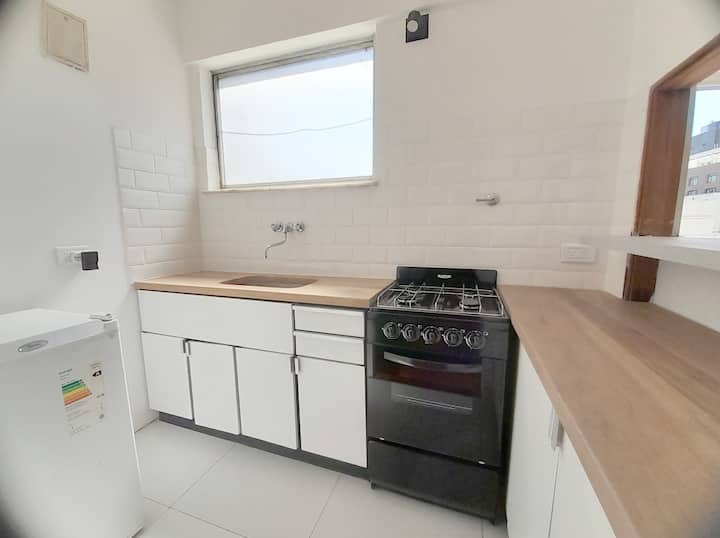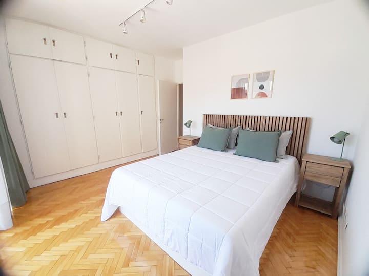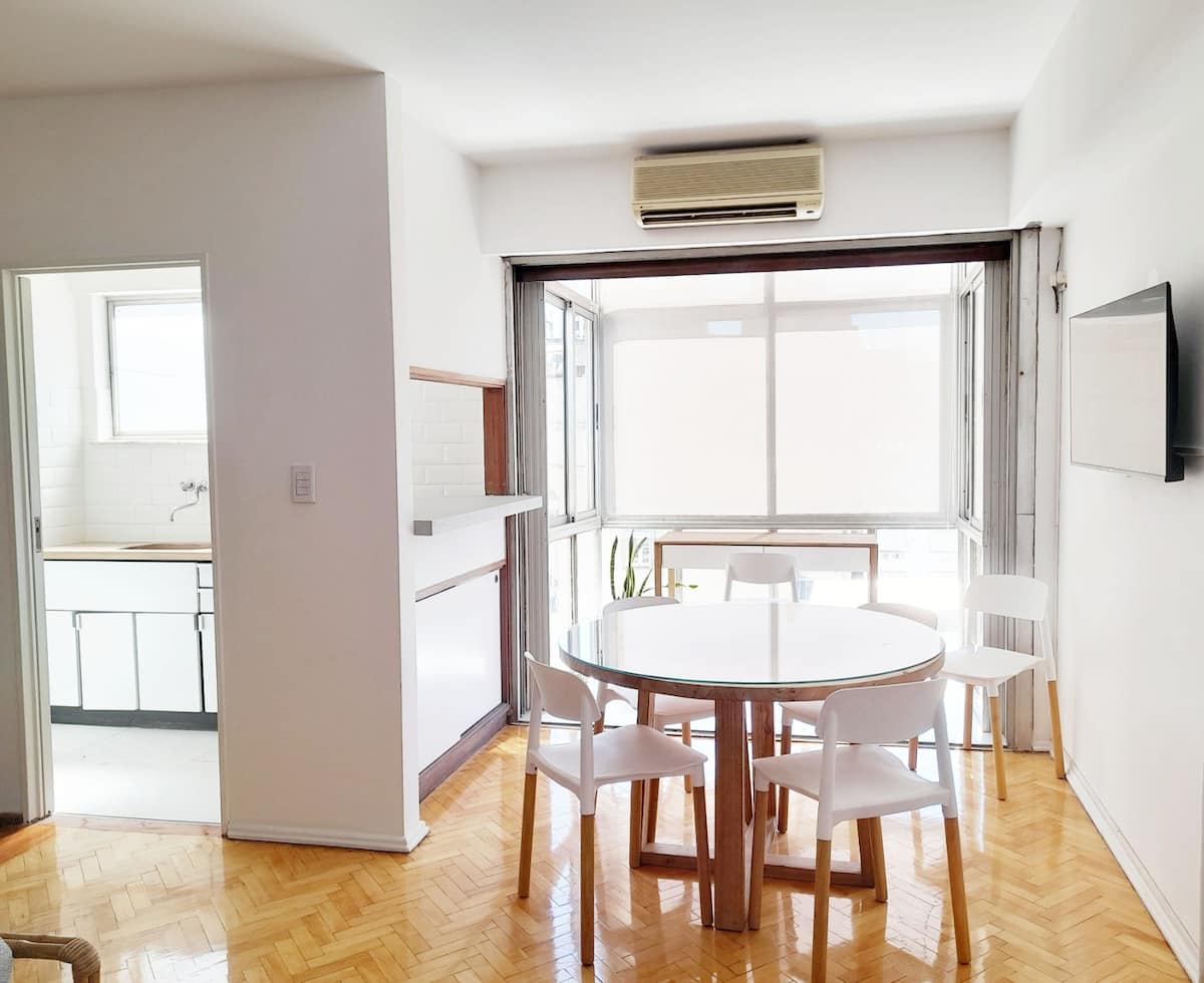 Duplex apartment in Retiro, Buenos Aires. It is described as equipped, with Smart TV and high-speed WiFi, plus linens, towels and toiletries. The listing provides no additional measurements or floor details.