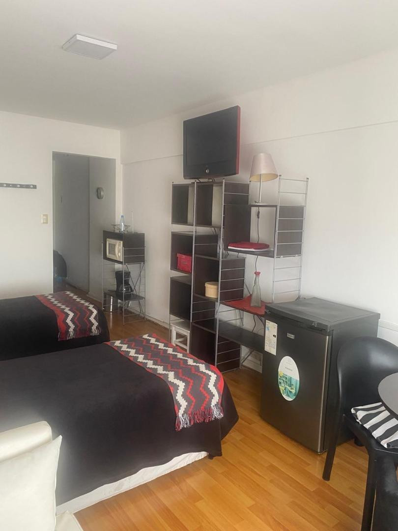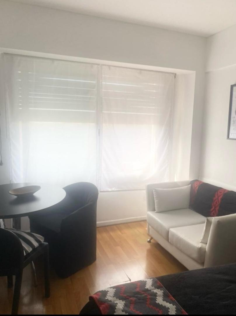 Furnished studio apartment of 30 m² on Av Libertador at 700 in Retiro, next to Patio Bullrich. For up to 2 people. The building has 24-hour security, a solarium and a laundry room. Building fees and other tenant-specific costs are not included and may include utilities such as electricity, gas, internet, ABL and AySA.
