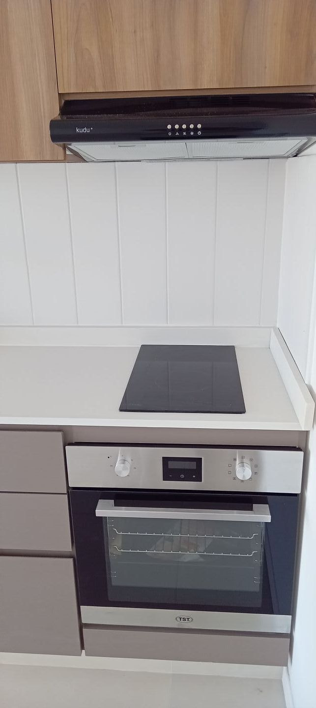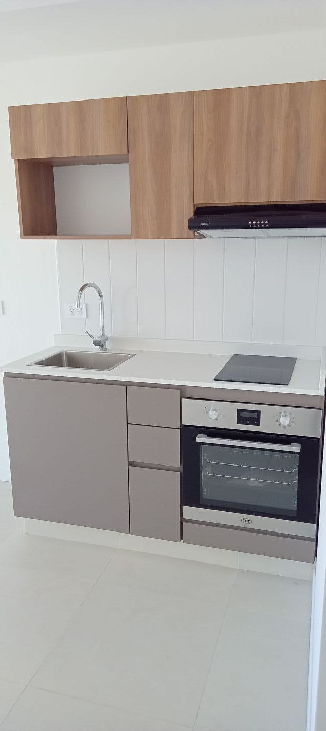 Brand new studio apartment for rent in San Cristóbal with a street-facing front balcony. Ceramic floors, semi-integrated kitchen with pantry storage, two-burner cooktop, electric oven and extractor. Full bathroom with shower, vanity with mirror and ventilation, communal rooftop terrace with open views and a grill. Pre-installed for air conditioning; (assigned) parking is optional and not included in the rent.