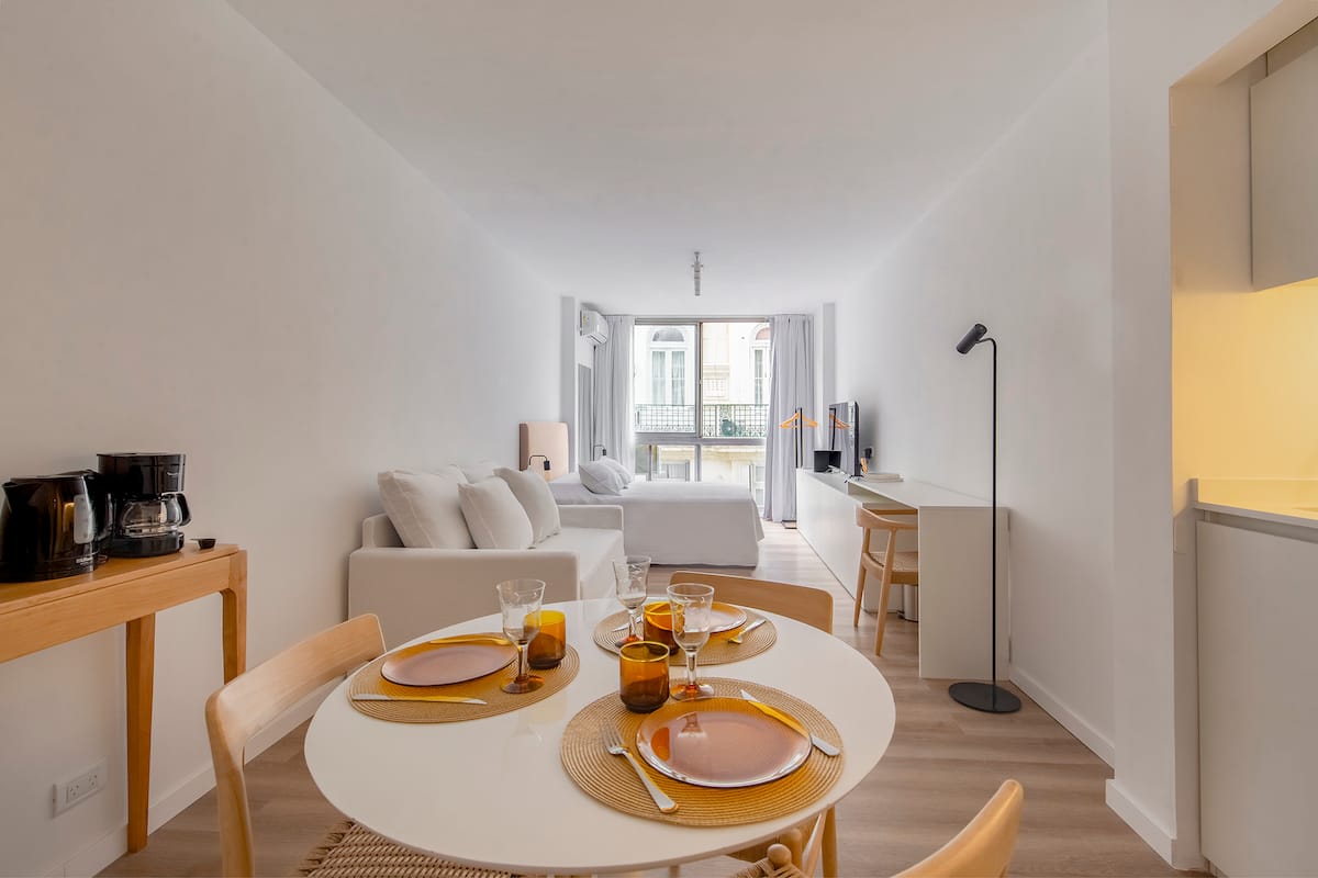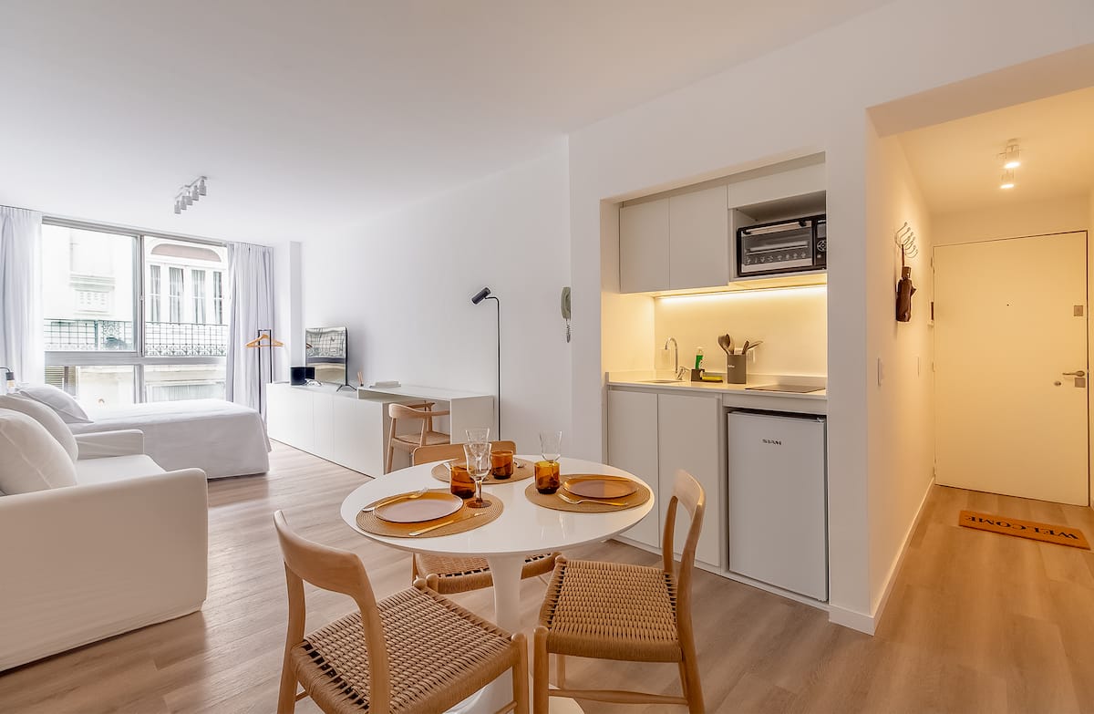 Apartment in San Nicolás, two blocks from Obelisco and Teatro Colón. It overlooks a French-style building. No further interior details are provided.