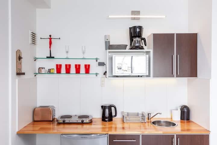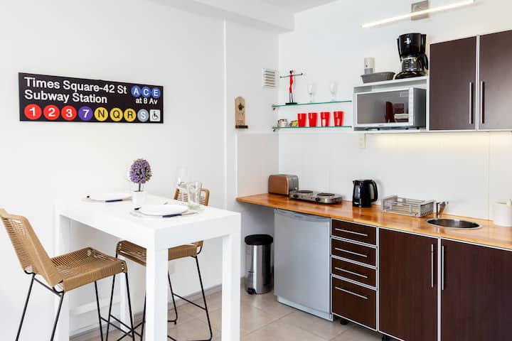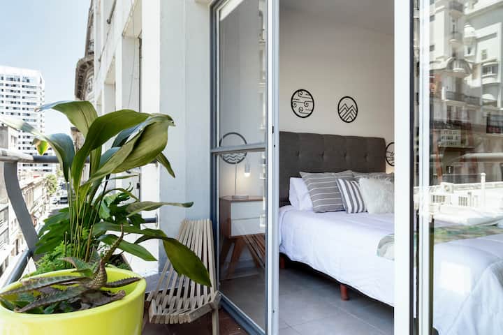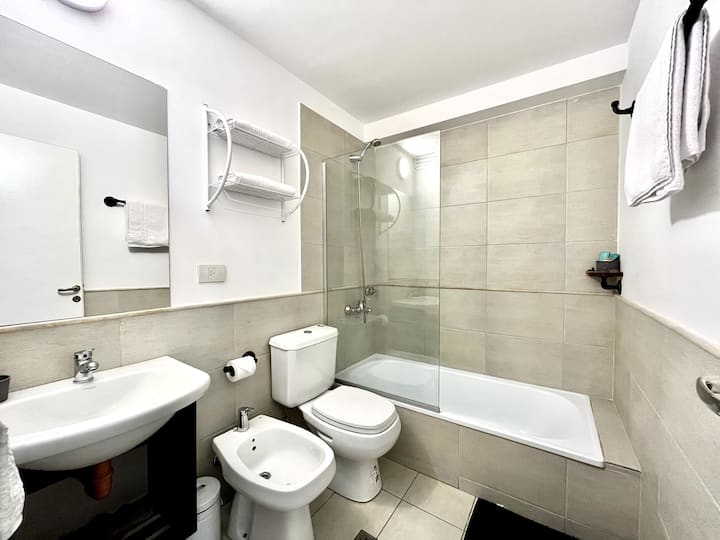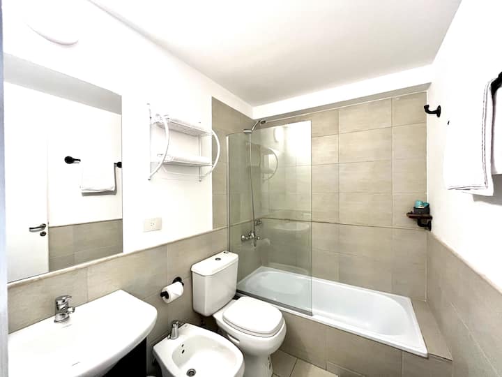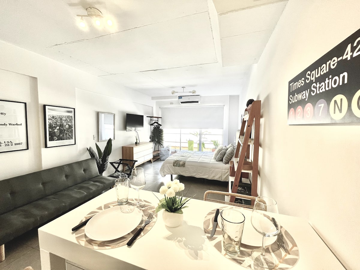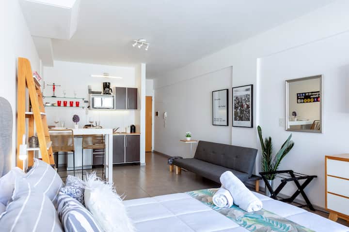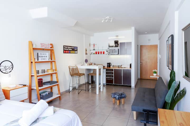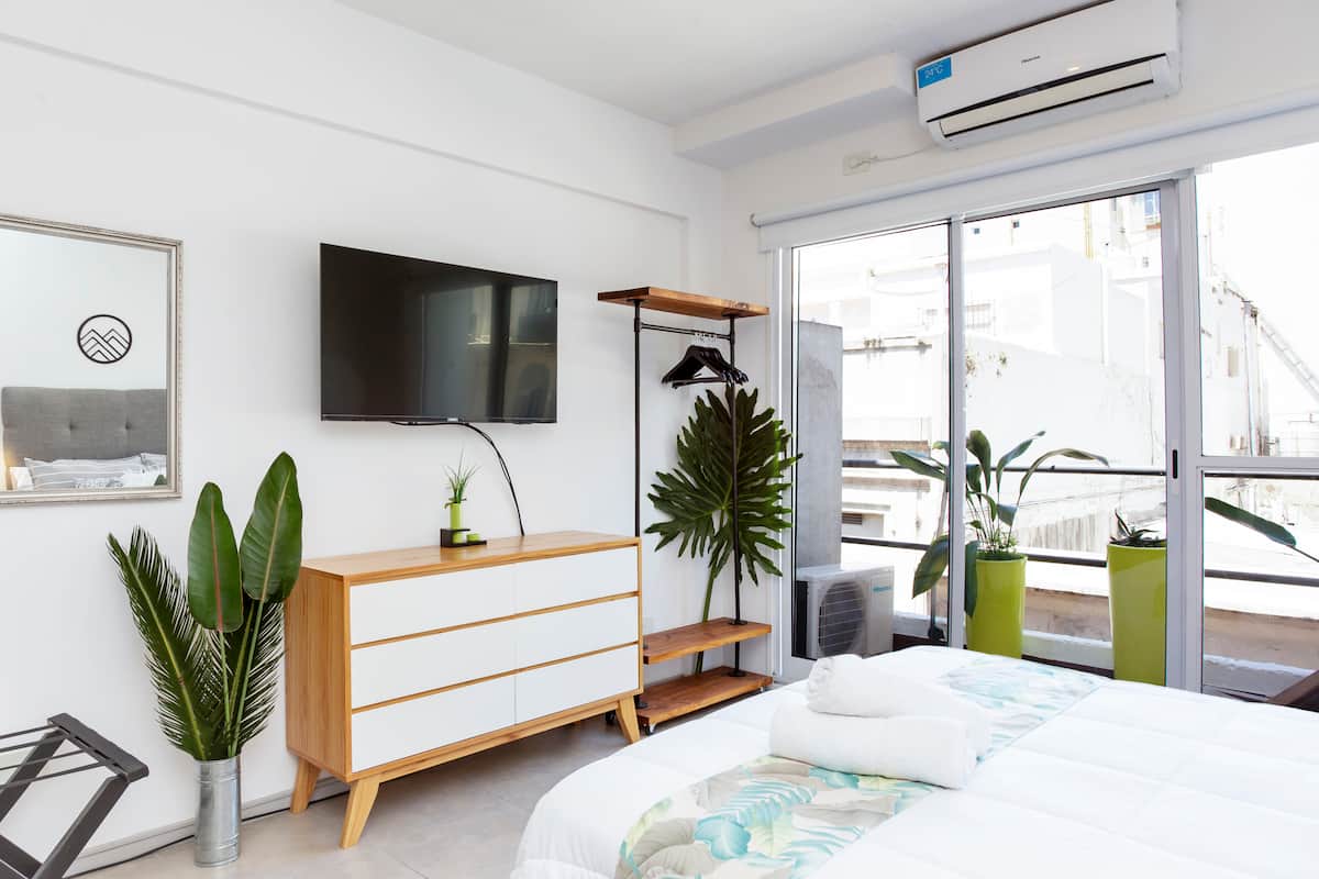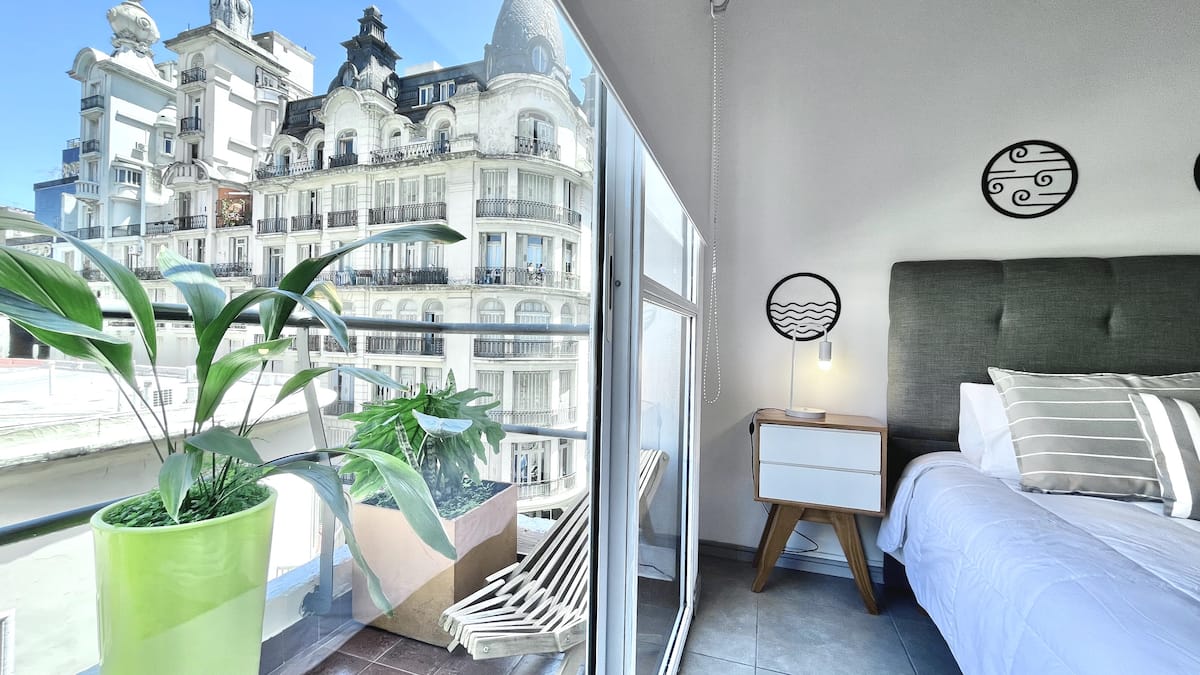 New one-bedroom apartment with a balcony in San Nicolás, 34 m² plus balcony. It has air conditioning and cable TV. The building is about 4 blocks from the Obelisk, 2 blocks from Av. Corrientes and 2 blocks from Av. 9 de Julio.