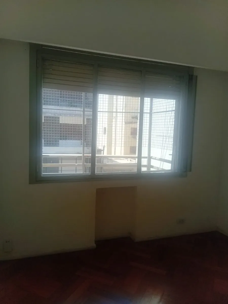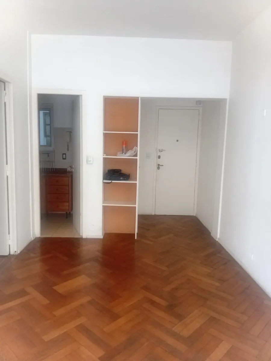 Two-room apartment with a large balcony, located between Tucumán, Rodríguez Peña and Montevideo in San Nicolás. The unit has air conditioning (hot/cold), an independent kitchen with space for a breakfast counter, and built-in storage with a wardrobe in the bedroom plus a second wardrobe near the entry. All rooms face out. The monthly rent is $630,000, with building fees (expensas) of about $190,000; AySA and ABL total about $40,000. A three-monthly rent adjustment applies based on INDEC. The lea