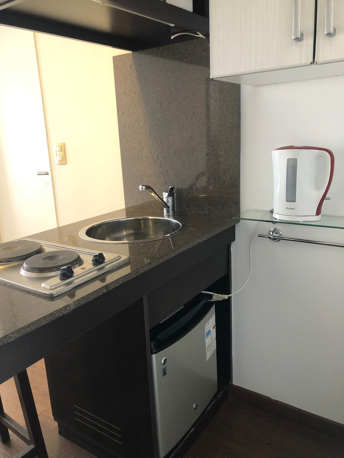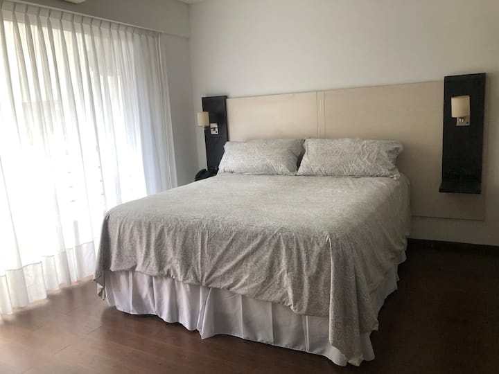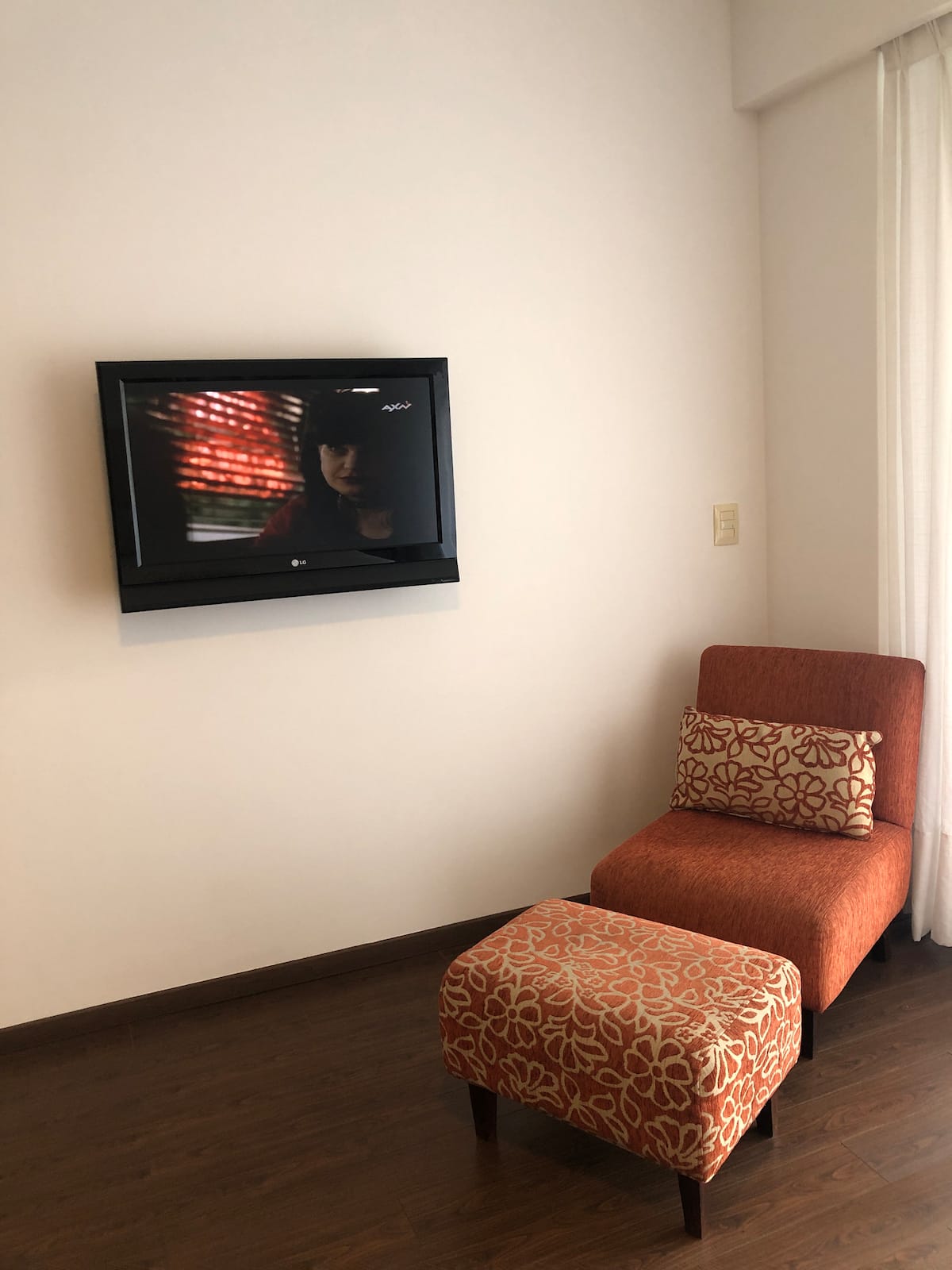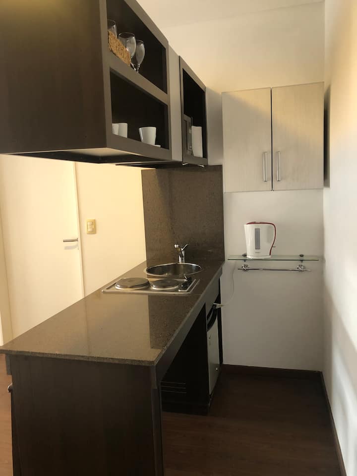 Apartment with 1 bedroom and a balcony in San Nicolás. Double bed and a sofa bed (sleeps 3), full kitchen with electric oven, stove, refrigerator, electric kettle and coffee maker, and air conditioning hot/cold. Includes a workspace with Wi-Fi, safe, hair dryer, and no on-site parking; a 24-hour public parking lot is around the corner.