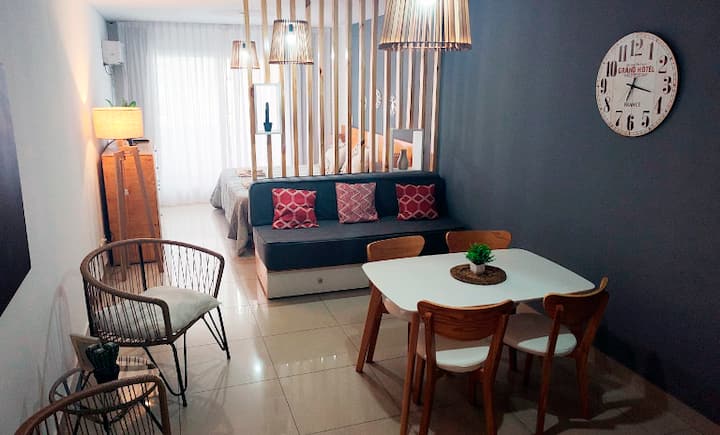 One-bedroom apartment in downtown Buenos Aires for up to 3 people. Air conditioning is provided, along with WiFi and a Smart TV. The unit includes a kitchen and a private balcony.