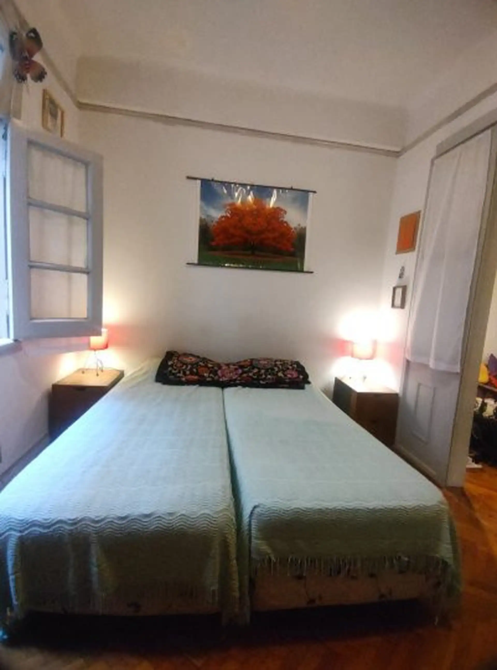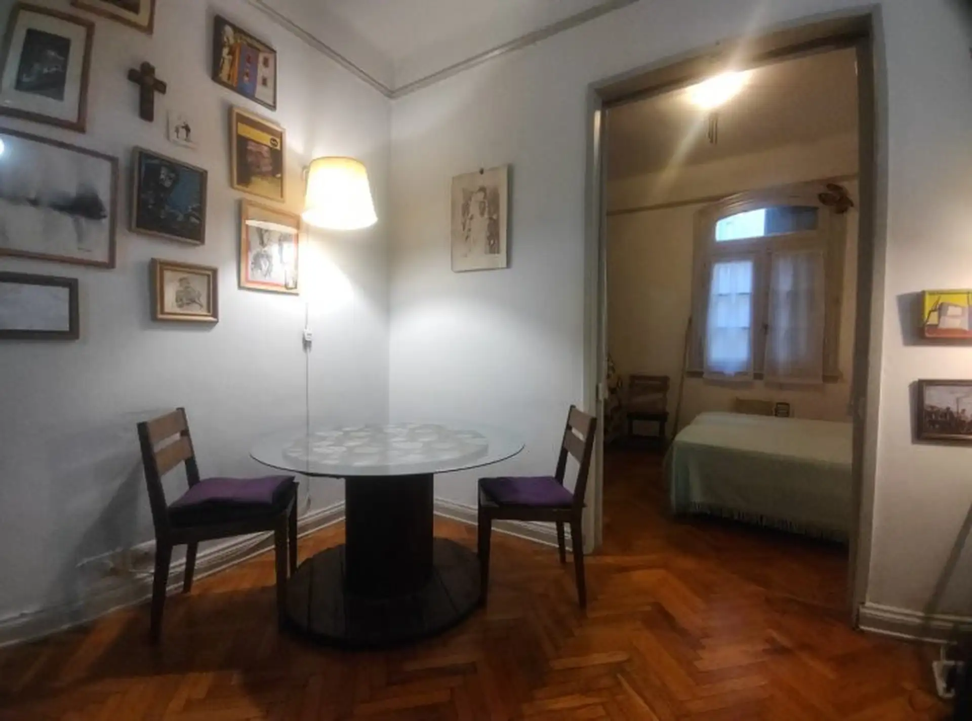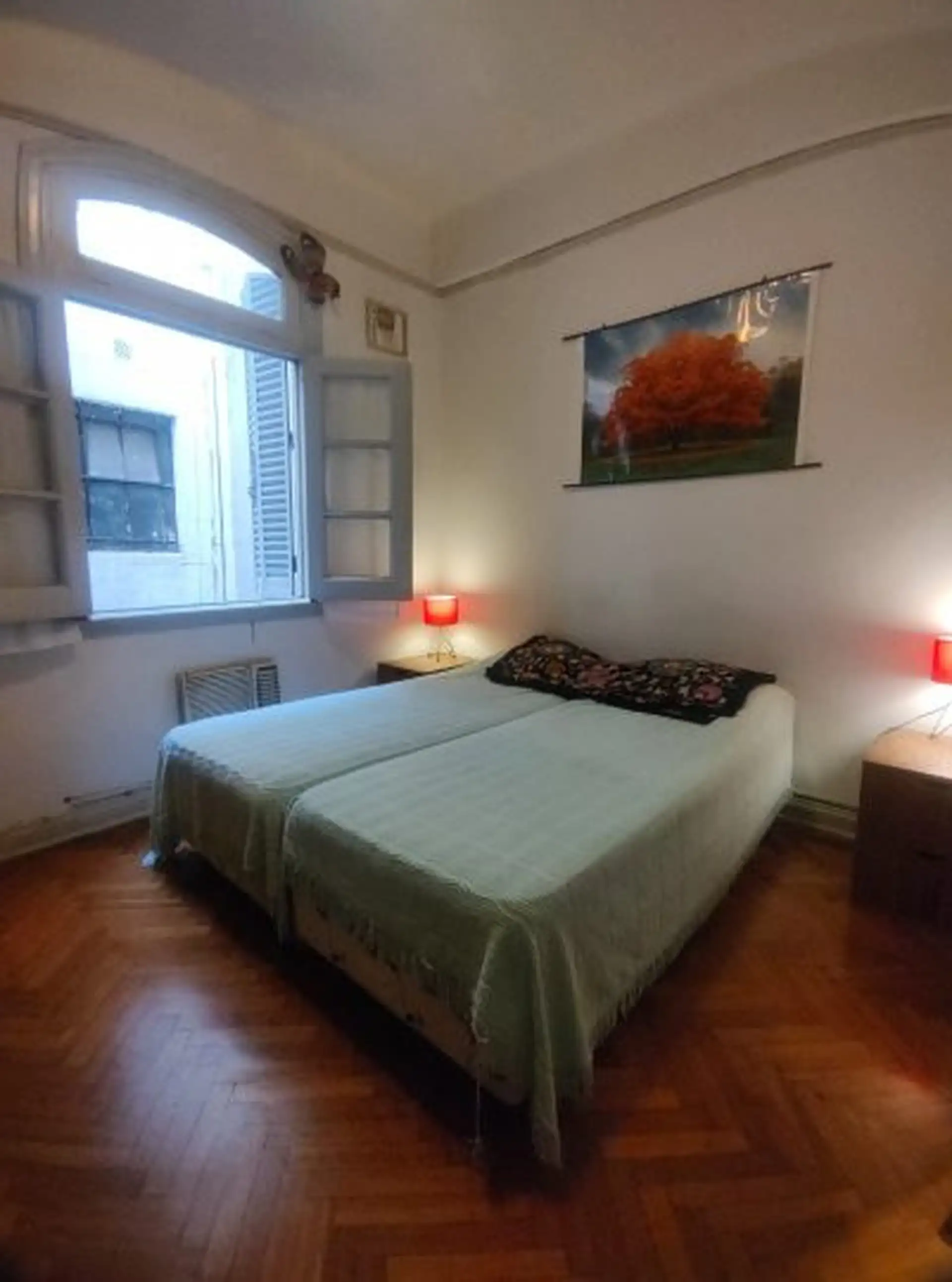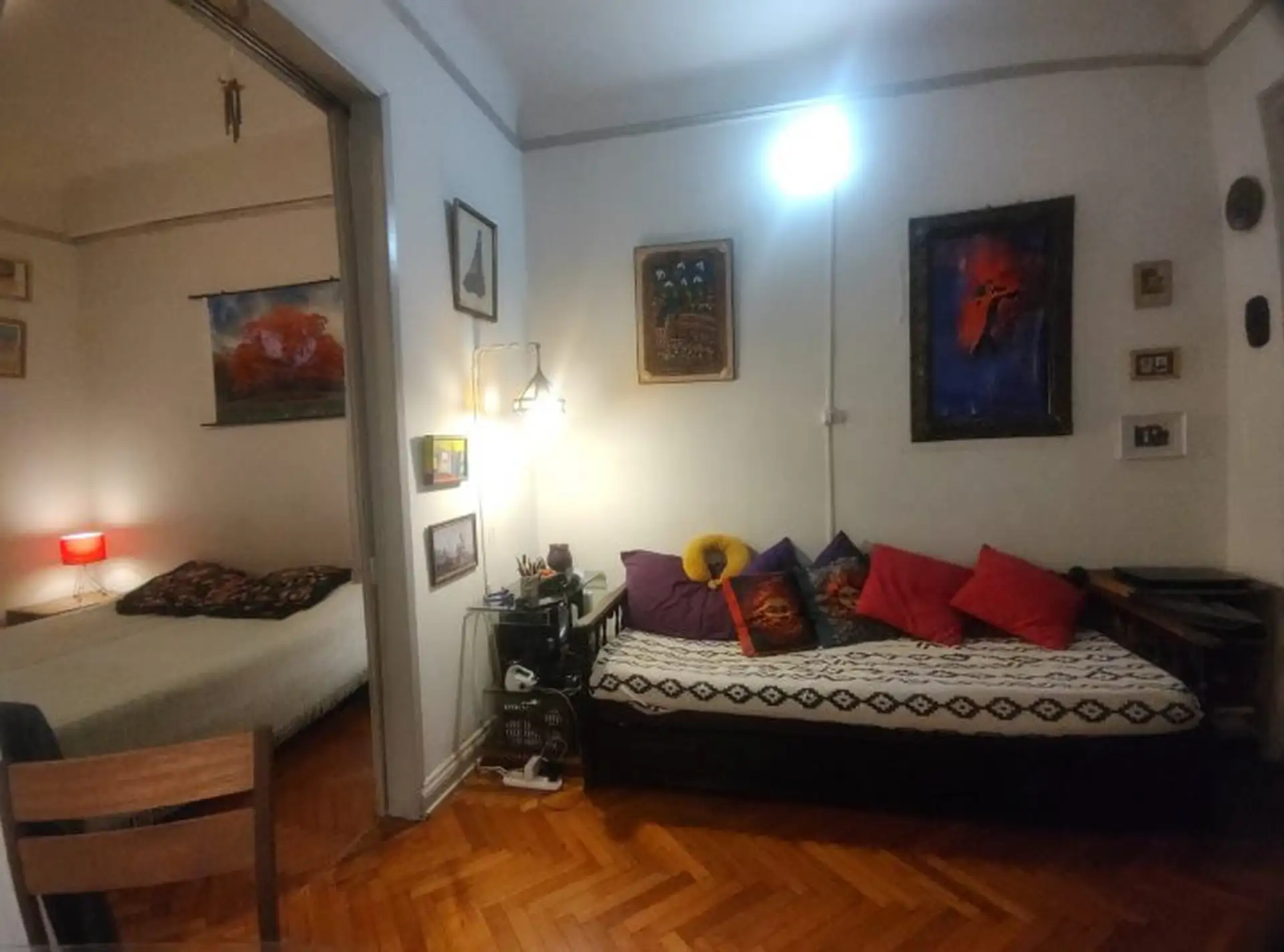 Two-room apartment for temporary rent in San Nicolás. Furnished and fully equipped. Temporary lease for 3 or 6 months, renewable. The listing places the unit close to universities, public transport, supermarkets, restaurants and tourist areas in downtown Buenos Aires, and cites nearby bus routes 5, 6, 9, 10, 17, 23, 24, 26, 29, 45, 50, 59, 67, 70, 91, 99, 100, 105, 109, 111, 115, 129, 132, 140, 146, 180, plus subte stations 9 de Julio (Línea D), C. Pellegrini (Línea B), Diagonal Norte (Línea C),