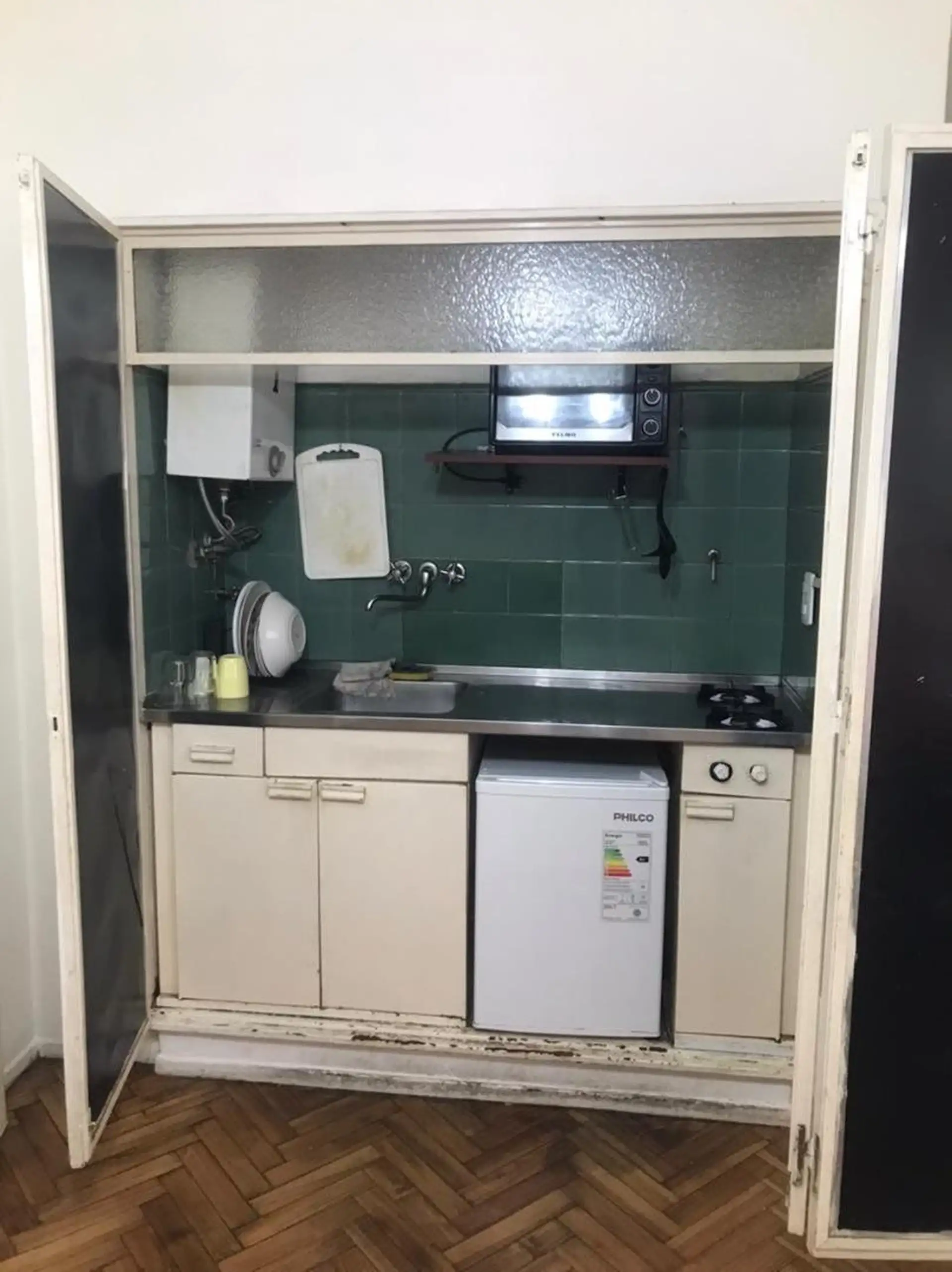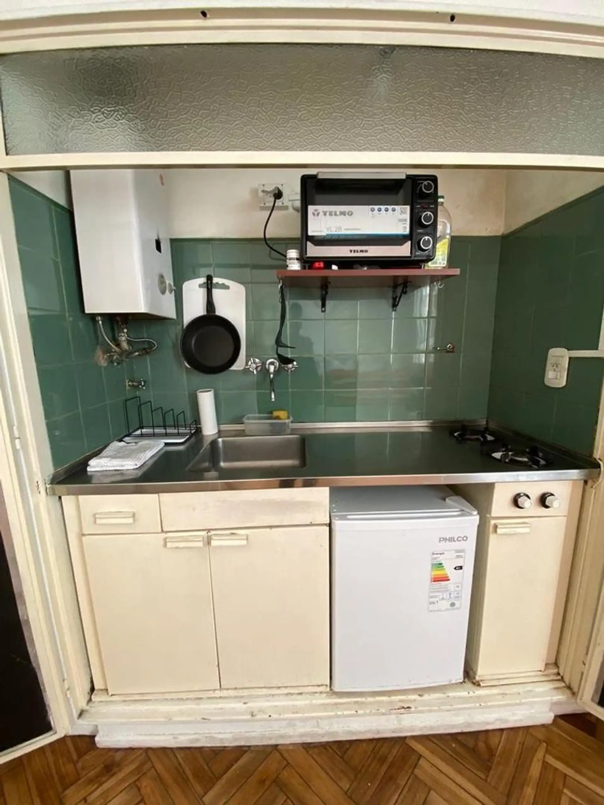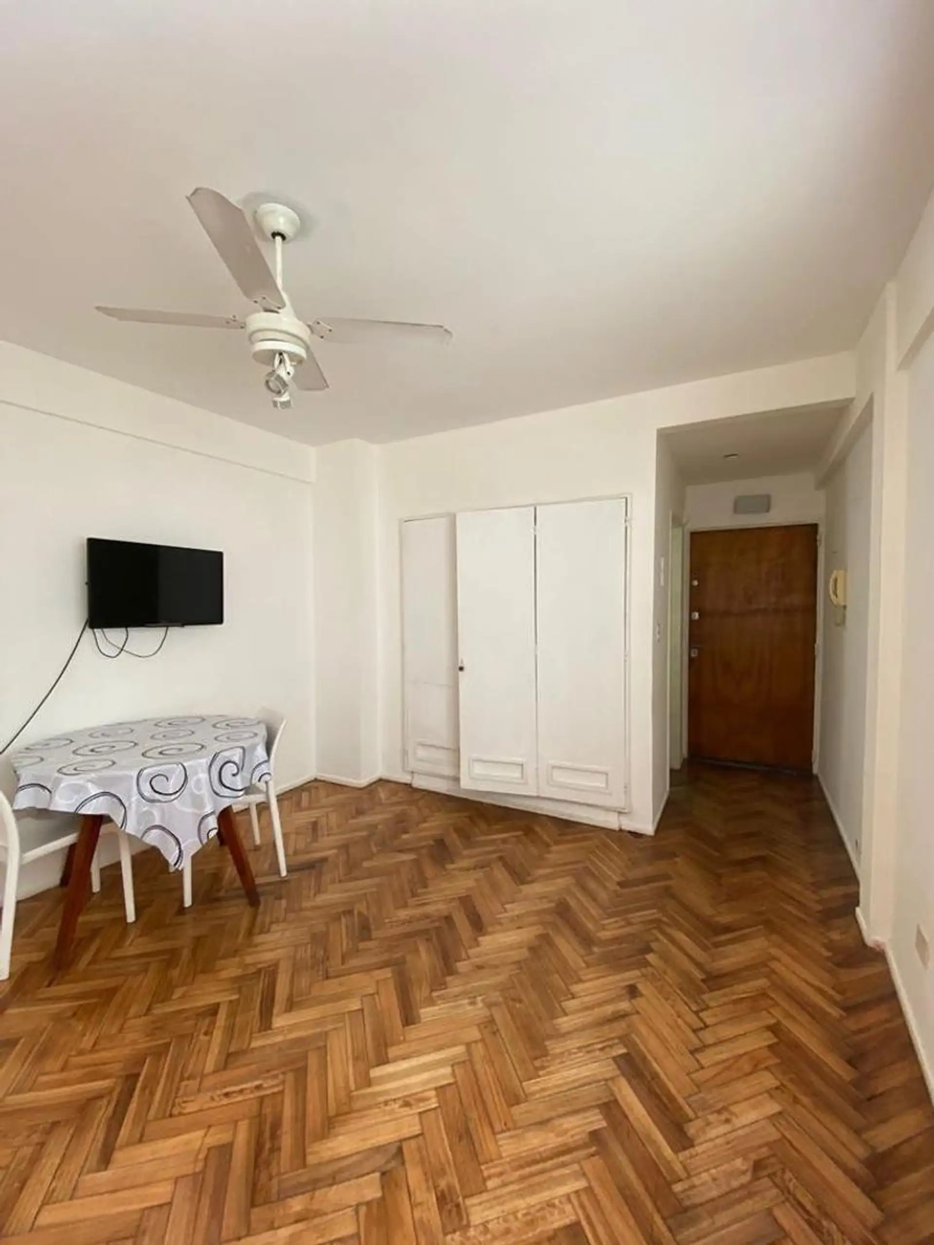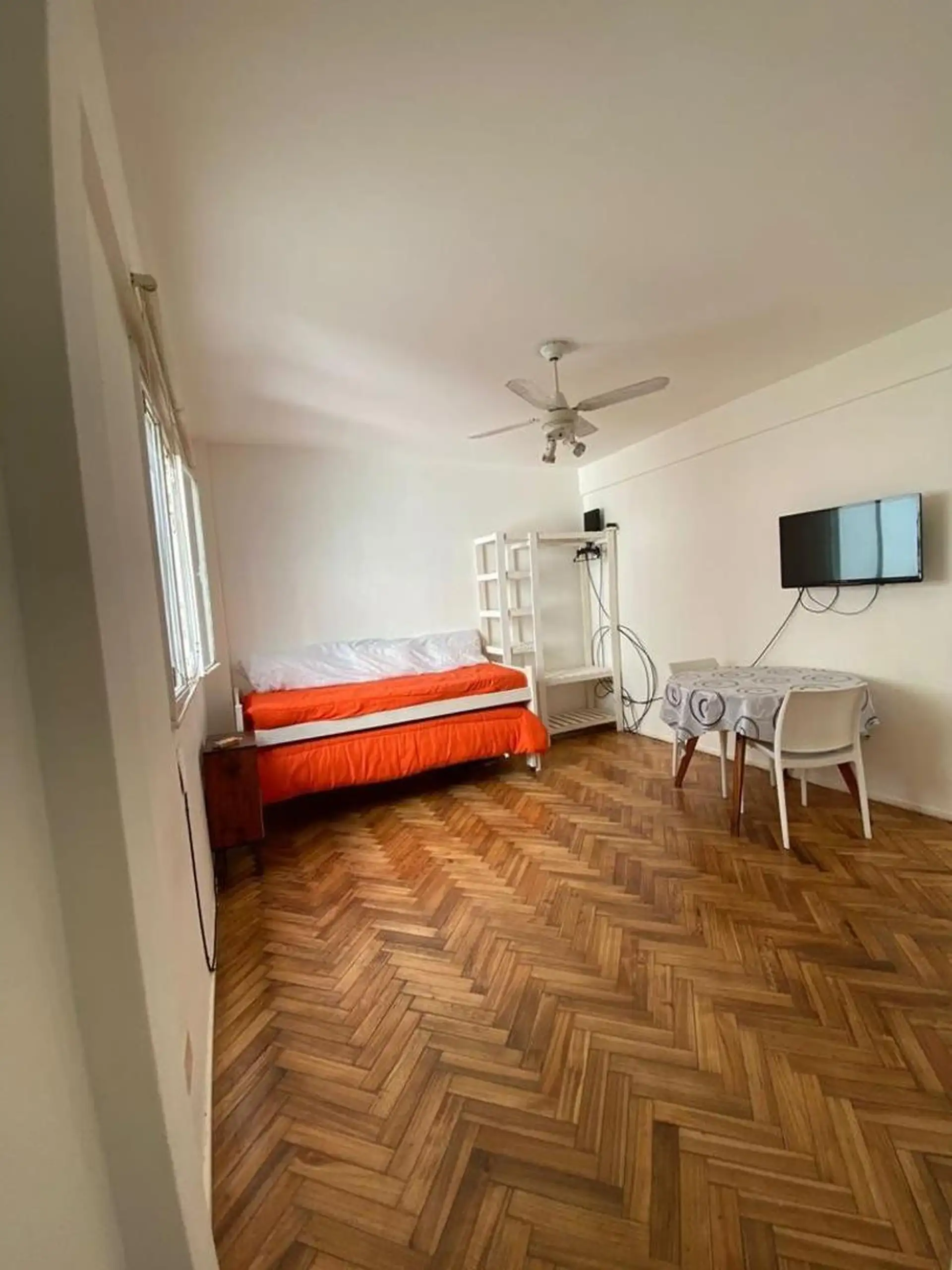 One-bedroom, courtyard-facing (contrafrente) apartment with a separate kitchen and an open view. Rent is USD 280 plus building fees of ARS 30,000. Move-in requires approximately 3 months upfront: one month’s rent, one month’s deposit and one month’s commission. Furnished.