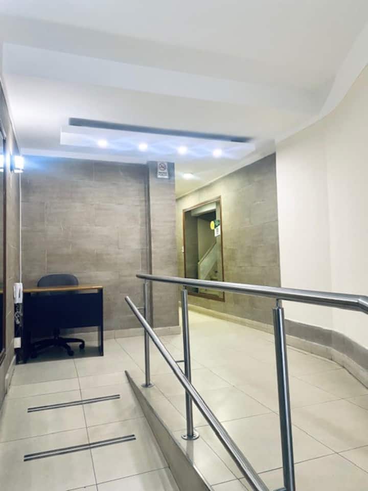 One-bedroom apartment in Buenos Aires, 300 metres from Av. Corrientes near the Obelisk and Teatro Colón. The unit has a double bed, desk, living area and a kitchen with toaster and electric kettle, plus a minibar with dishes and complimentary infusions. Wi-Fi, cable TV, air conditioning, hair dryer and iron are included, and it has a hall with double doors with access for people with limited mobility.