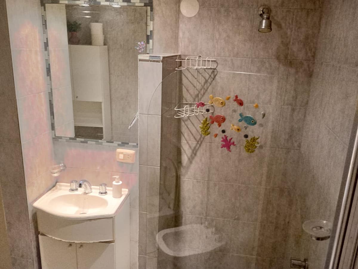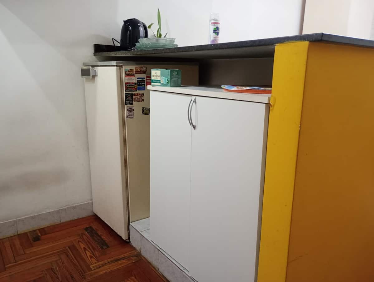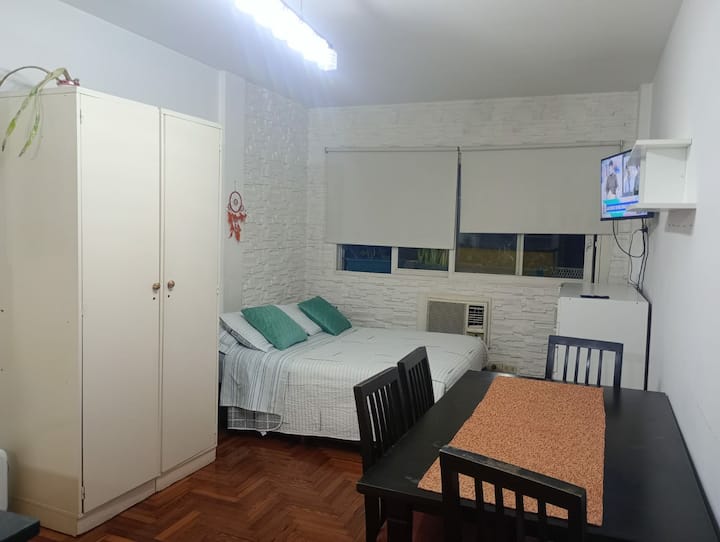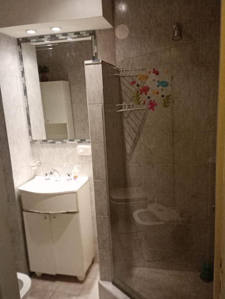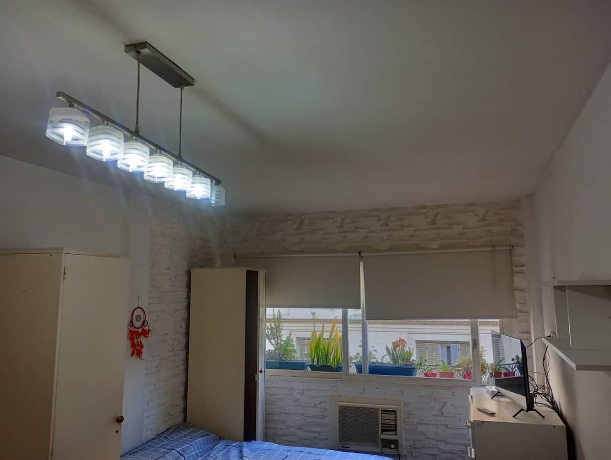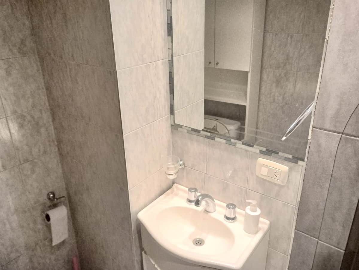 Apartment in Microcentro with a window on Esmeralda street. It has 1 bedroom and offers either 2 single beds or 1 double bed. Amenities include Smart TV, air conditioning, an electric oven and a refrigerator, a kitchen with 2 ovens, and a bathroom. Housewares for 4 people are provided, with sheets and towels for short stays only.