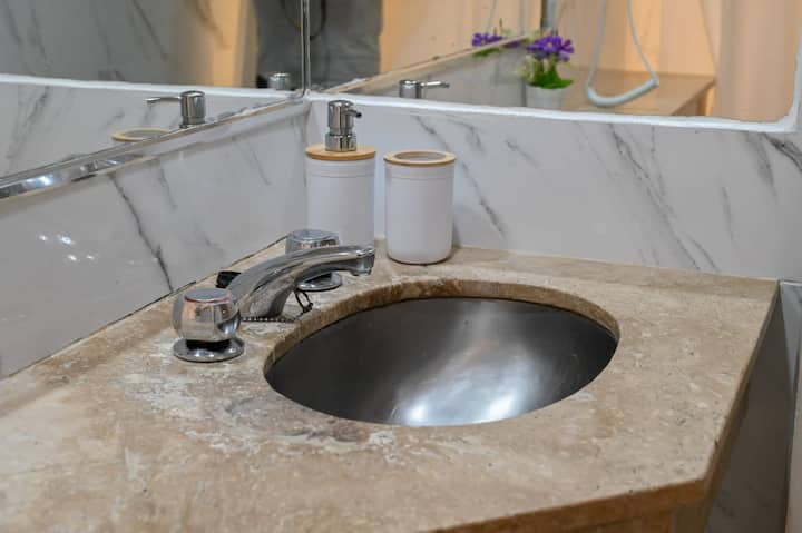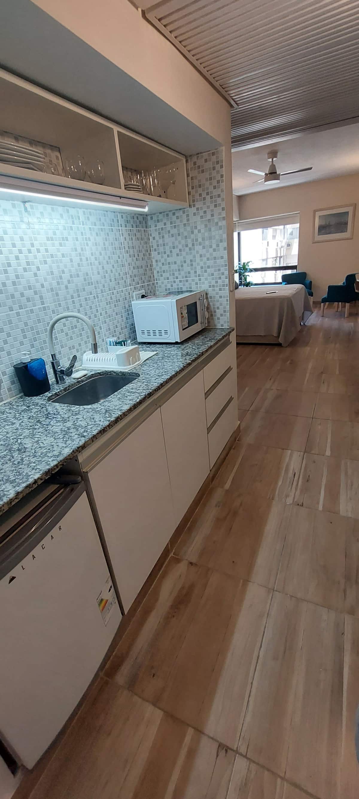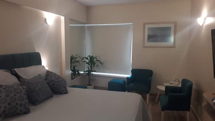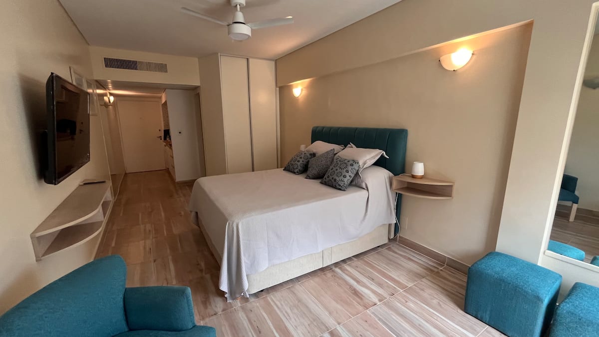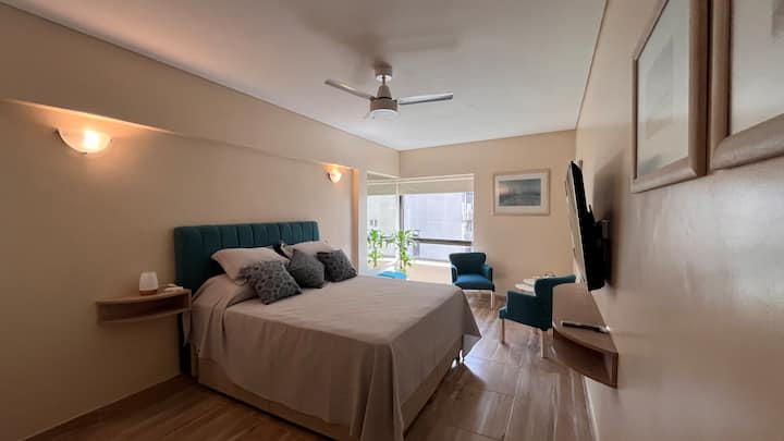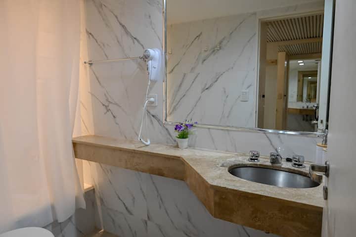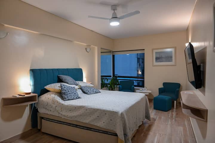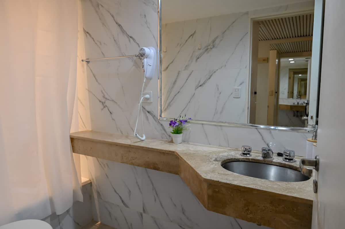 Apartment in Buenos Aires Centre, a few metres from Obelisco on Av. Corrientes. It is located next to Teatro Colón, in front of Gran Rex, and about 8 blocks from Puerto Madero. One full bathroom with bathtub and a vanity with countertop and sink; a large mirror. Living room is integrated into the room. The rental does not include a hotel service room. Amenities include TV, WiFi, air conditioning and central heating.