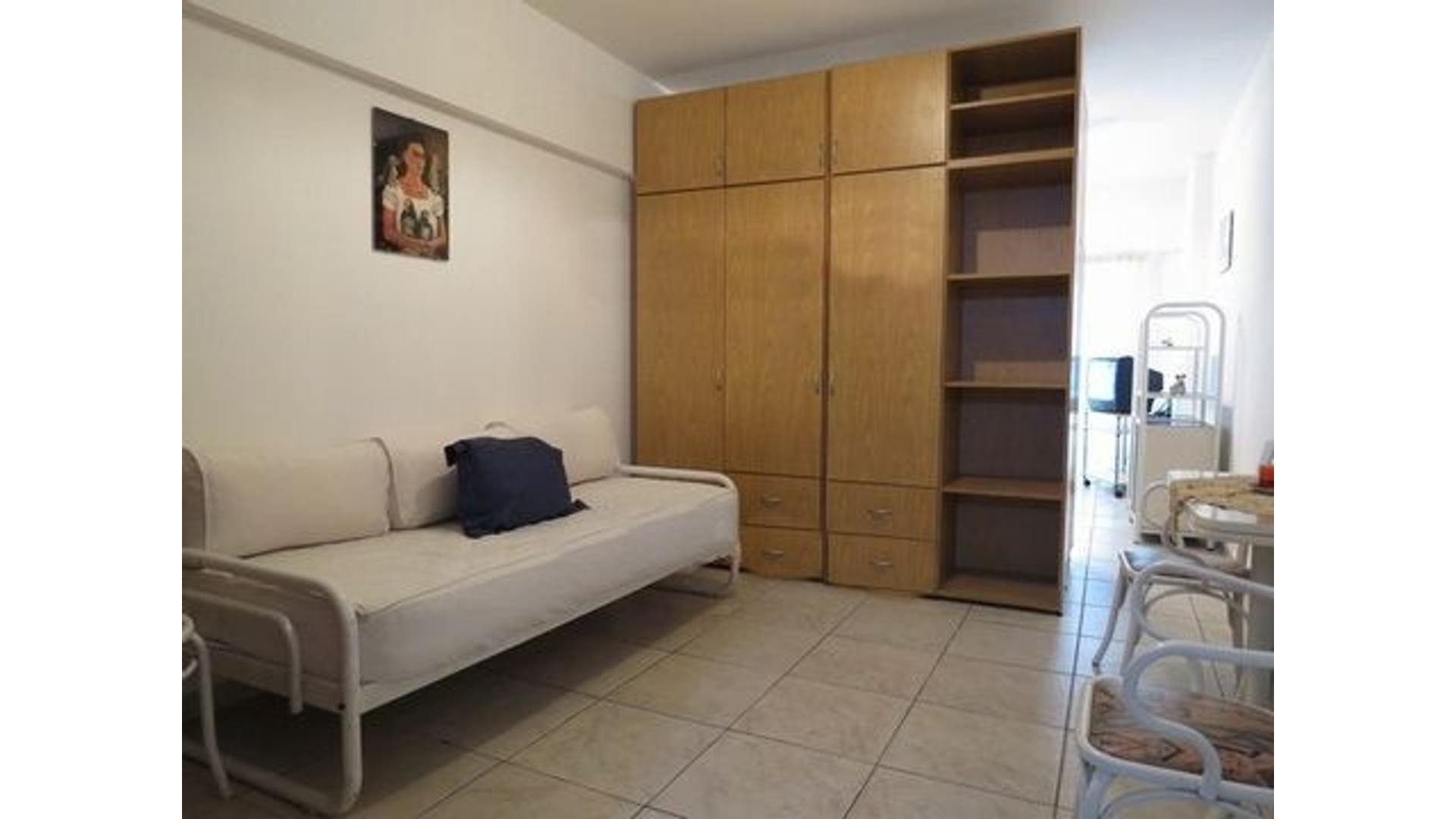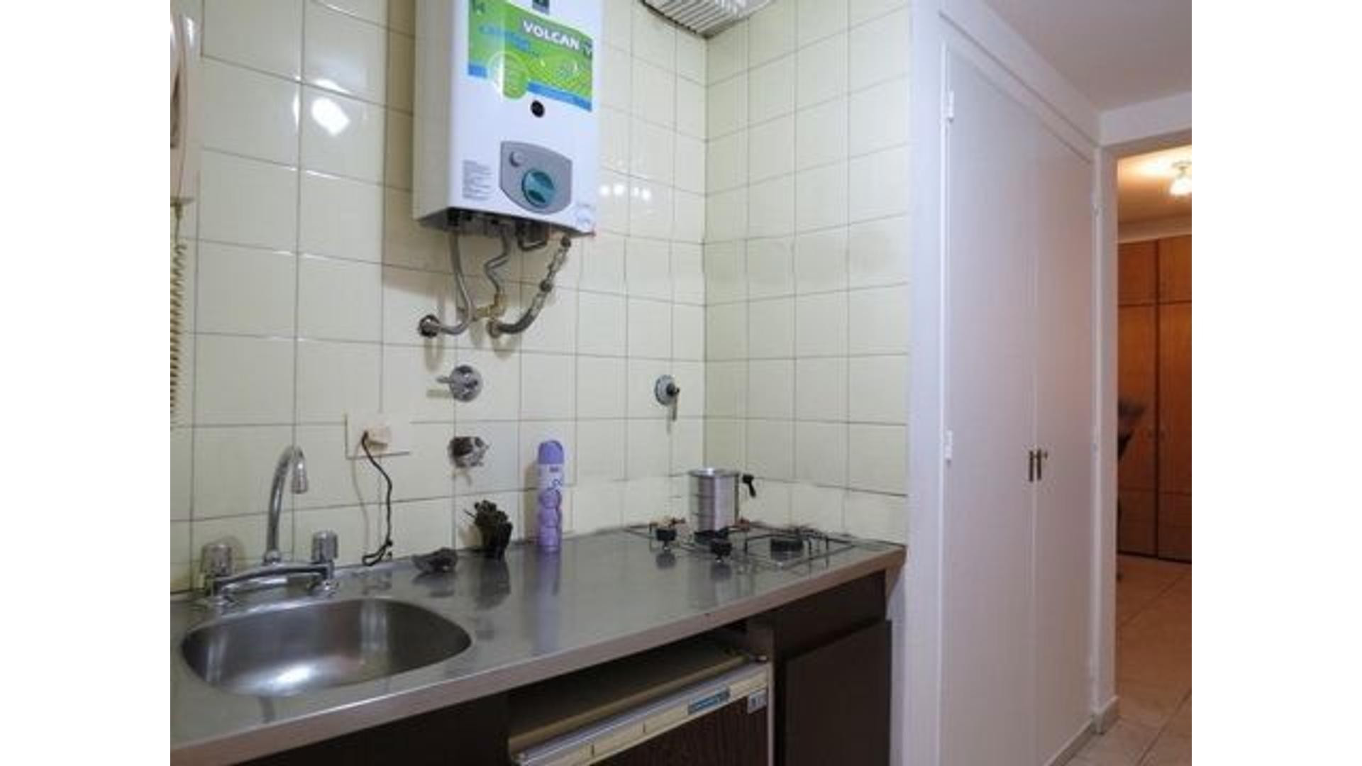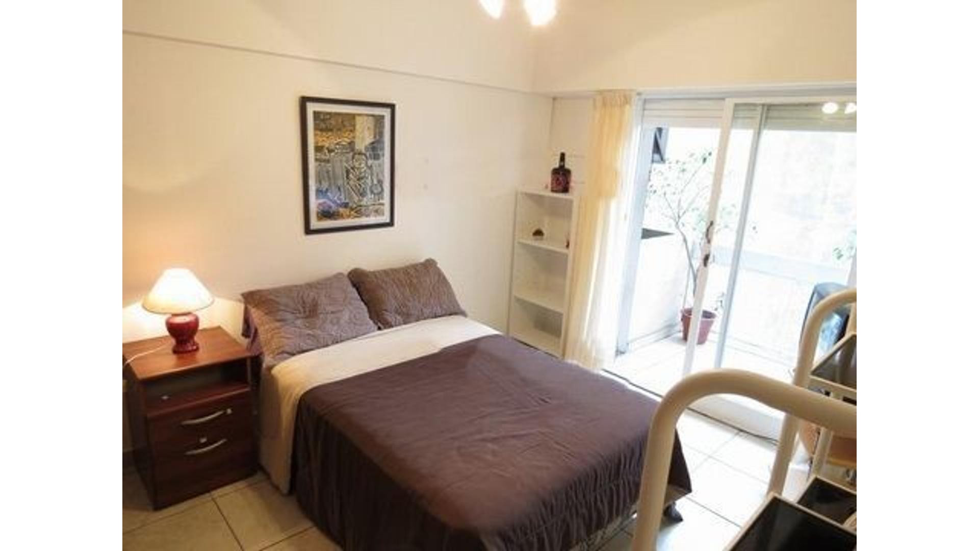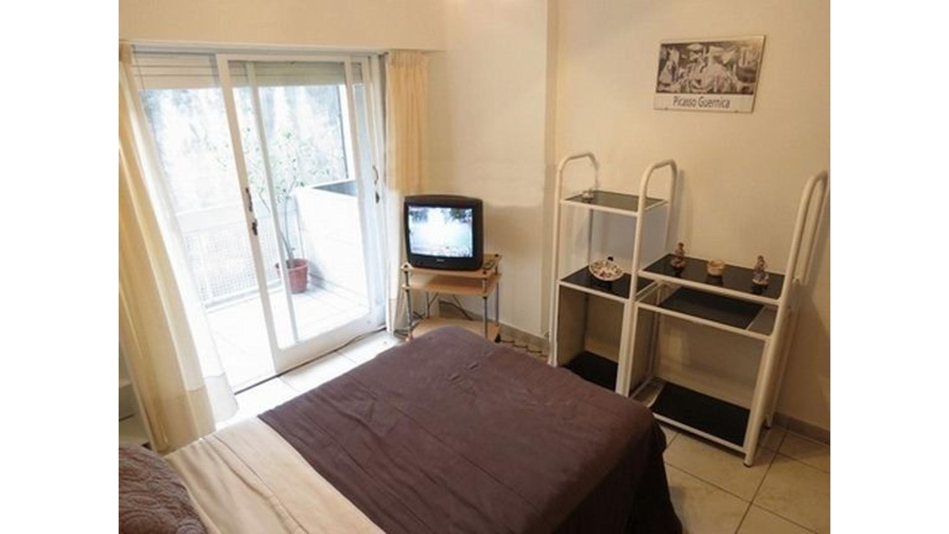 Studio apartment on Av. Corrientes at 1600, with a balcony facing the courtyard. Interior space is divided with a built-in wardrobe; a sofa bed is in the living area. Fully furnished with a under-counter fridge, microwave, double bed, space heater, cable, internet and television. The building has a pool on the 16th floor with changing rooms. Rental terms require an approximate three-month entry with one month’s rent, one month’s deposit and one month’s commission.