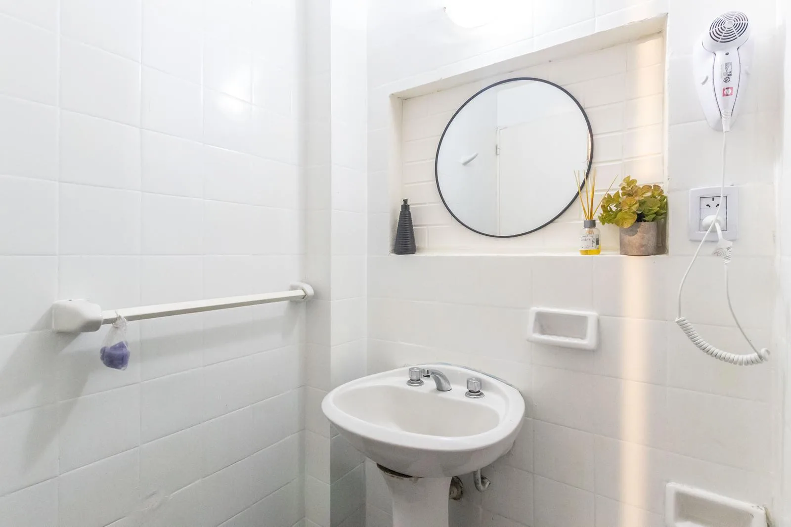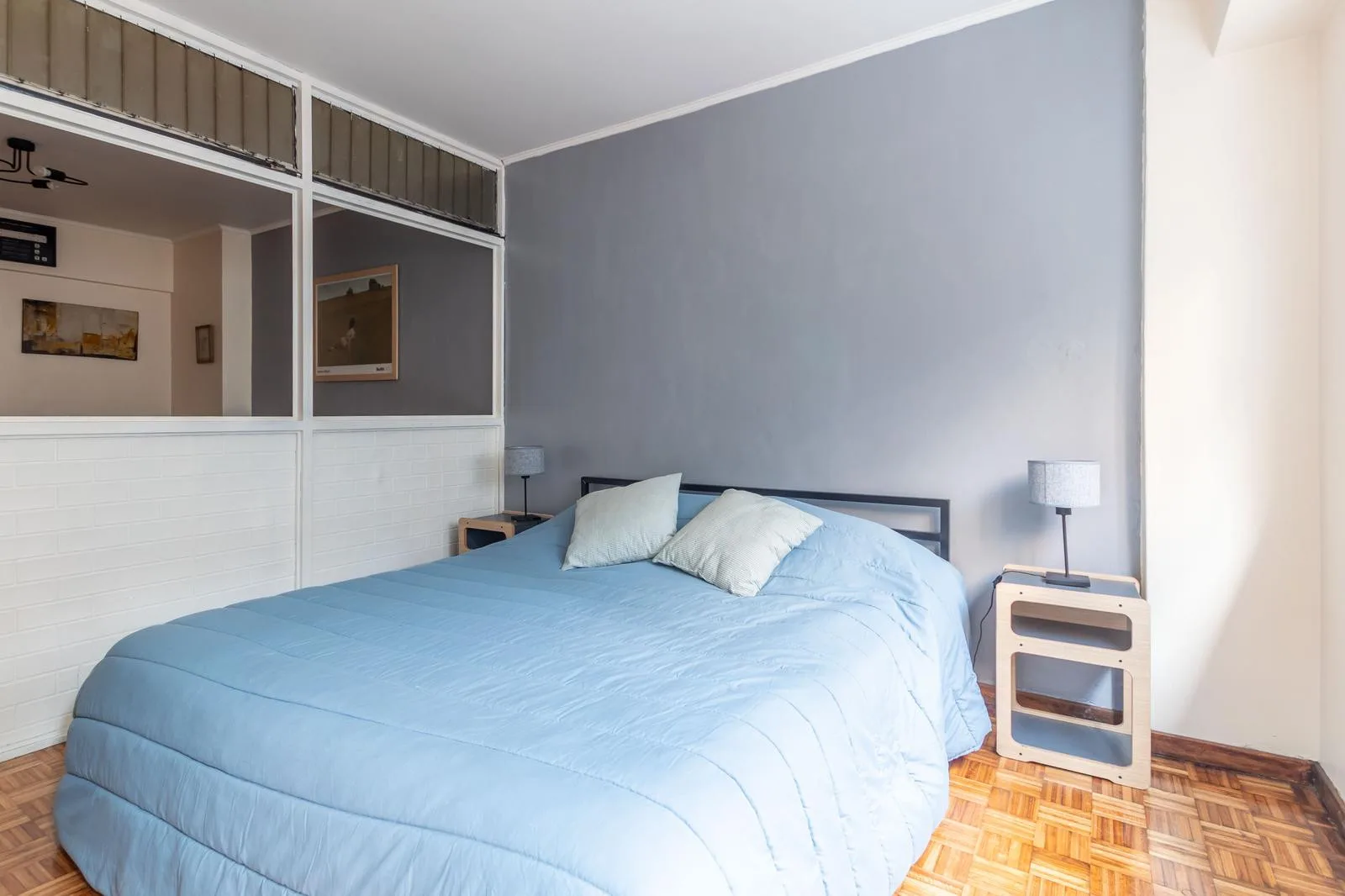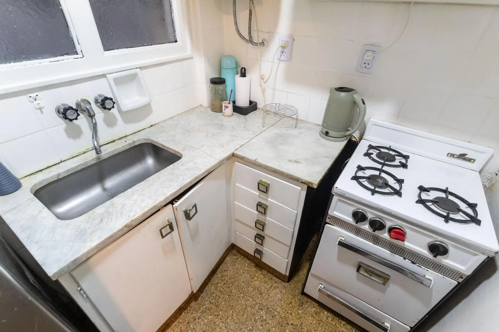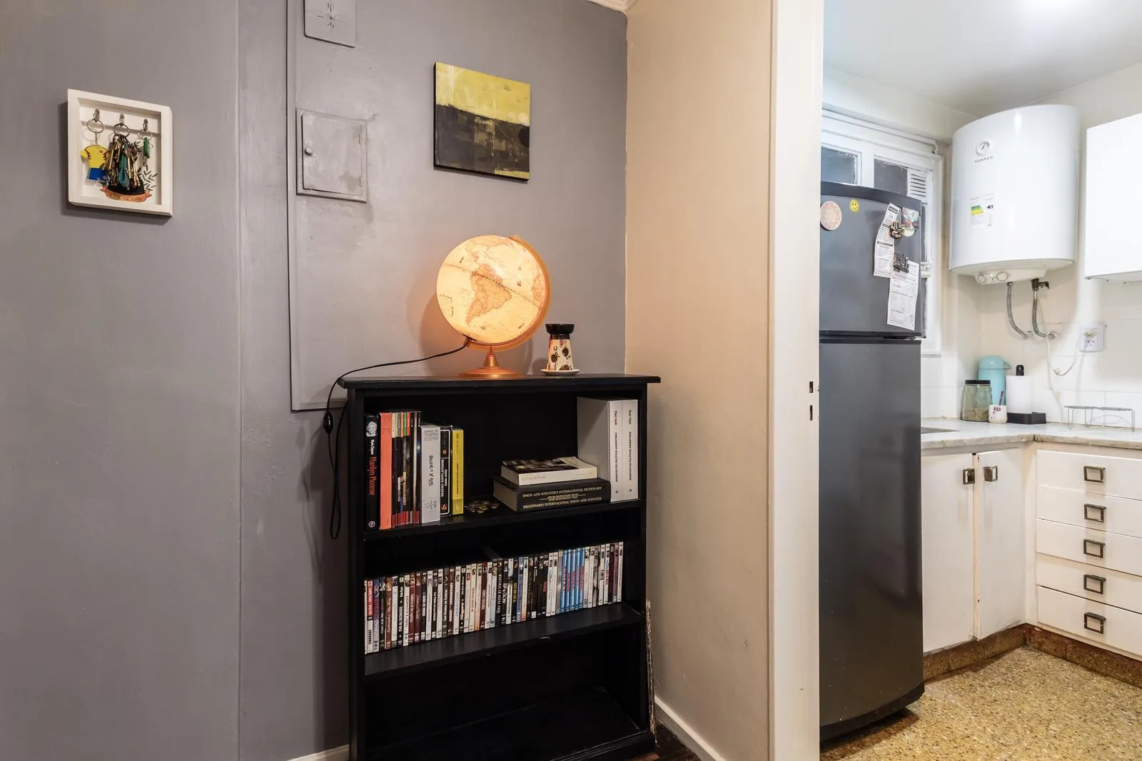 Furnished studio apartment at the front of the building in San Nicolás, on Maipú at 300. Available from 1 May. Street-facing with an interior layout split into two areas for separation. Independent gas kitchen, hot-water tank, split air-conditioning (hot/cold), double-surface wood flooring, and TV and internet. Fridge and microwave, tableware, and a 2-plaza bed plus two single beds. Minimum rental term: 3 months. Rent: USD 500; payment can be made in pesos.