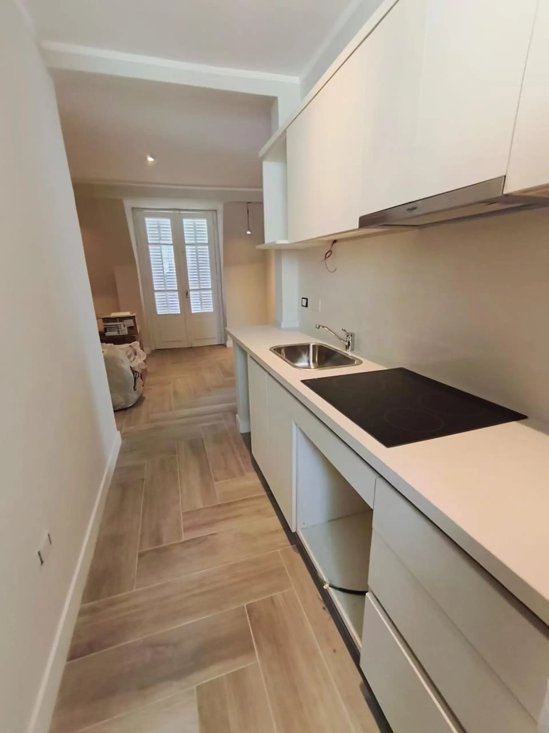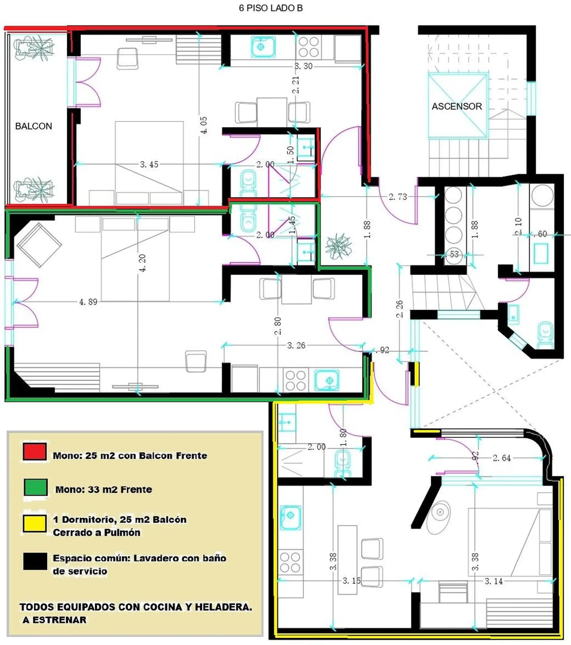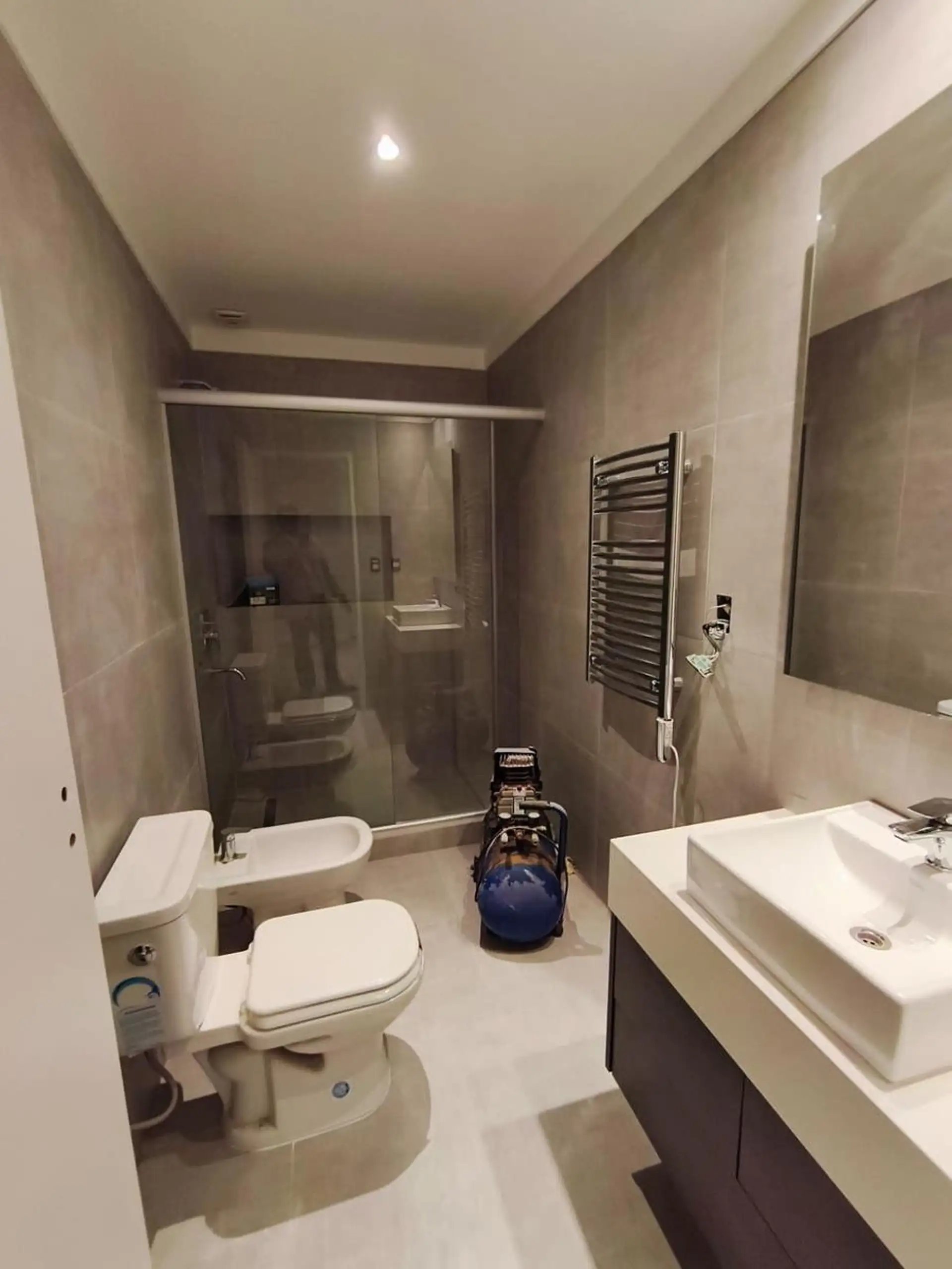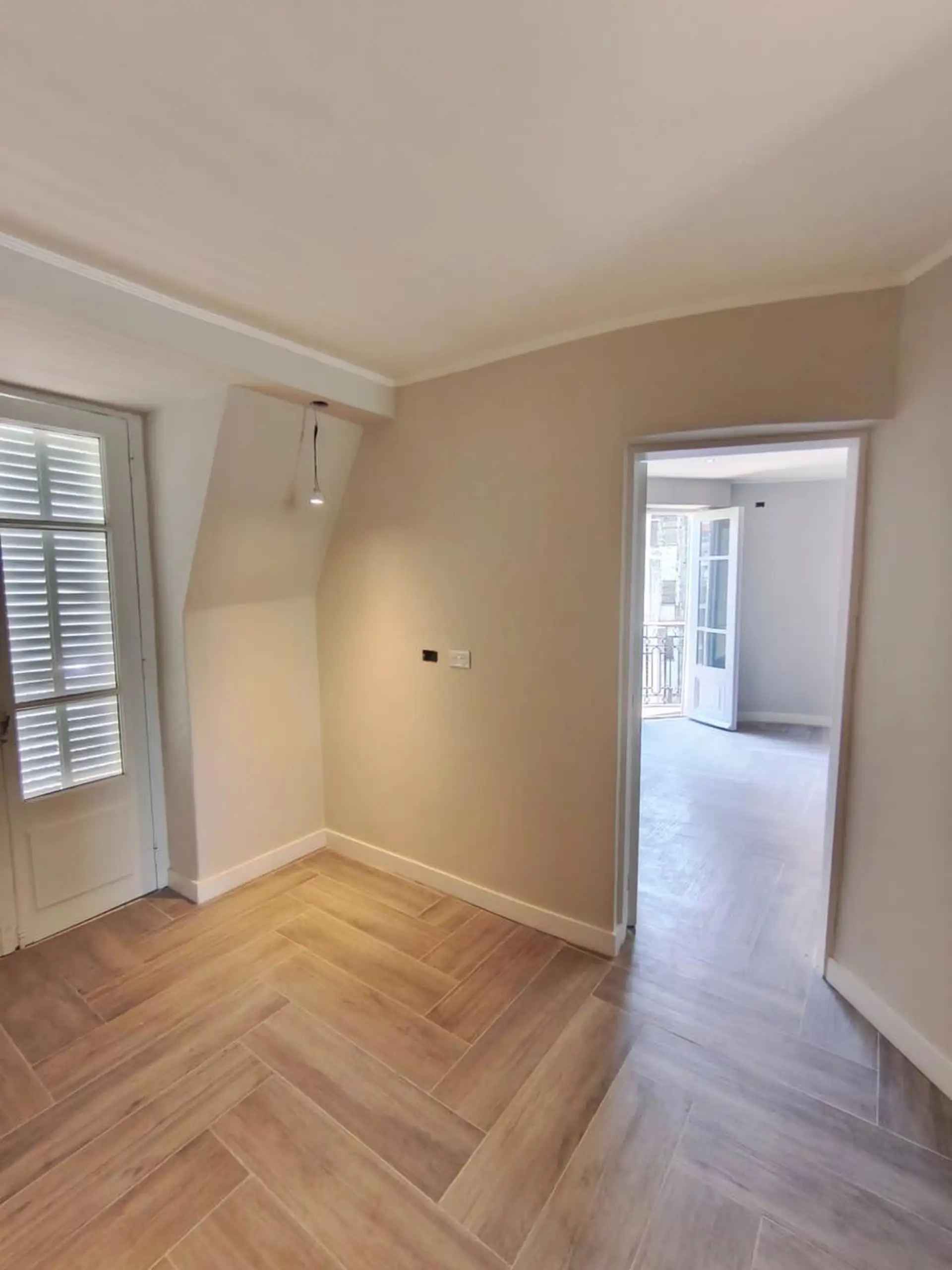 French-style building fully refurbished and brand new. Several units are available, including a 2-room layout with 1 bedroom, split air conditioning, electric kitchen and fridge, and a complete bathroom. Rental terms in pesos include quarterly adjustment by IPC, and building fees are included. Common areas include a laundry room with a bathroom; the property has no accessibility for people with reduced mobility.