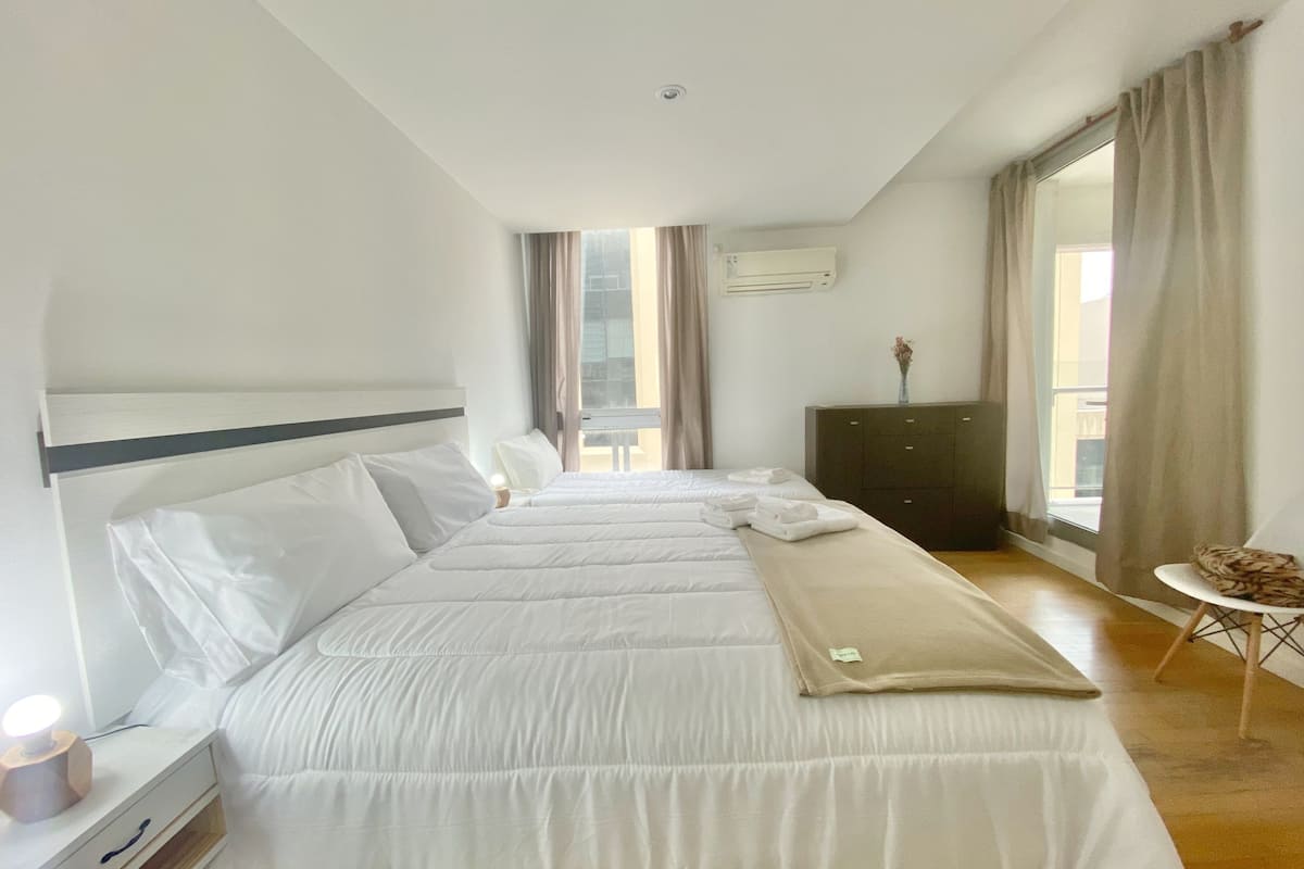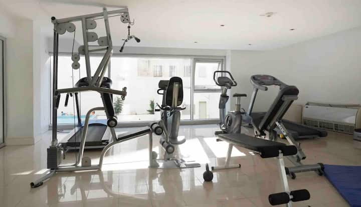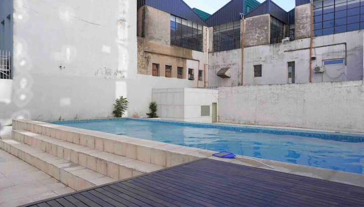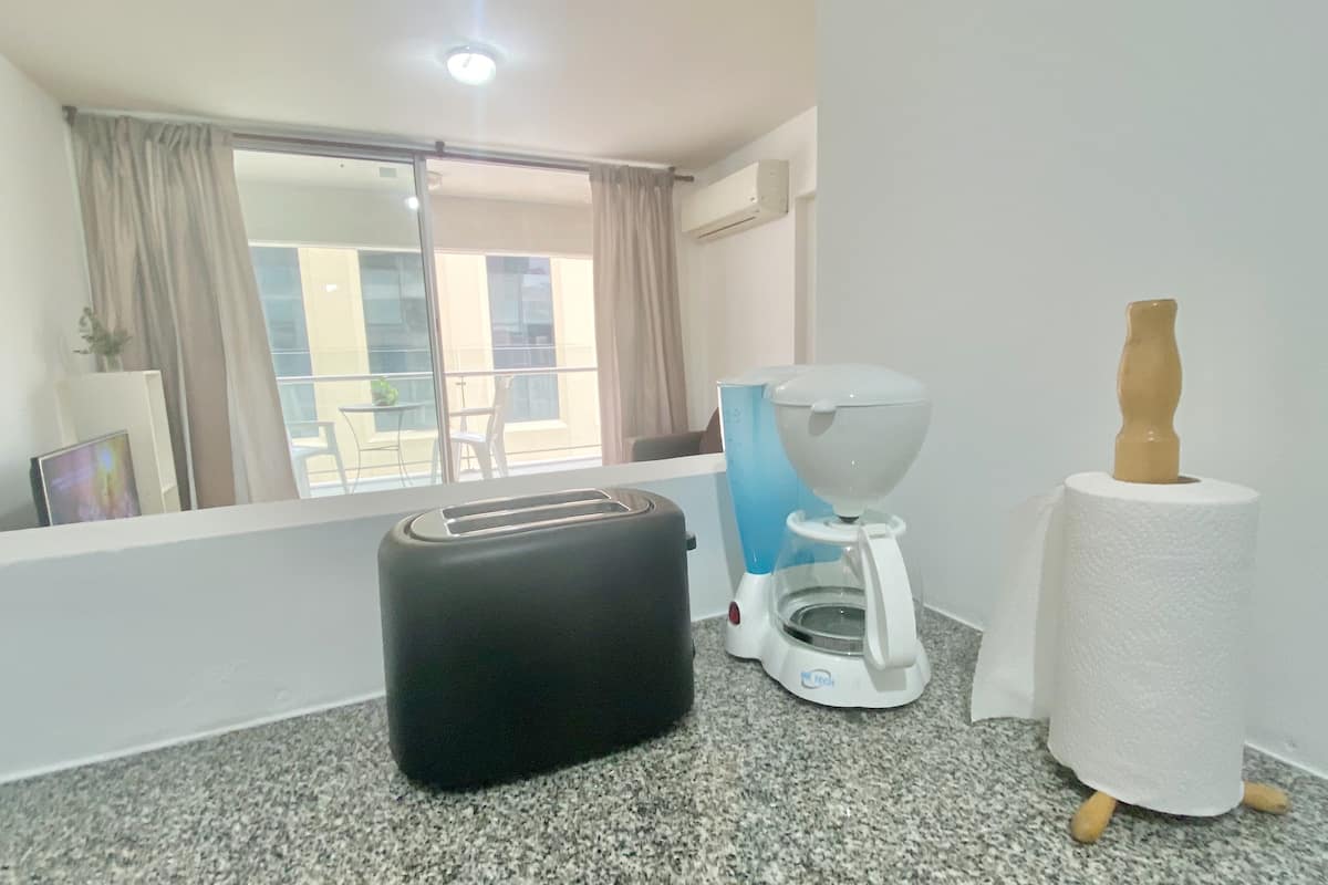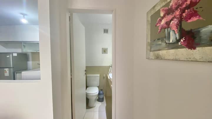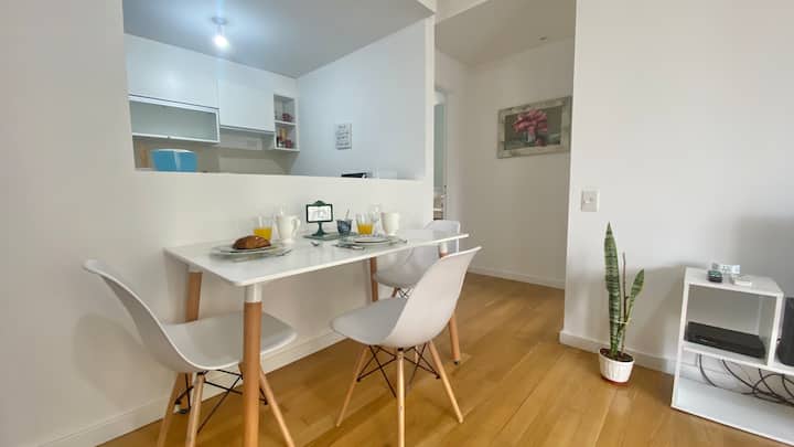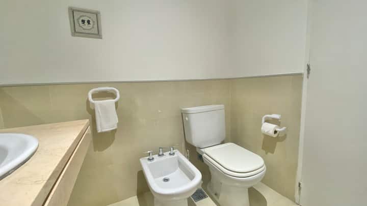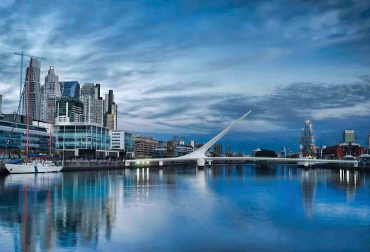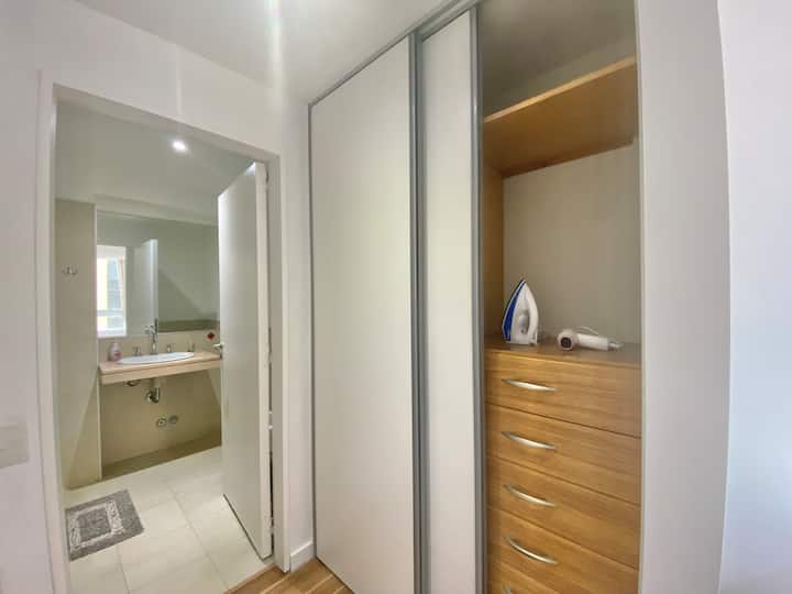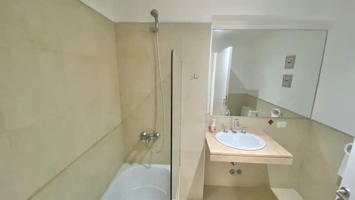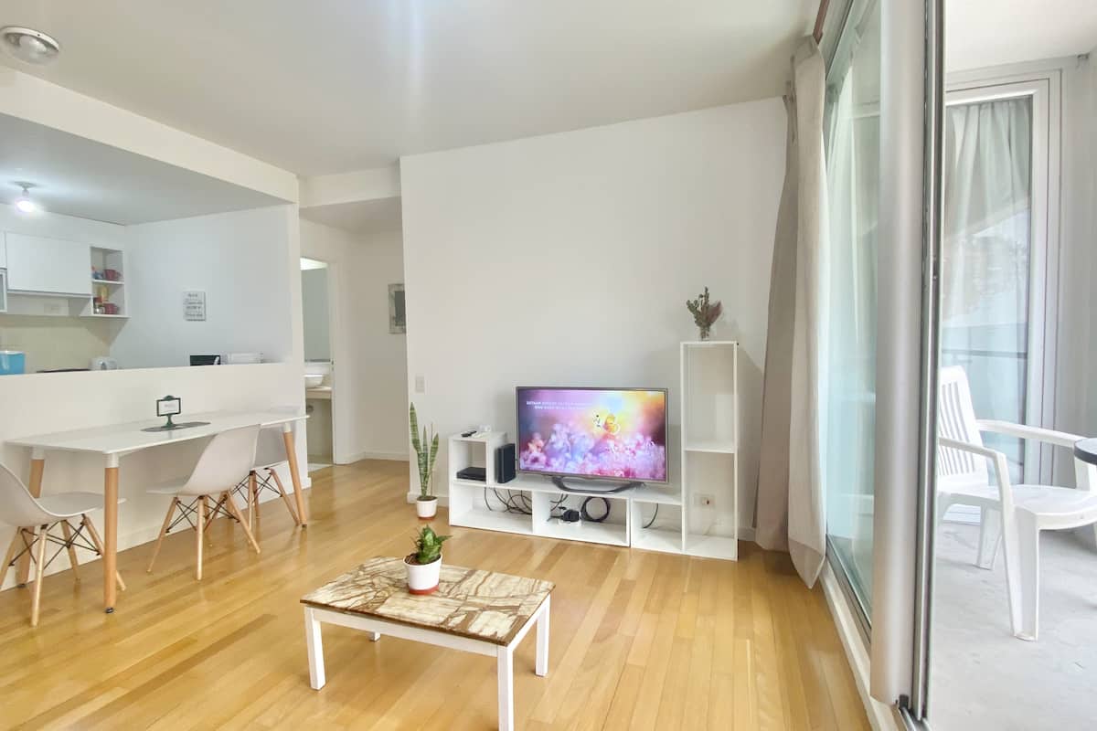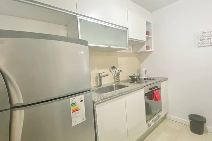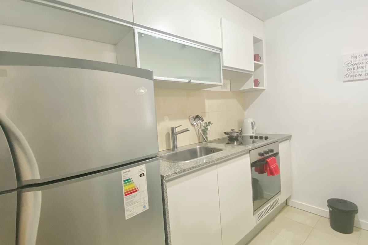 Apartment in San Telmo, close to Puerto Madero. The building has a pool, gym, sauna and 24-hour security, with access to the common areas. The accommodation is fully equipped for stays, with supplies provided during the stay, including kitchen and room equipment.