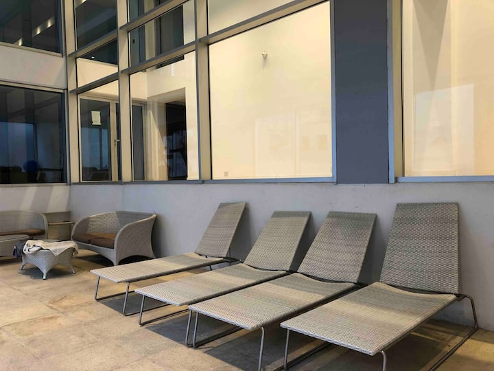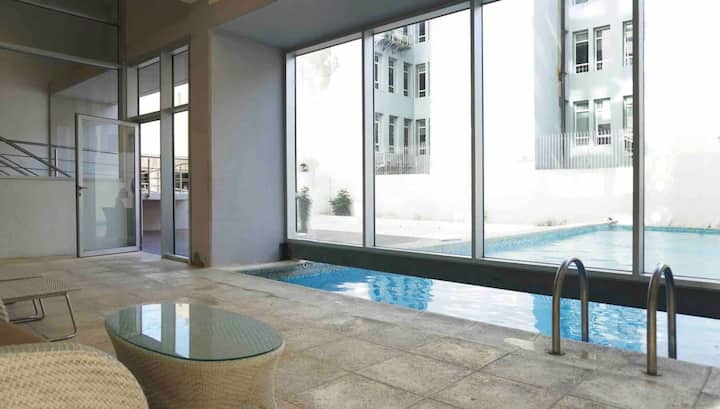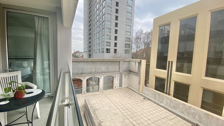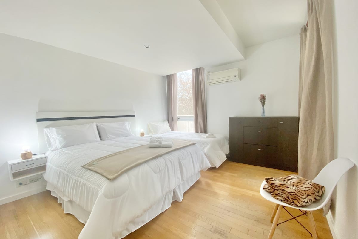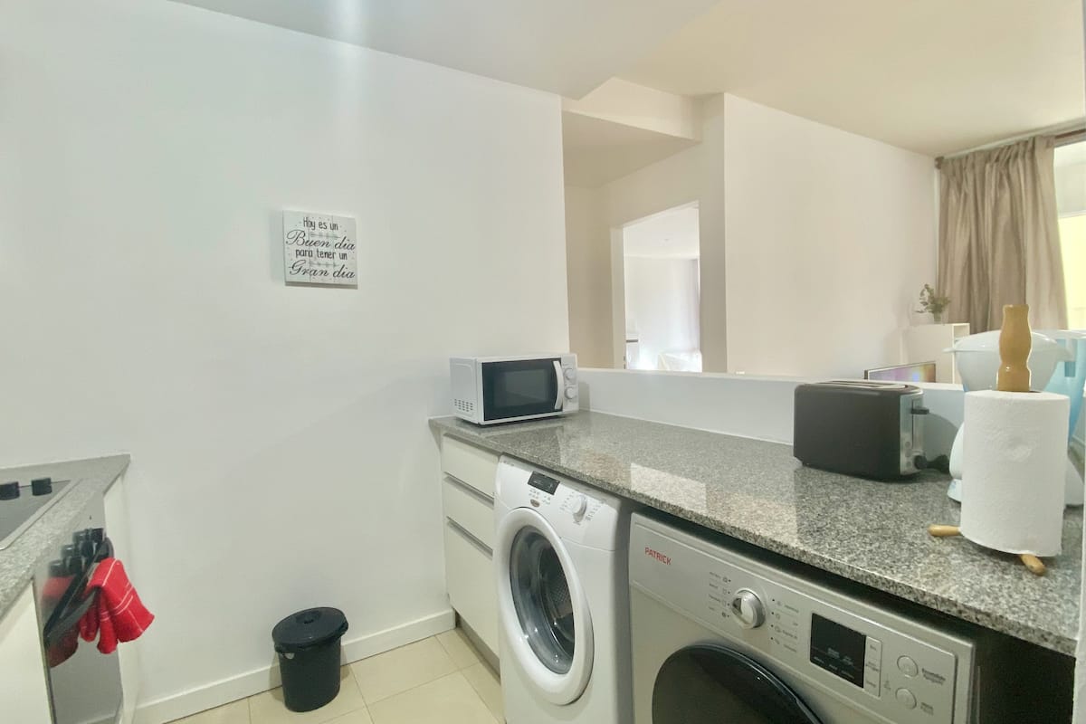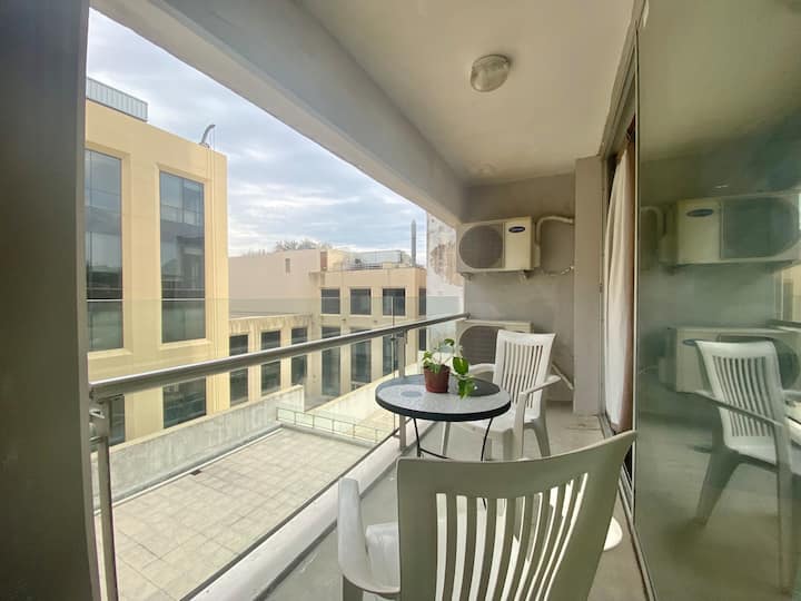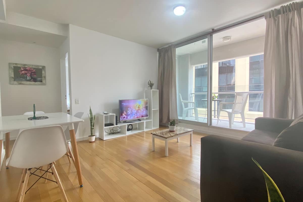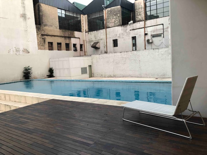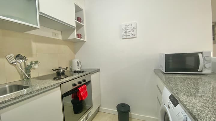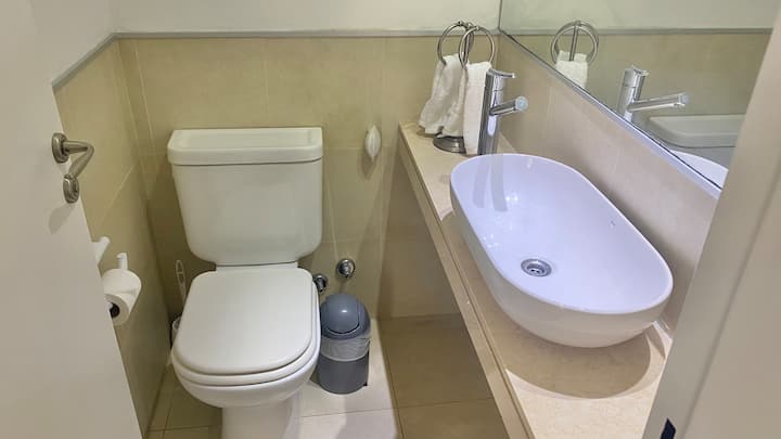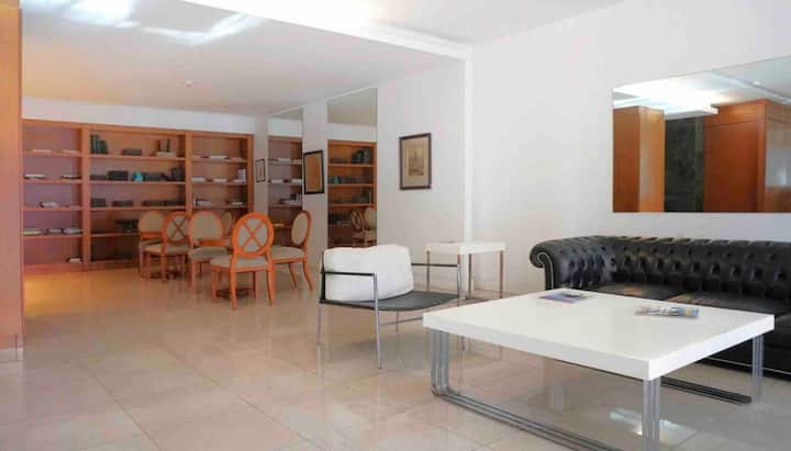 Apartment in San Telmo, close to Puerto Madero. The building has a pool, gym, sauna and 24-hour security, with access to the common areas. The accommodation is fully equipped for stays, with supplies provided during the stay, including kitchen and room equipment.