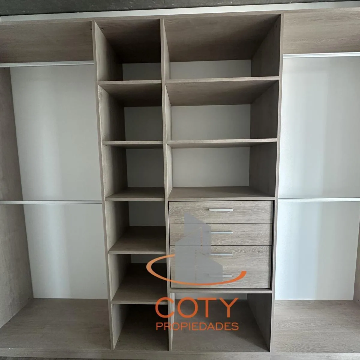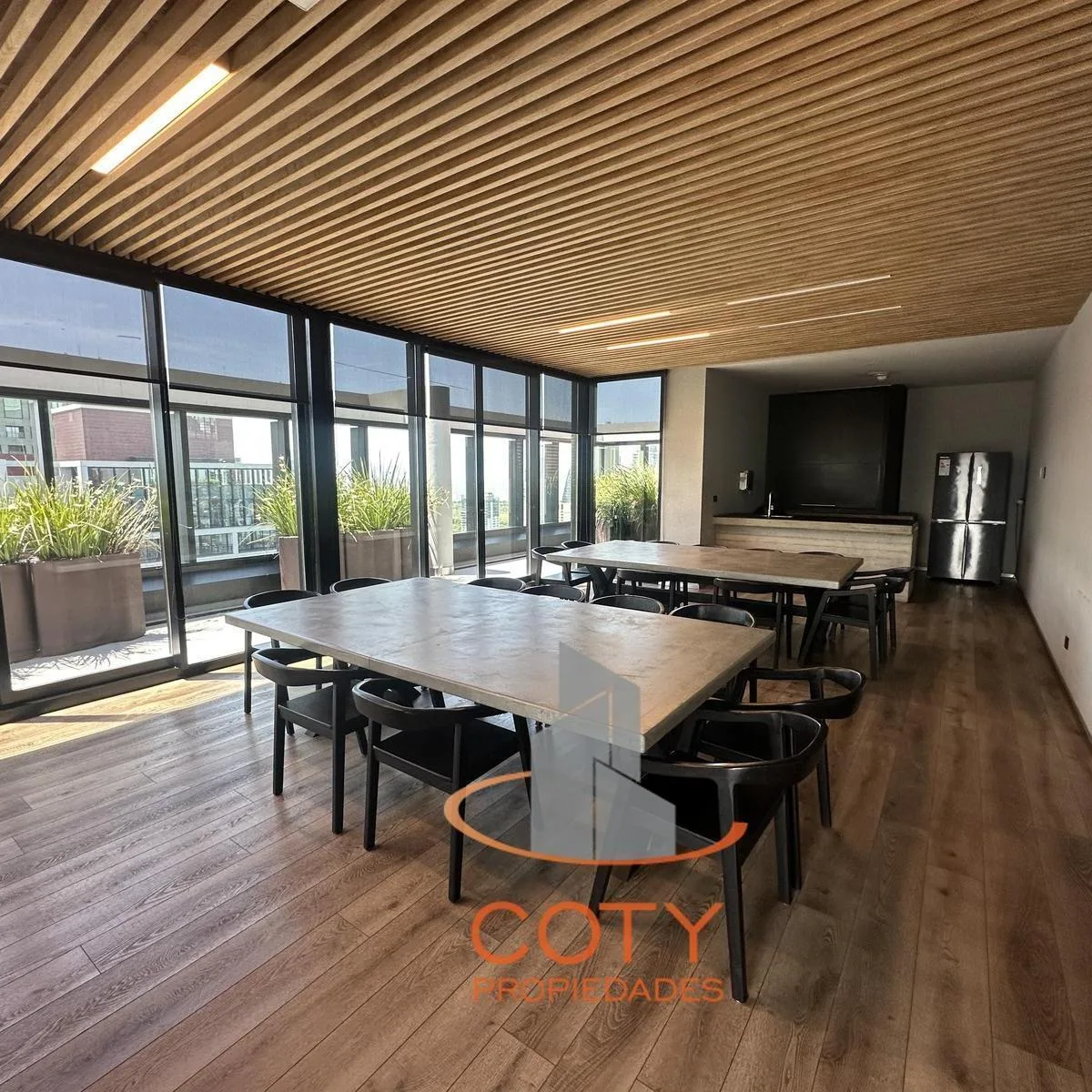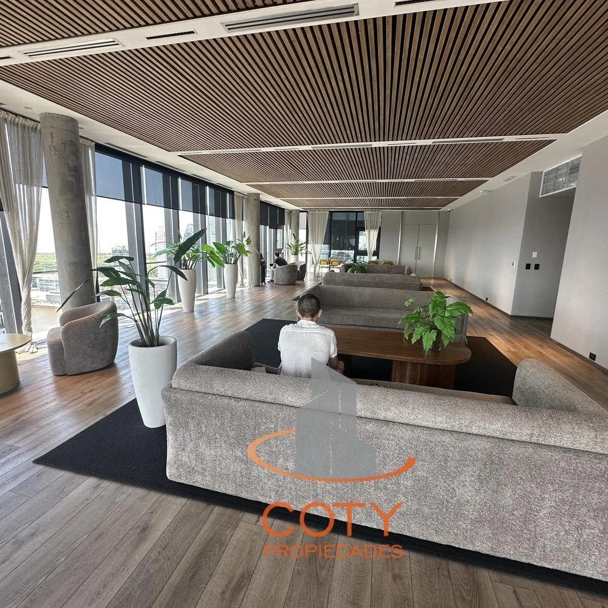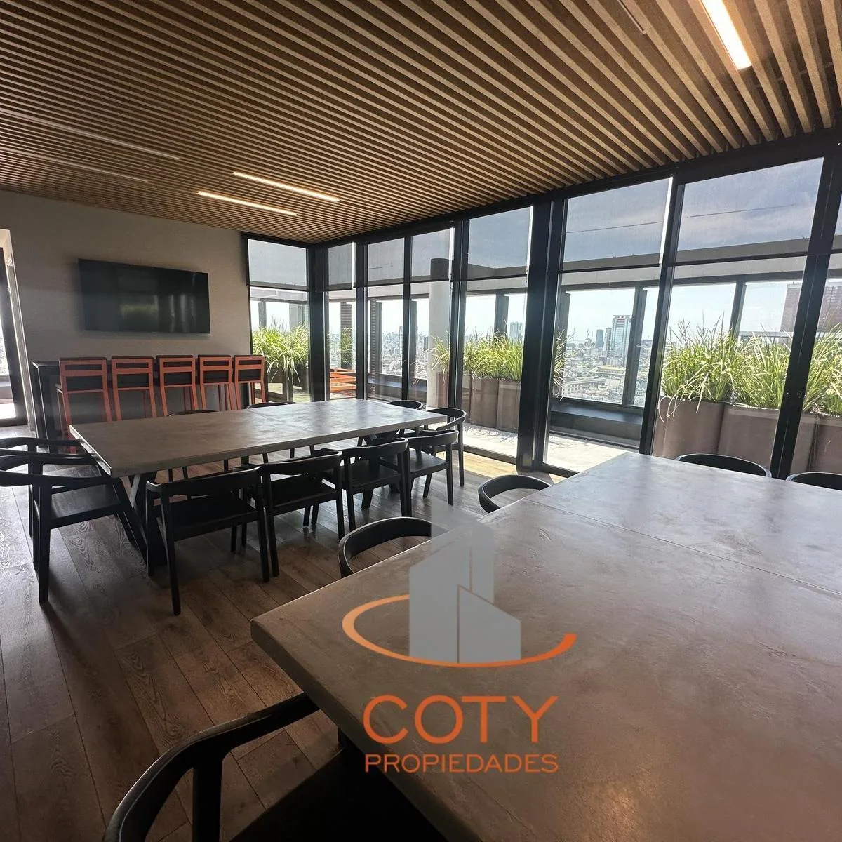 Two-room apartment of unspecified size in Quartier del Bajo, in a complex of two twin towers with 36 floors each. The unit has a reception toilet, living-dining room with an integrated kitchen, and an en-suite bedroom with a dressing area, with access from the rooms to a continuous balcony with an open view. Facilities include a heated pool, communal room (SUM), grill, gym, sauna and Finnish sauna, massage and hydromassage areas, laundry, and bicycle and motorcycle parking, with three main lifts