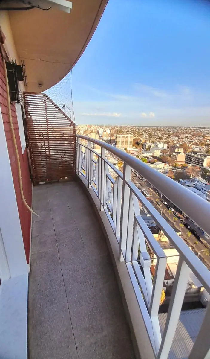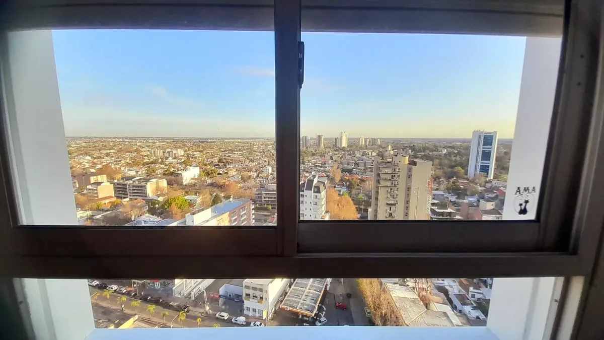 Two-room apartment with 1 bedroom on a high floor in Tigre centre, with panoramic views. Living-dining room with parquet flooring, balcony access, split hot-and-cold A/C and a balanced flue heater. Equipped kitchen with connection for a small washing machine and a daily dining area; distribution hall with built-in wardrobe; bedroom with parquet flooring and an open view. Full bathroom with bathtub. The building has a pool, laundry, SUM with grills, garden square with children’s play area, 24-hou