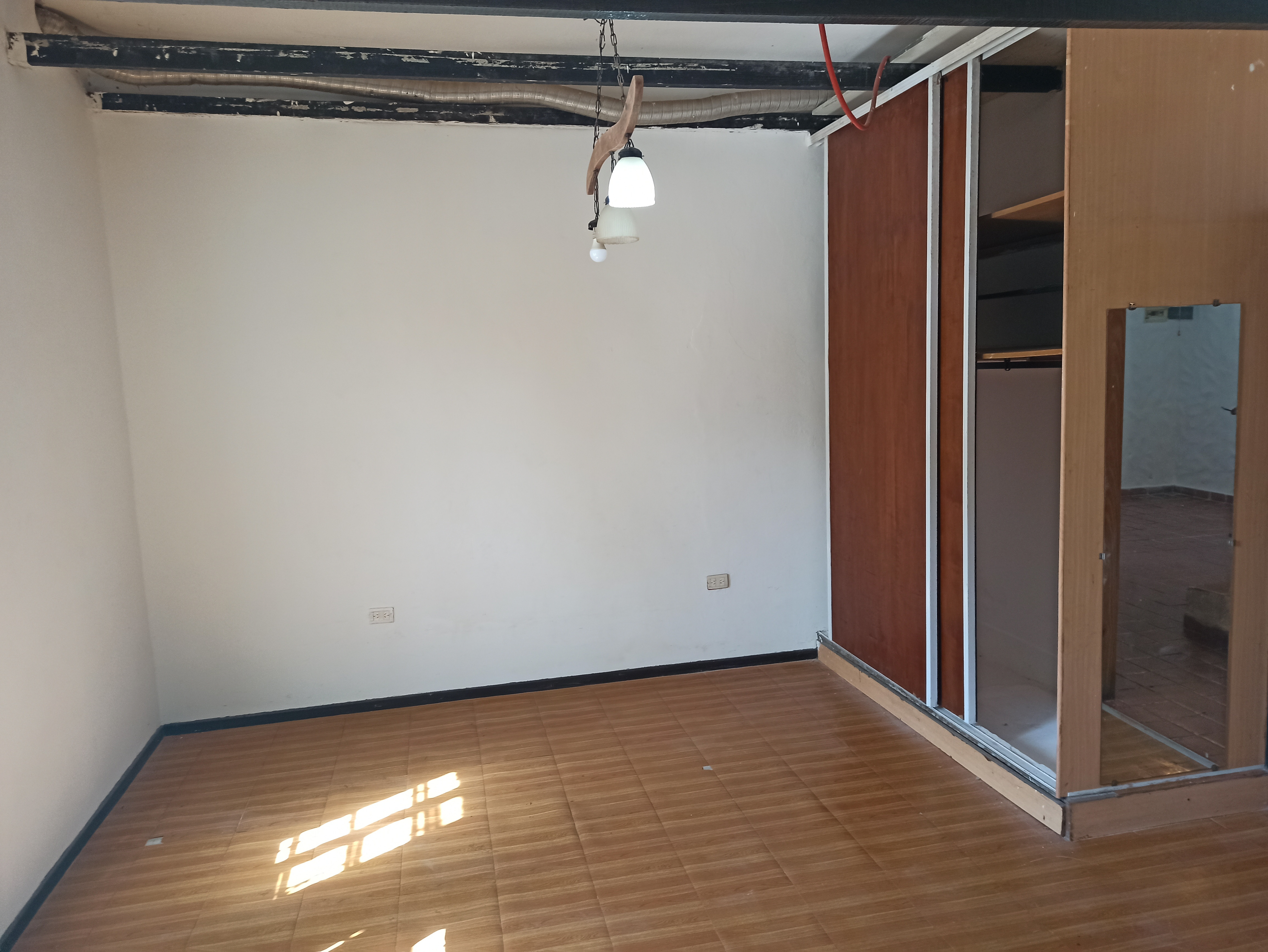 Two-room apartment on the ground floor with 1 large bedroom with built-in wardrobe and air conditioning. Kitchen with countertop and sink, living-dining area with a split-level layout, and a bathroom with a shower. Includes an installation for a washing machine and complete fixtures. Located 1 block from Ruta 197 and 2 blocks from the Carupá train station.