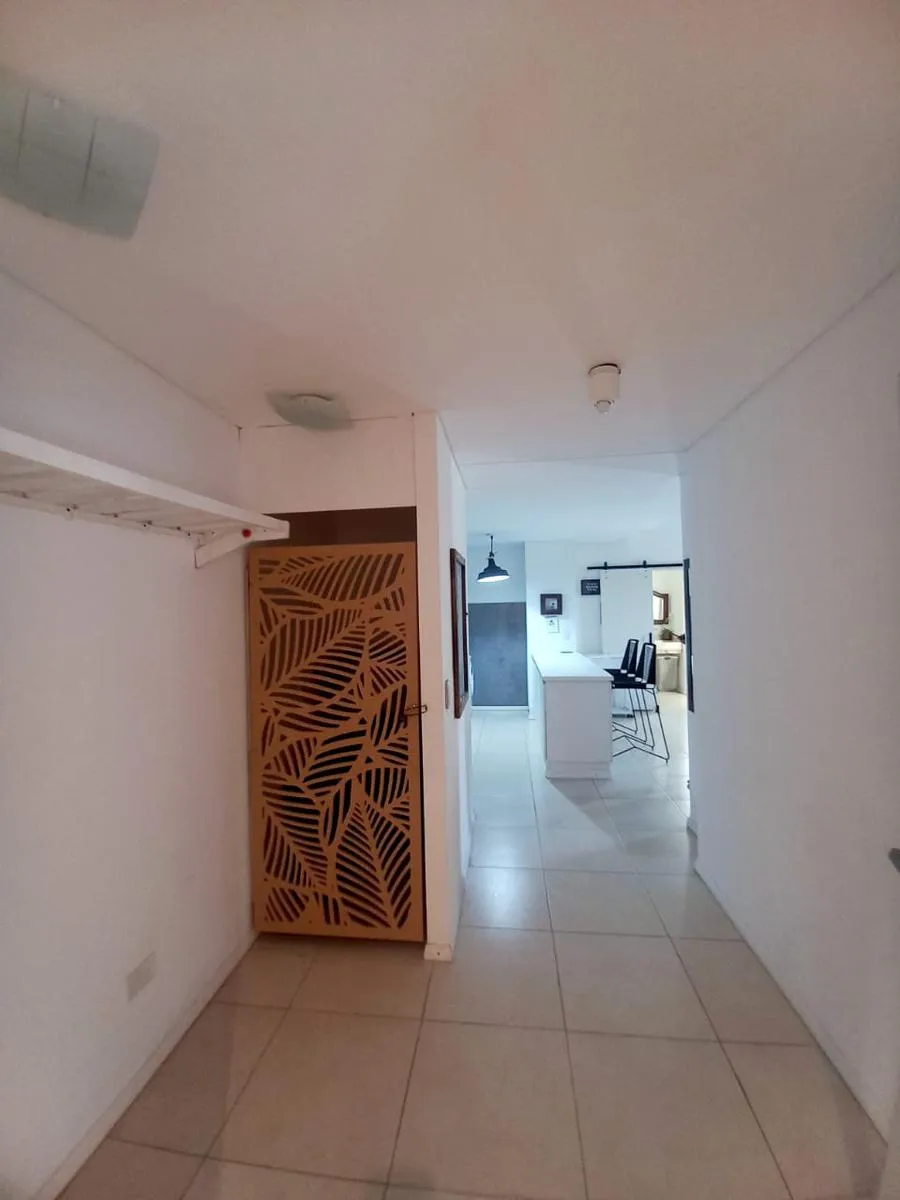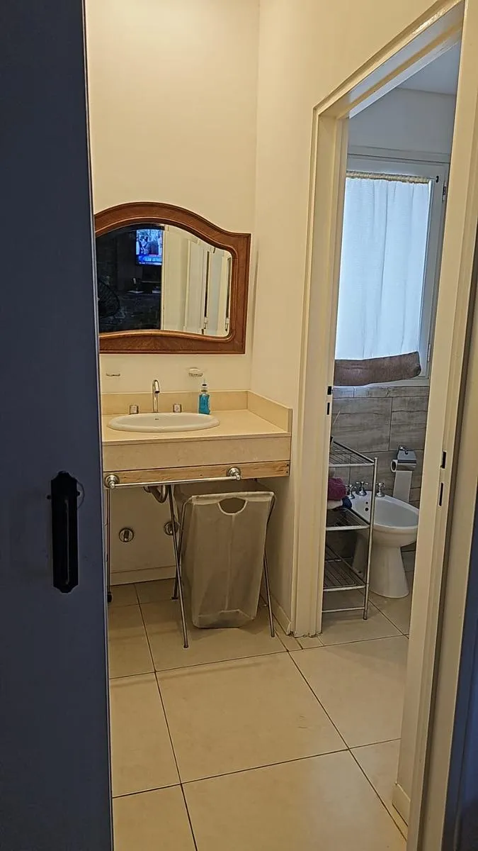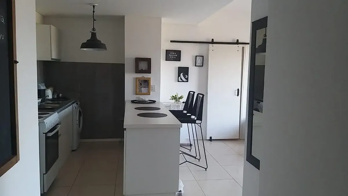 Furnished two-room apartment in the Antares Living Senior complex, El Portal, Nordelta, Tigre. It has 1 bedroom in suite with a walk-in area (ante-bath) and a full bathroom with a shower, plus an open-plan living and dining area and an integrated, fully equipped kitchen with an electric oven and stove, refrigerator and washer. The unit includes air conditioning in all rooms and a balcony with a grill and open views. Covered parking in the basement is included. The complex offers an uncovered poo
