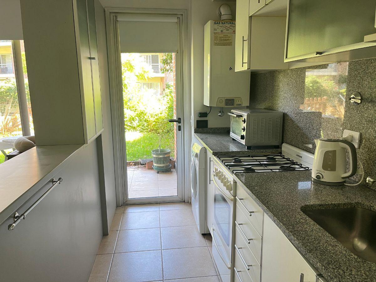 Two-room apartment on the ground floor with a private garden, offered furnished or unfurnished in the Boulevard de Portezuelo complex. Living-dining room with floor-to-ceiling window doors to the enclosed gallery and garden, integrated kitchen with breakfast bar, space for a washing machine, and a bedroom with a window to the garden. Bathroom with bathtub; covered gallery with grill; hot-water boiler and split air conditioning (hot and cold) in the living room and bedroom. The unit includes a co