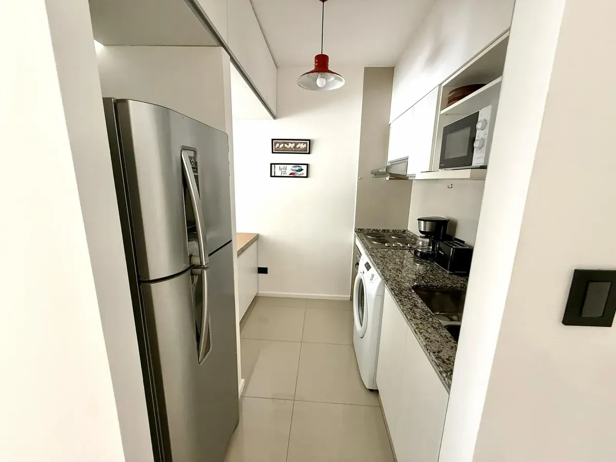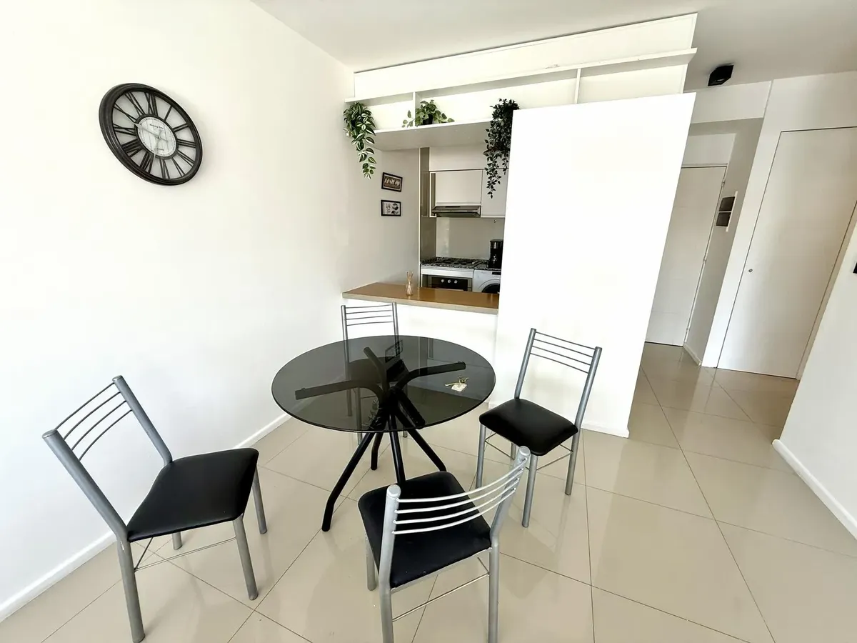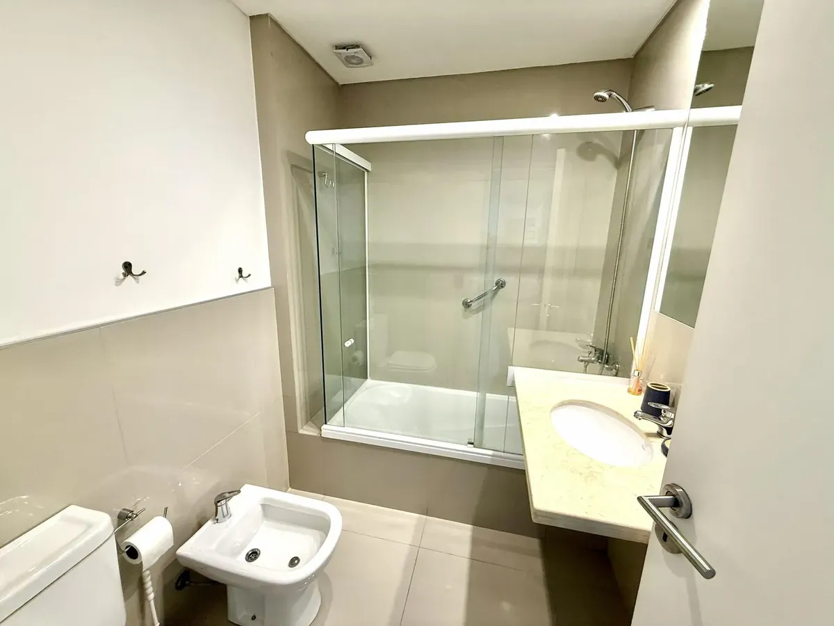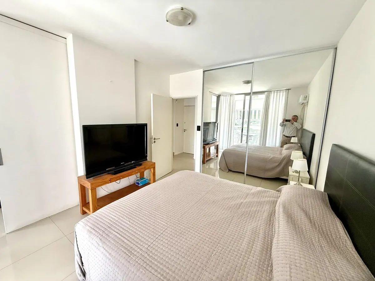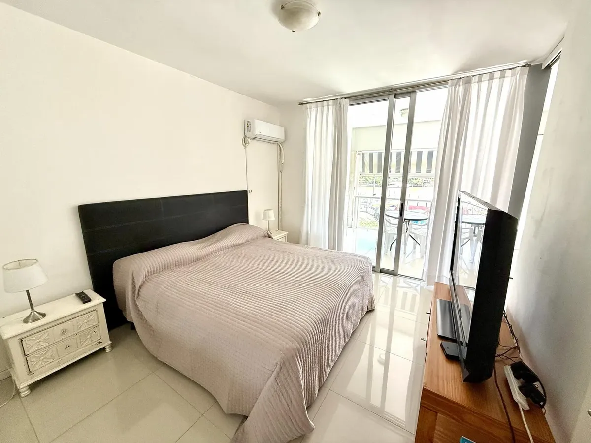 Modern one-bedroom apartment with views over the bay of Nordelta in Marinas del Canal, Tigre. It has 47.6 m² covered and is oriented north-west, with two rooms including a bedroom with a built-in closet and a full bathroom. The kitchen is fully equipped with a washing machine, fridge and dishwasher, and the unit has individual air conditioning and a water heater. Building amenities include a pool, gym, sauna, communal room (SUM), 24-hour security, green areas, tennis court and shared and individ