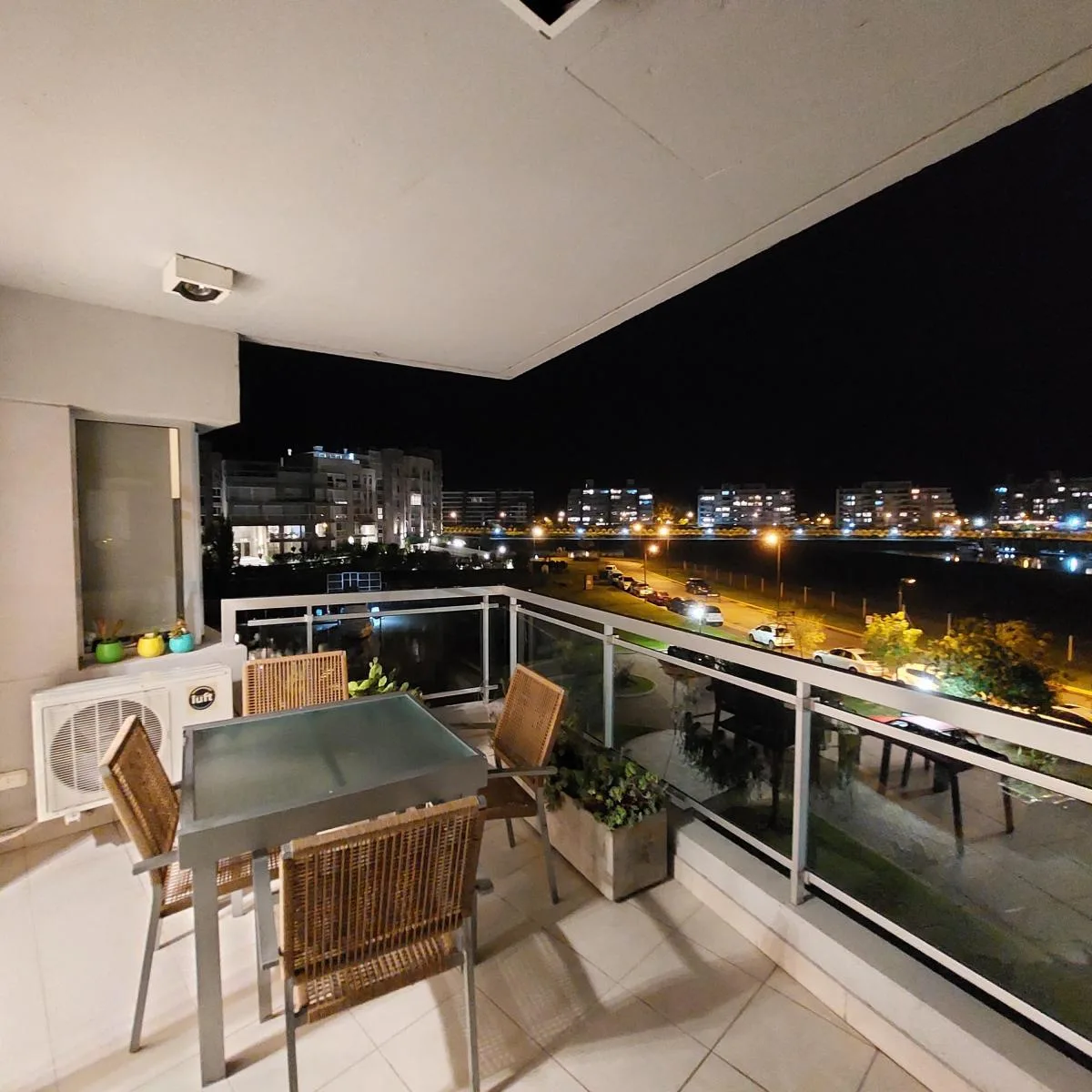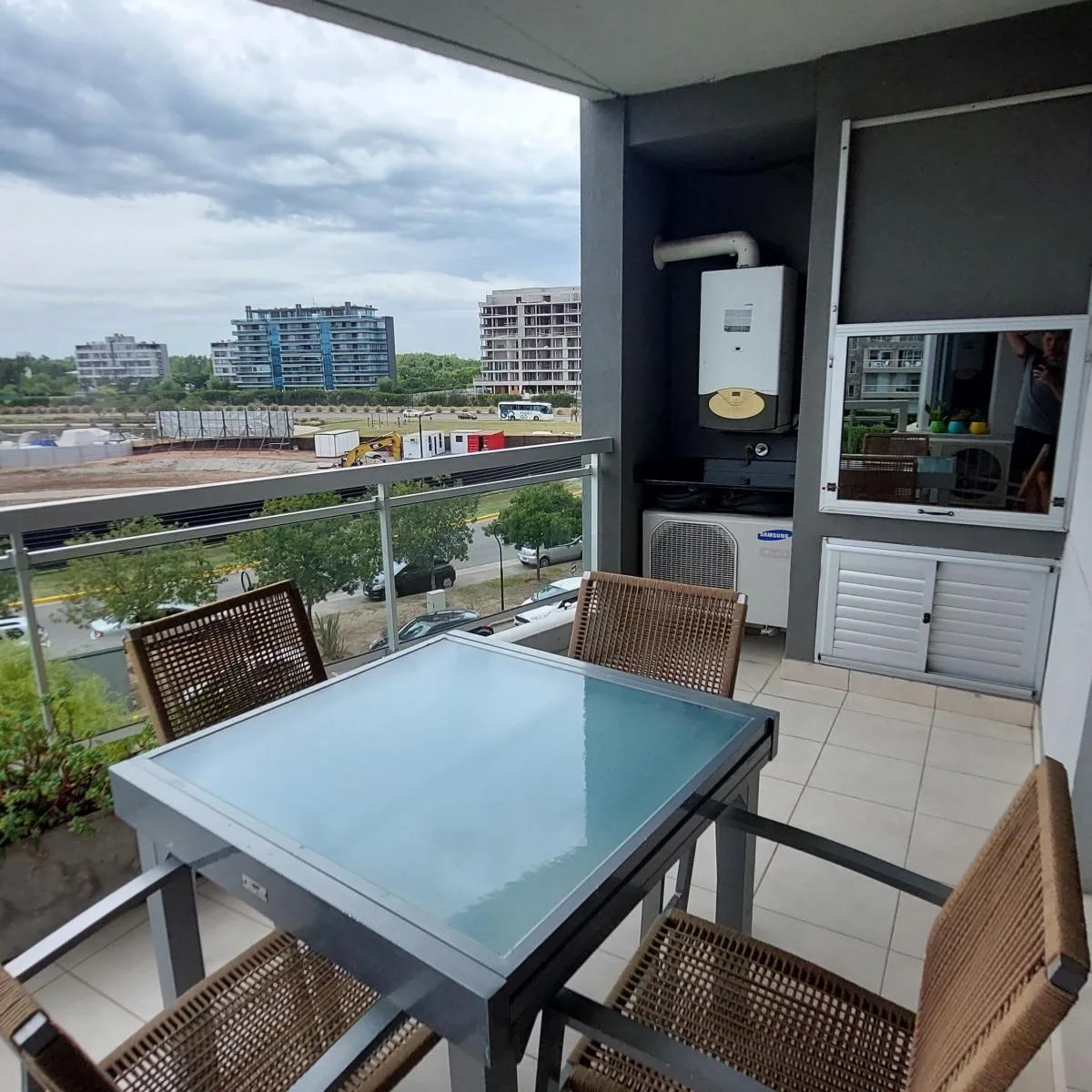 Furnished two-room apartment in Nordelta, Tigre, in Barrio Ribera de Islas del Canal with northeast orientation and river views. It has an integrated kitchen, a living-dining area, a bedroom with built-in wardrobe, a full bathroom, and a separate laundry room. Heating is via a boiler with radiant floor slab, and the unit includes a private grill and an assigned (spacious) parking space. The complex offers a pool, riverside park, children’s play area, communal room (SUM), mini gym, wine storage r