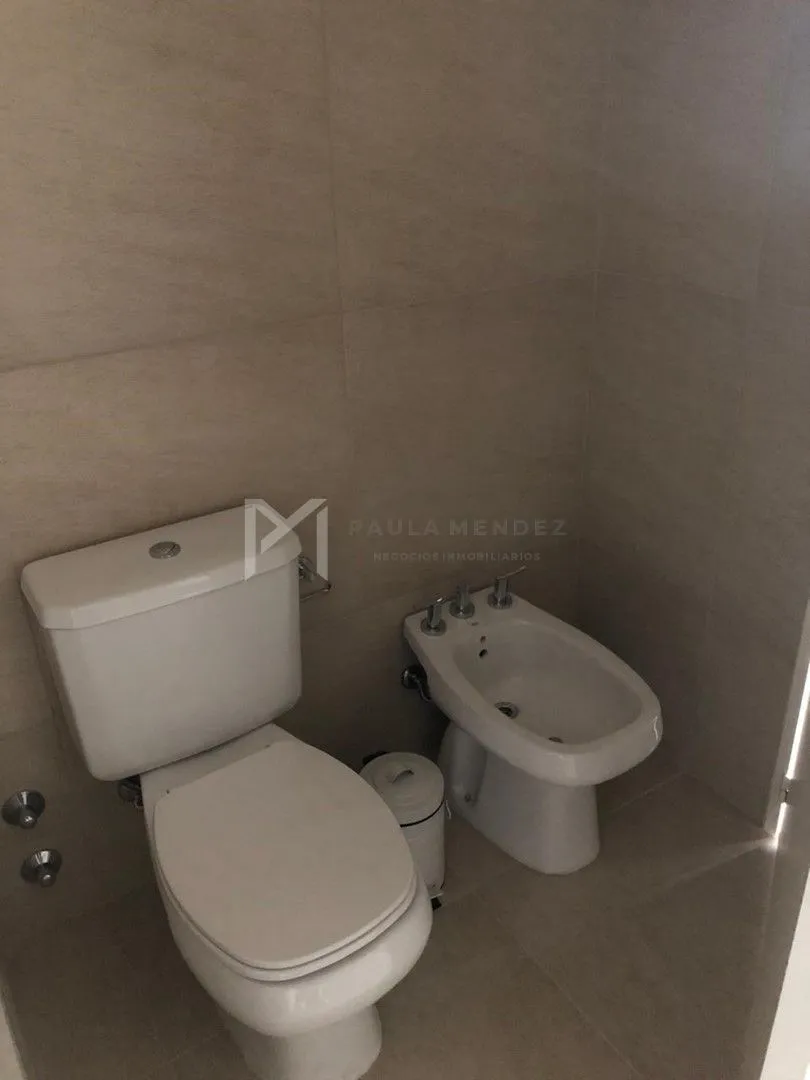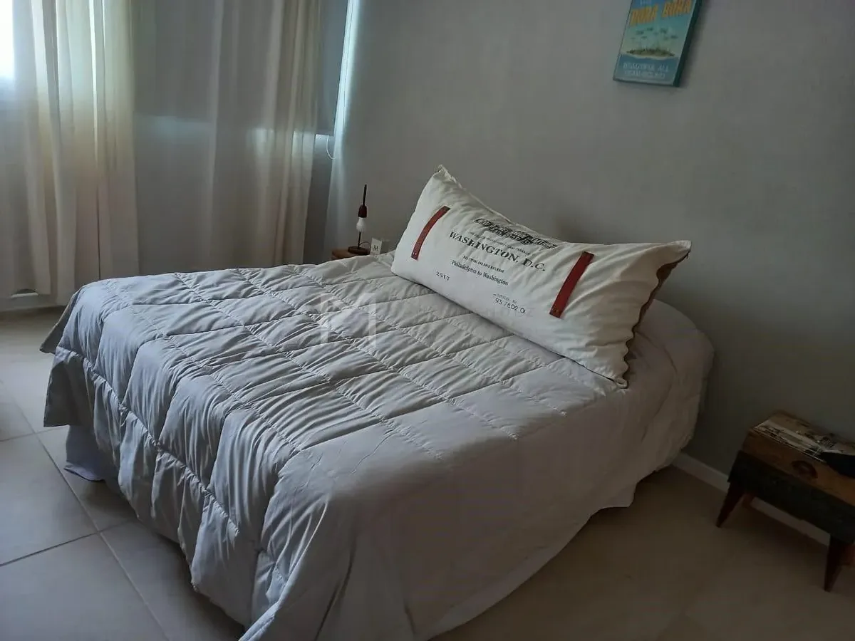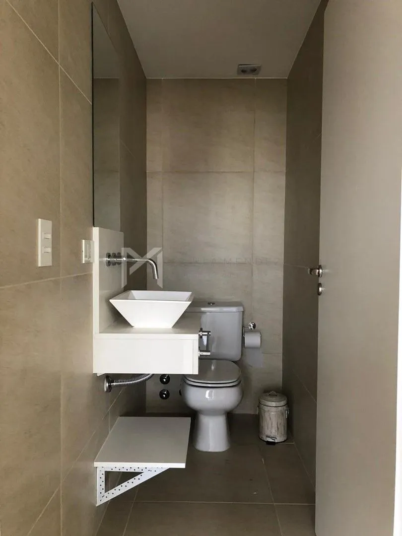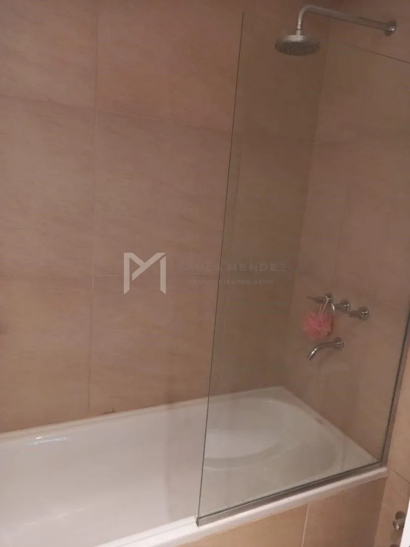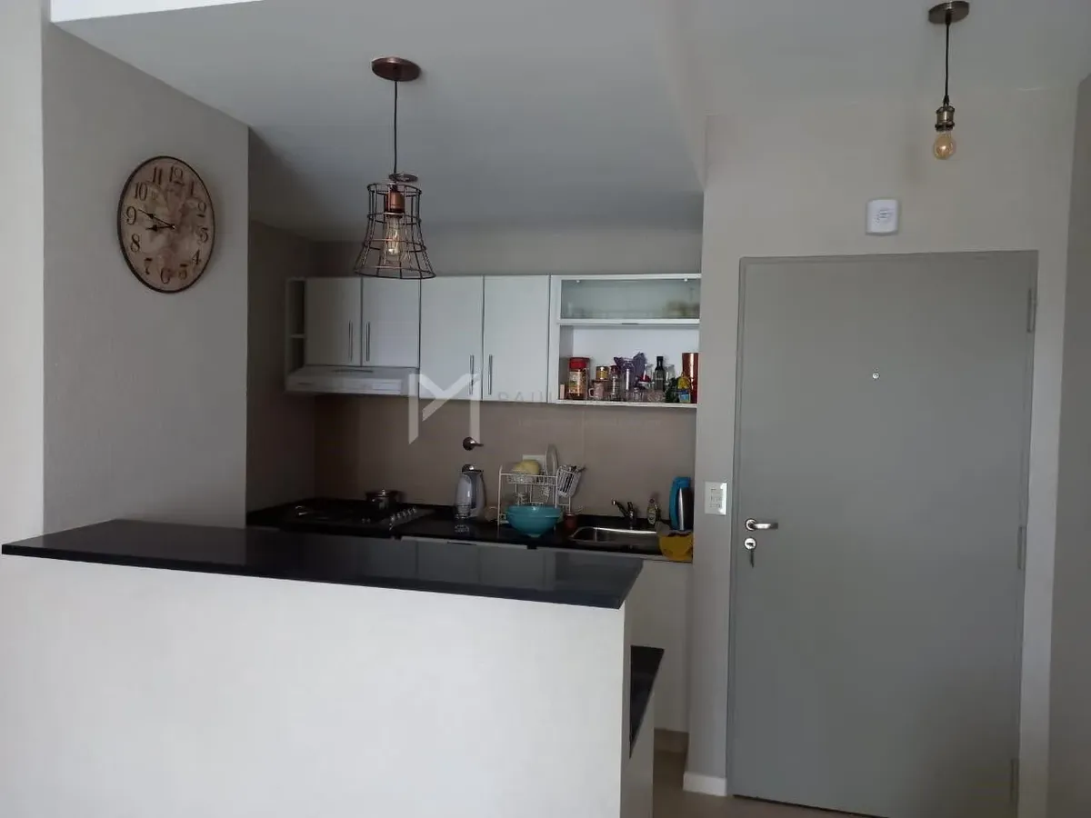 Furnished two-room apartment in Villa Los Remeros, Rincón de Milberg, Tigre, available for short-term rental from May 2026. It has an integrated kitchen with a breakfast bar, a living-dining area, a guest toilet, and a bedroom en suite with a dressing room and full bathroom, plus a semi-covered balcony. The unit includes hot/cold air conditioning. The complex offers an Olympic pool, a communal residents' lounge (SUM), 24-hour security, complimentary parking spaces, and shared green areas. The re