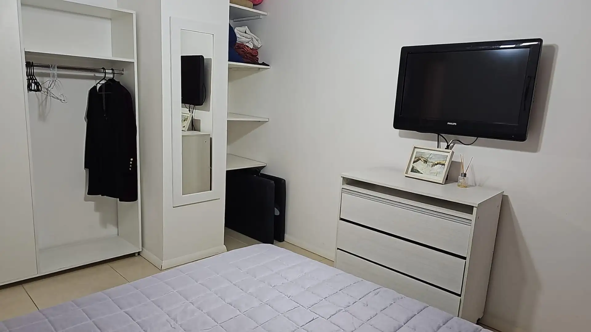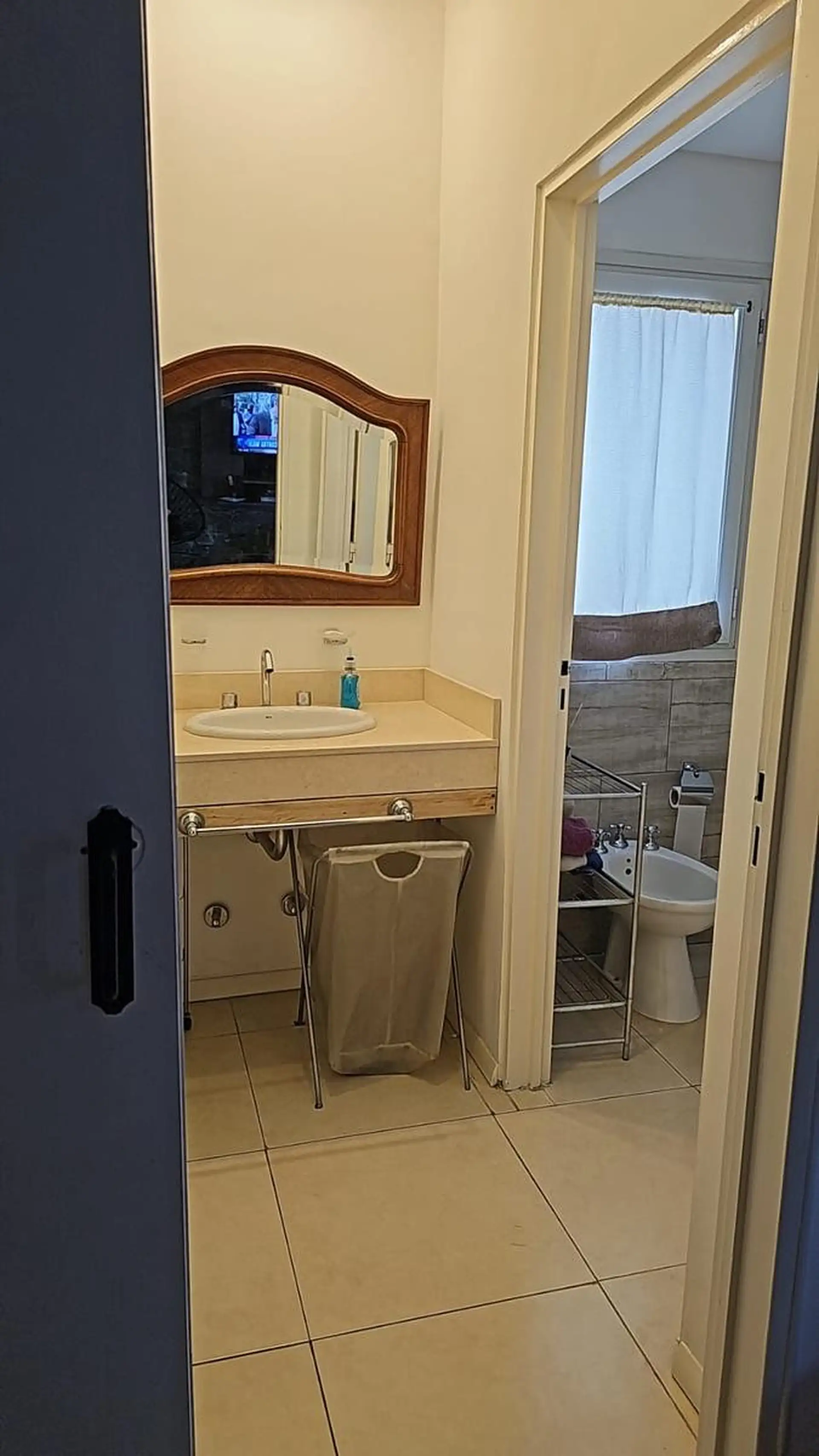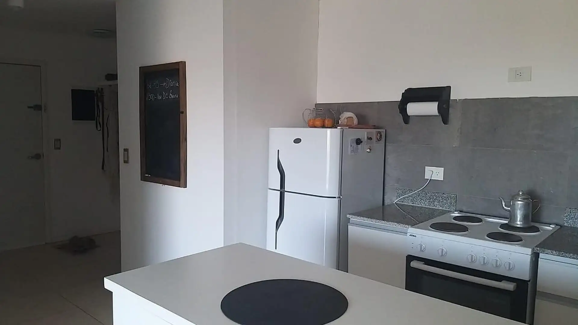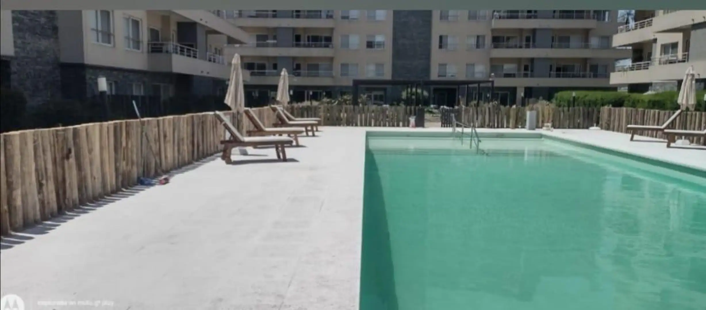 Furnished two-room apartment in Antares Living Senior within El Portal, Nordelta, Tigre, available for short- or annual stays. The unit has a living-dining area, an integrated fully equipped kitchen with electric stove/oven, washing machine and refrigerator, and a suite bedroom with a dressing area and en-suite bathroom with a shower. There is air conditioning in all rooms, a balcony with a grill and open views, and a covered parking space in the basement. The complex offers uncovered pool with