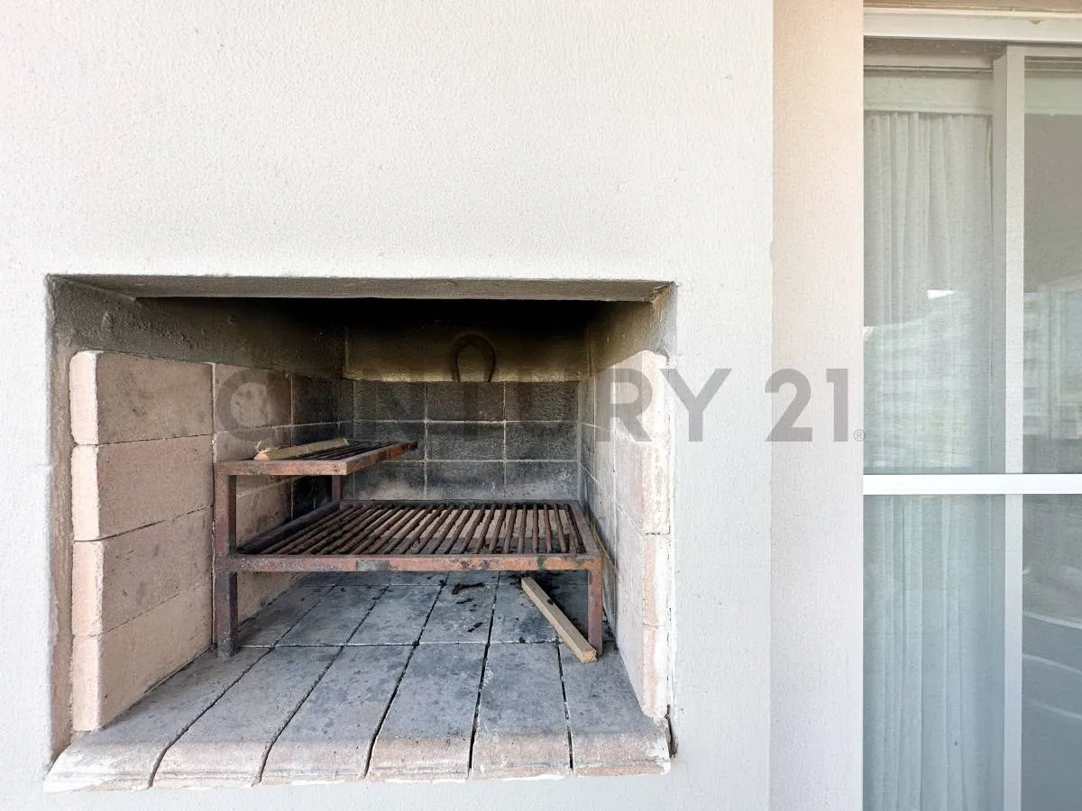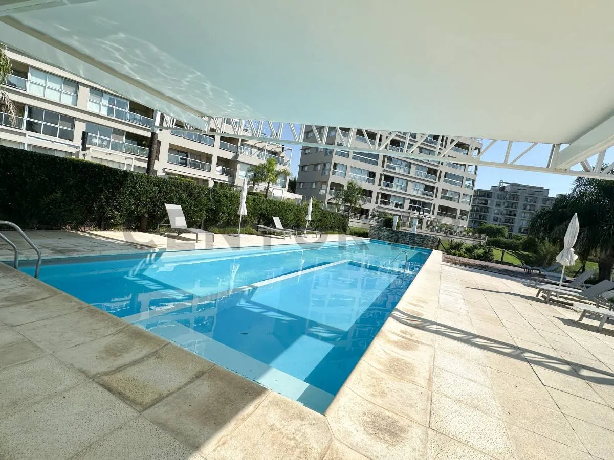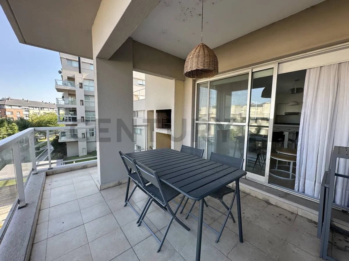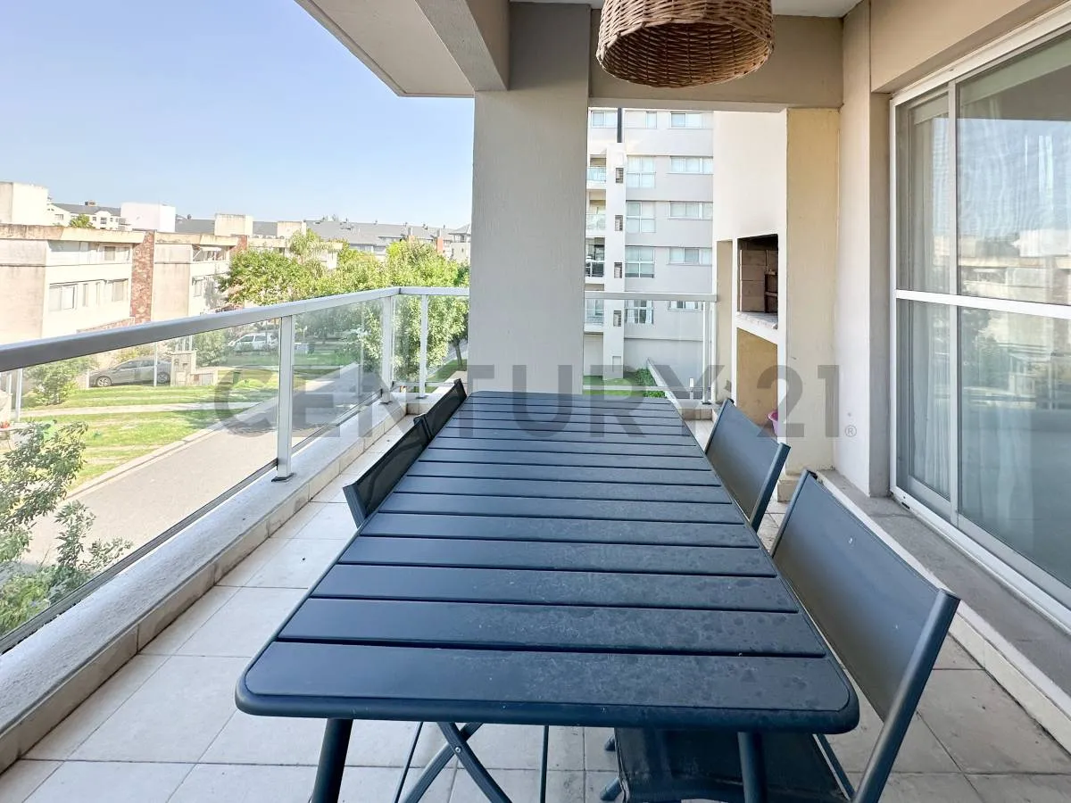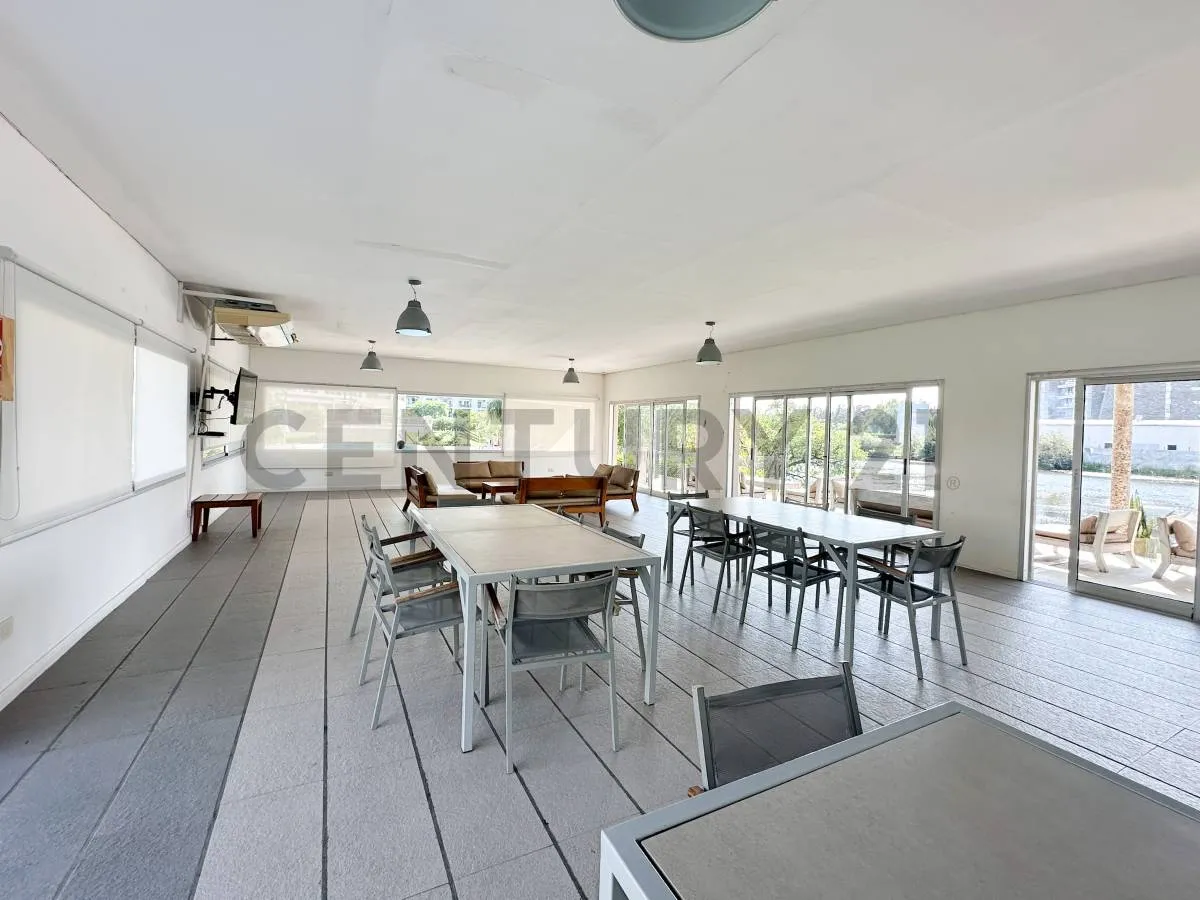 Available from April 2026. Furnished 2-room apartment in the Petrel building within Marinas de Portezuelo, Tigre. The unit has a living-dining area with a semi-integrated kitchen with a breakfast bar, 1 full bathroom, and a bedroom with a dressing area that opens to the balcony. It includes a covered parking space and a storage room, along with air conditioning (hot and cold) in both rooms, a clothes washer space, and a spacious balcony with a grill. The building has a large pool, a communal SUM