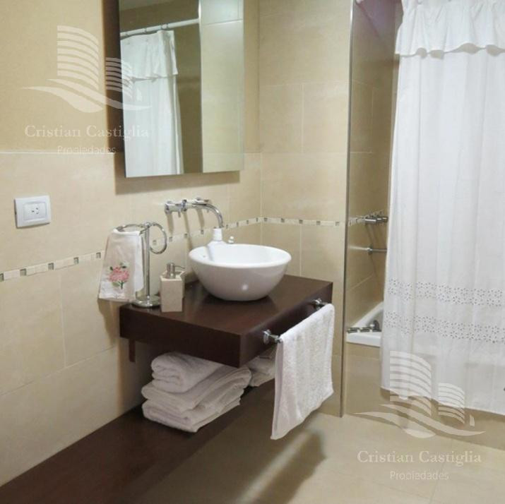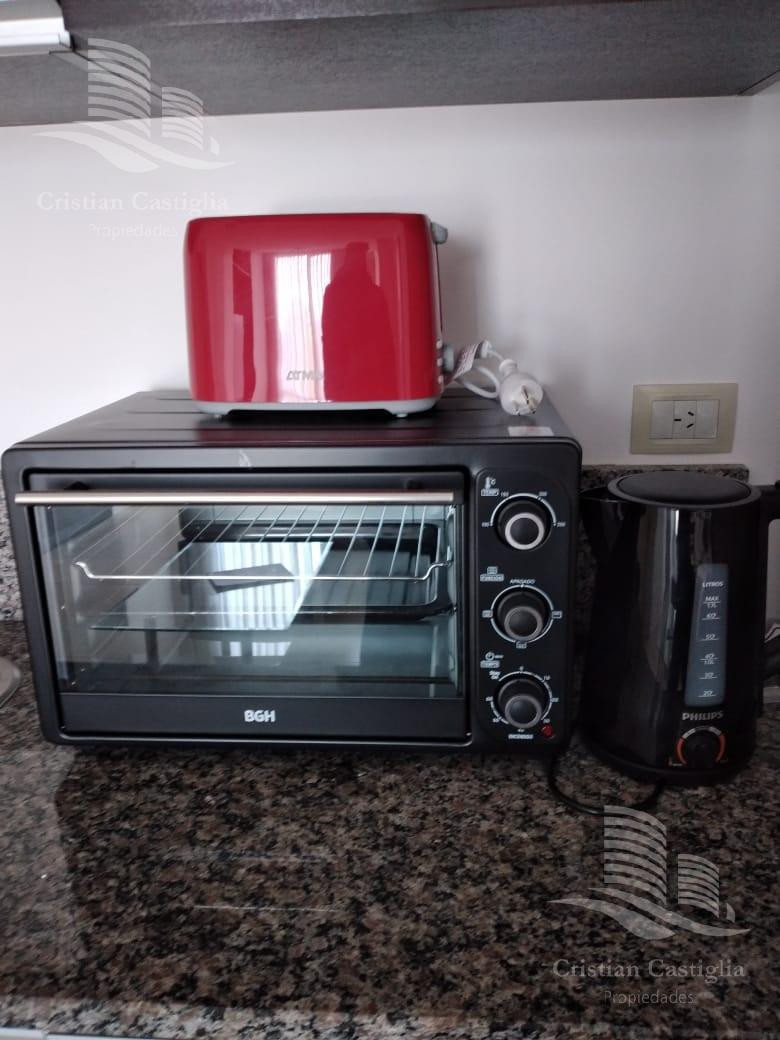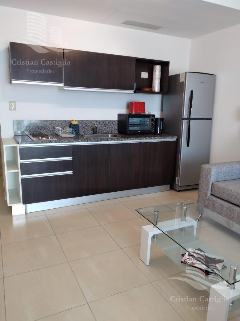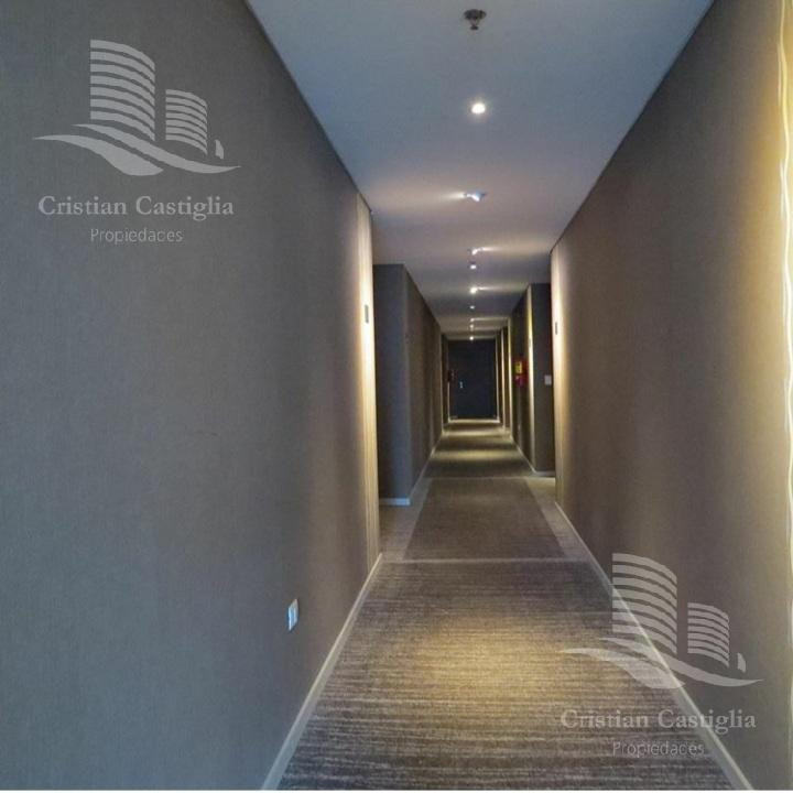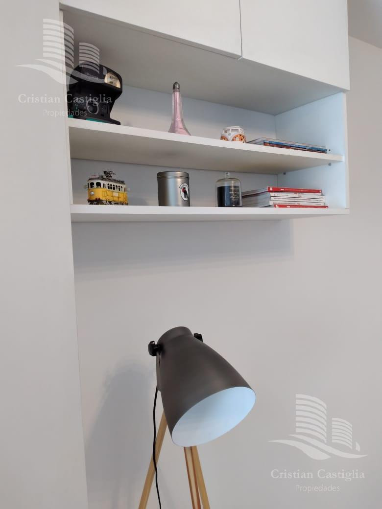Studio apartment in Condominios de la Bahía, Nordelta, in Tigre. The rental includes building fees (expensas). Unit offers one divisible room, an integrated kitchen with built-in cabinetry, a full bathroom, central air conditioning (hot/cold), and large windows with an open view. The building has a fully equipped gym, 24-hour security, and a laundry room. Listed as available for short-term rental subject to the building’s regulations.