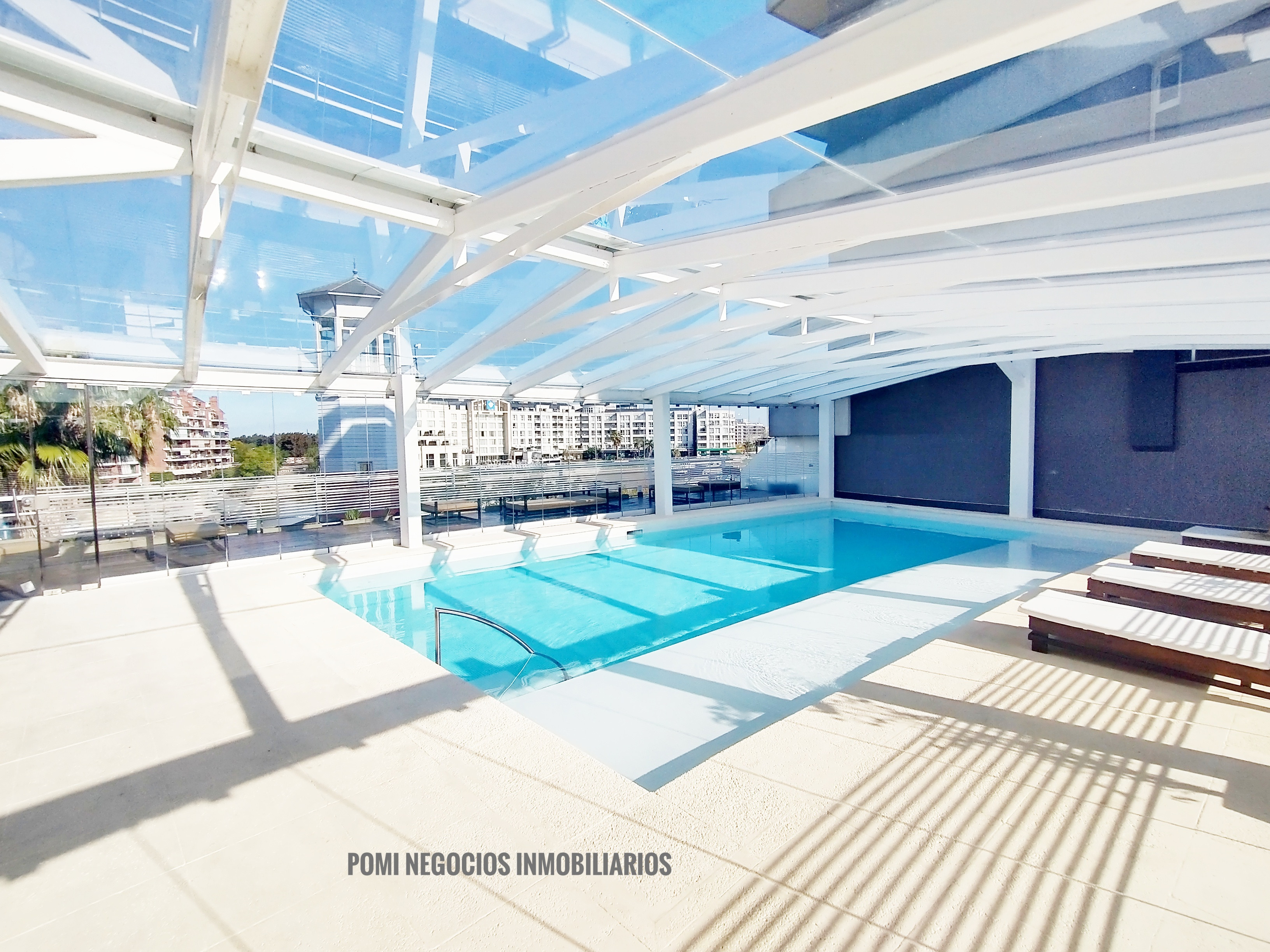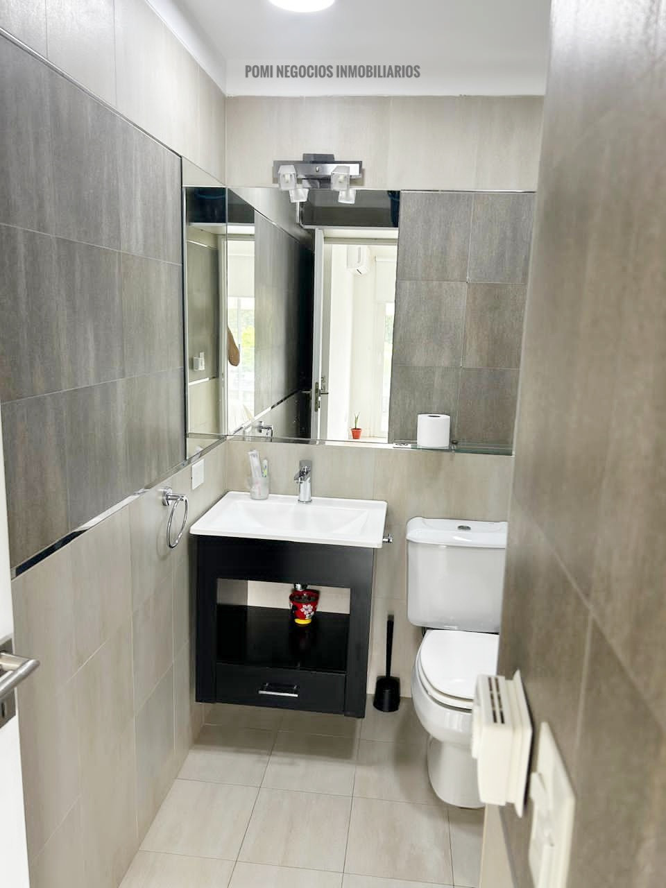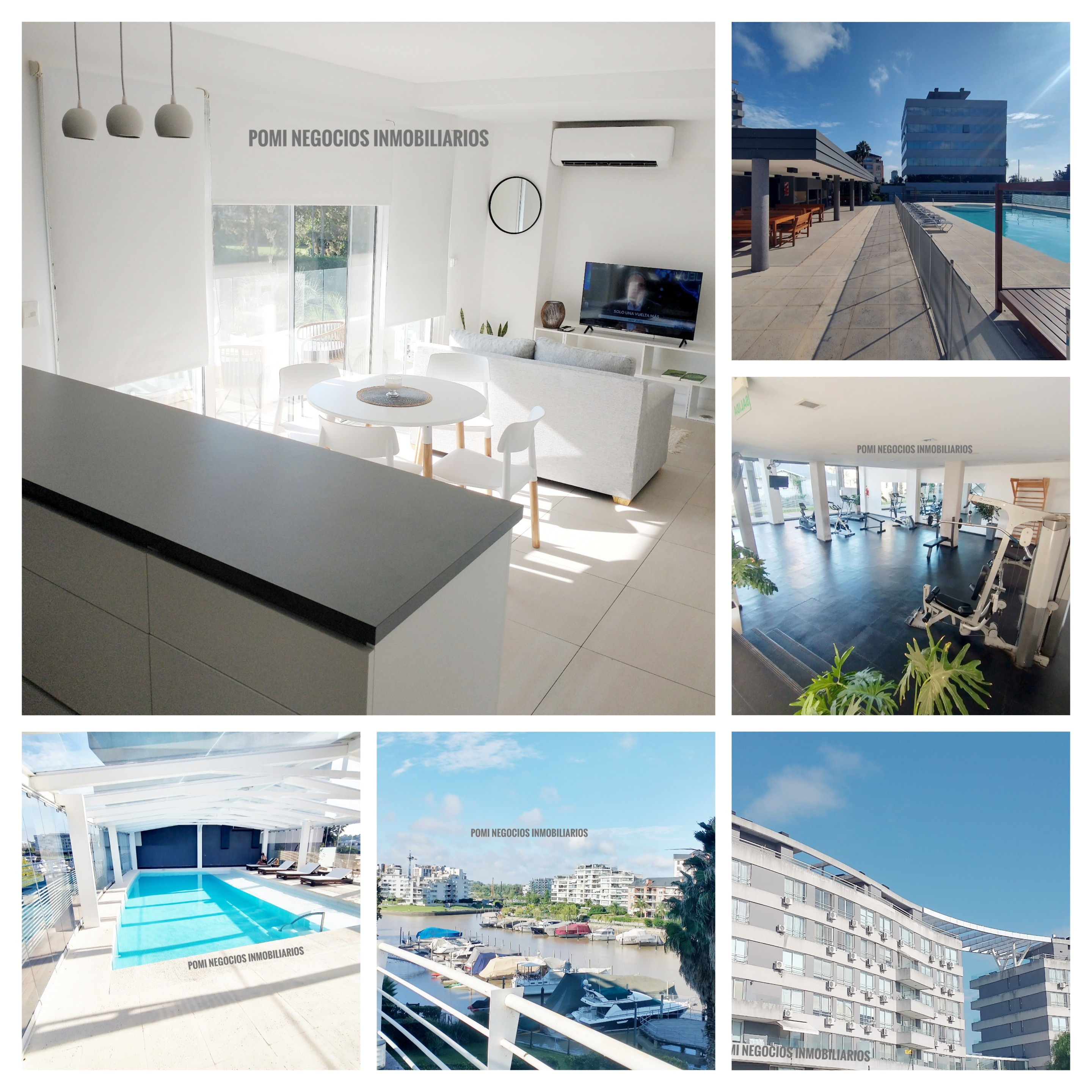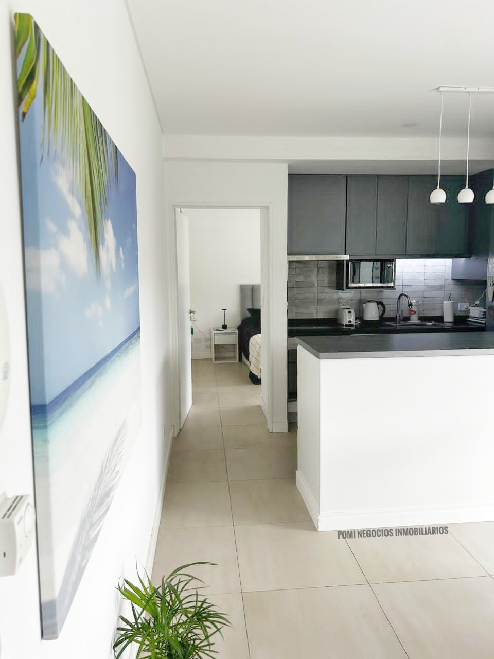 Short-term rental for 3 to 12 months in the Vista Bahía Homes complex in Nordelta. The apartment is furnished and equipped, with 2 rooms: an entry hall, reception toilet, open-plan living-dining area with a developed kitchen, and a bedroom en suite. The unit has air conditioning, double-glazed windows with blackout curtains, a balcony facing the front, radiant underfloor heating with a thermostat in all rooms, a hot-water tank, and a jacuzzi bathtub. The kitchen includes a four-burner cooktop wi