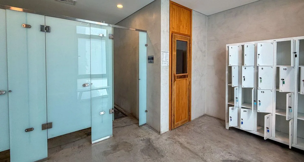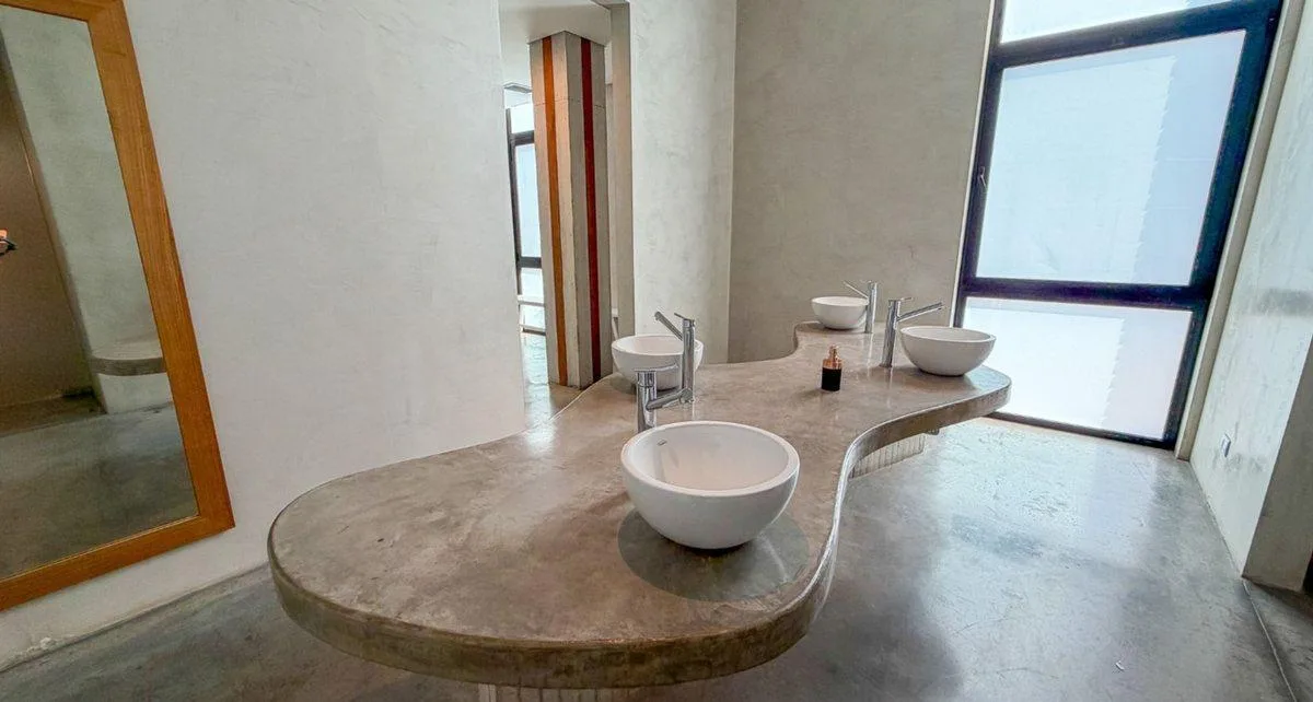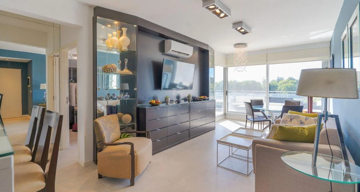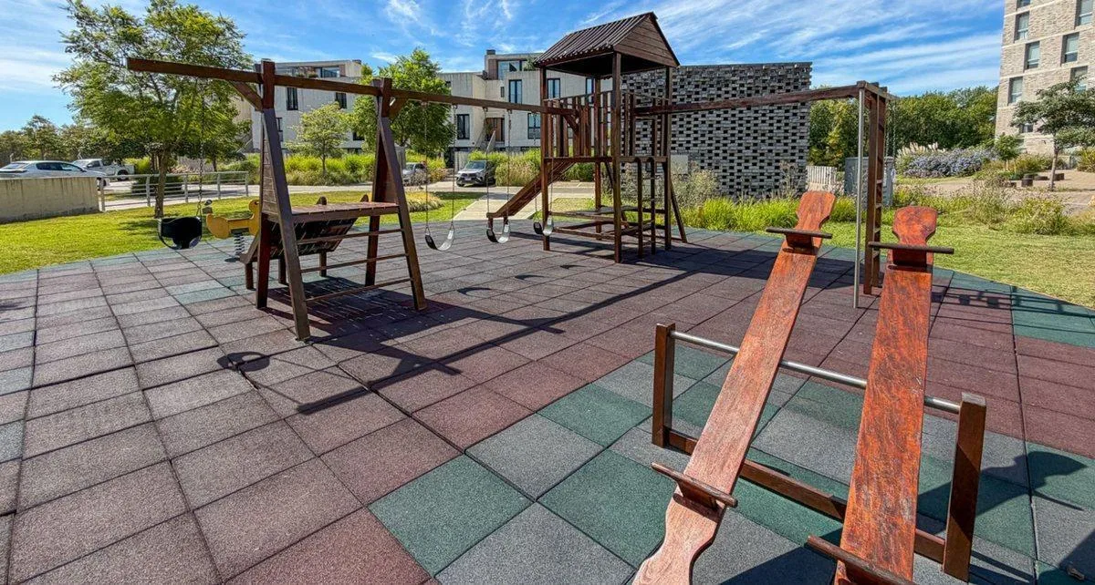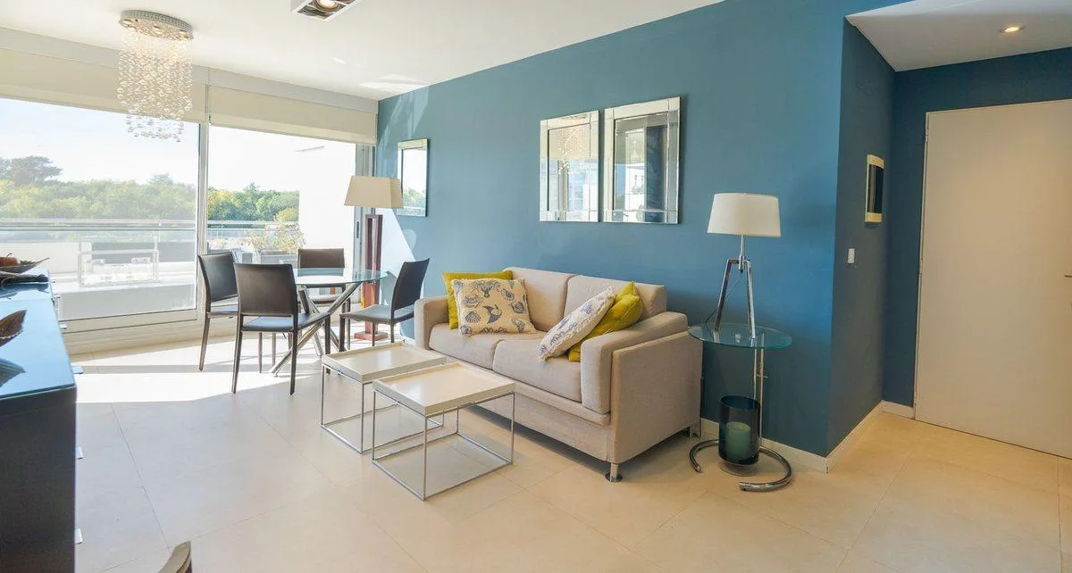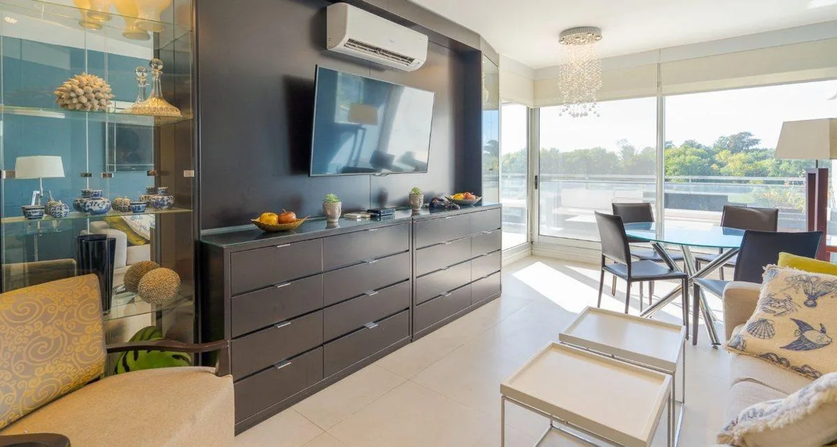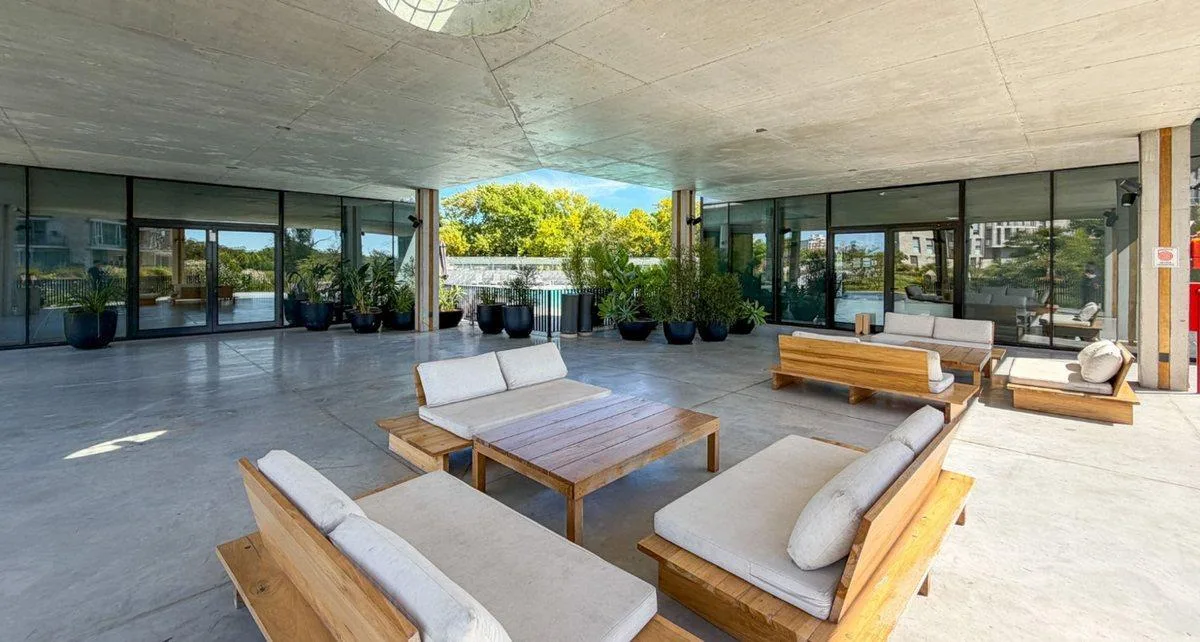Two-room apartment in the Venice complex, first floor street-facing. Fully furnished and equipped, with a living-dining area with direct access to a 14 m² terrace balcony via sliding door. Integrated electric kitchen with dishwasher, fridge, microwave, coffee maker and tableware set; separate reception toilet and a distribution area to the private section. Bedroom with access to the terrace balcony, walk-in dressing area with built-in wardrobes, and a full en-suite bathroom with shower and batht