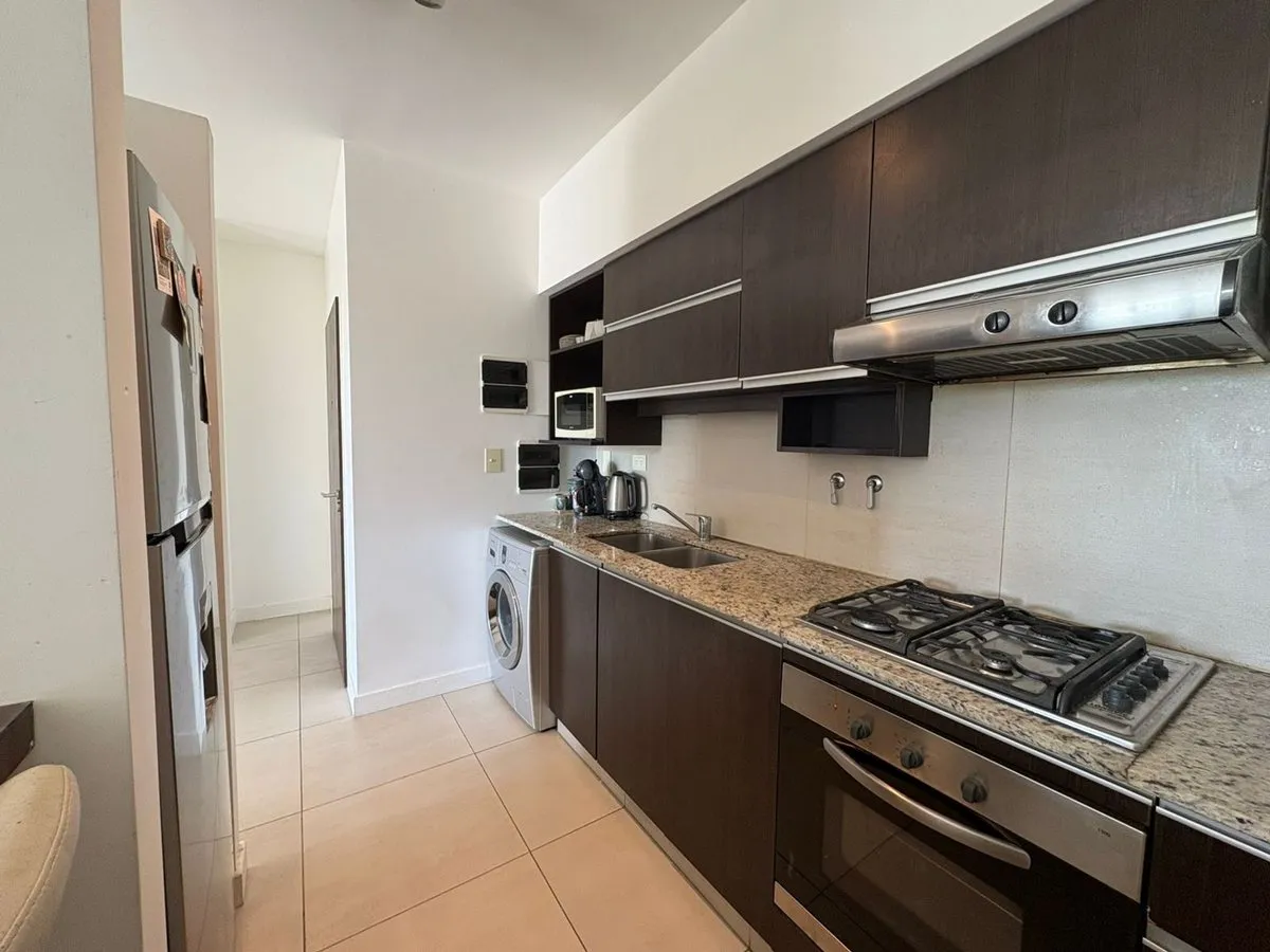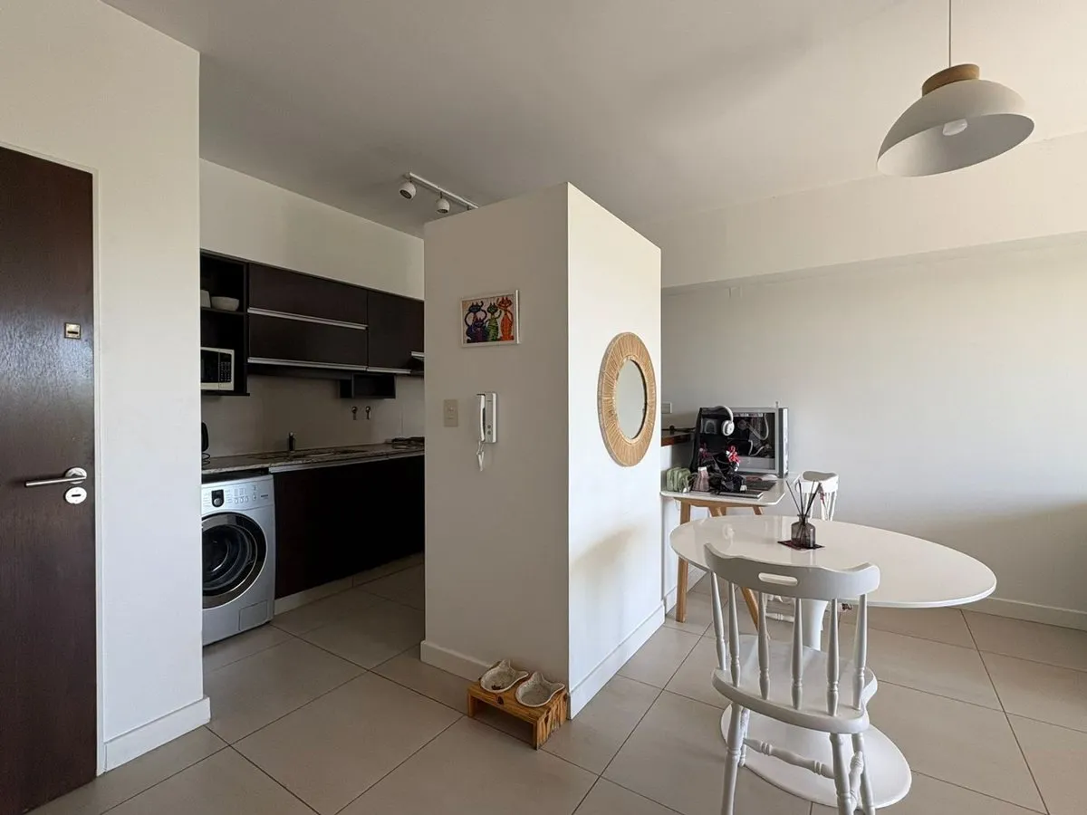 Apartment of 60 m² covered plus 10 m² semi-covered, on the first floor in Edificio Zaduh, built in 2017. Two-room layout with a main bedroom with dressing area, full bathroom, integrated kitchen, and living/dining area. Air conditioning in each room, underfloor heating (losa radiante), balcony with partial view, and a storage room (baulera). Building amenities include security, elevator, residents’ communal room, pool, gym, and a shared terrace with a communal grill. An (included) assigned parki