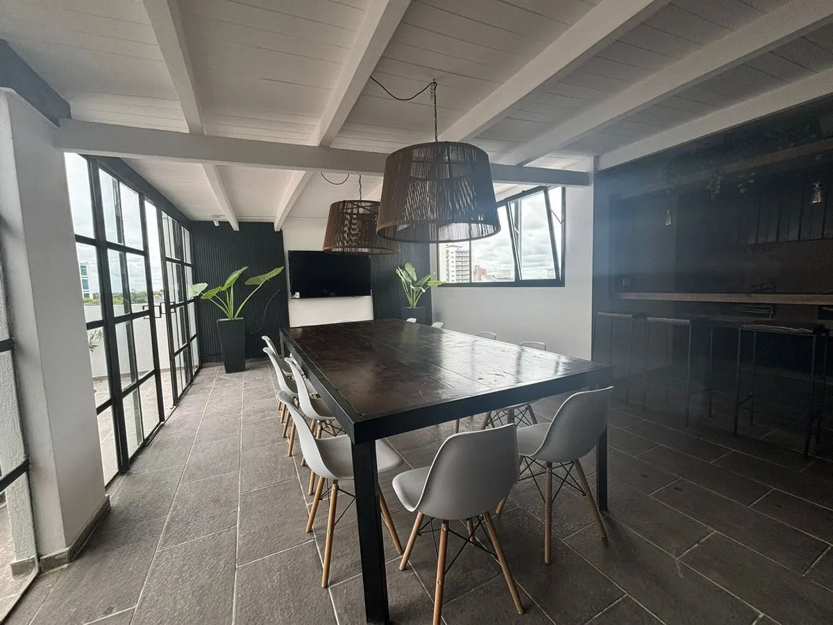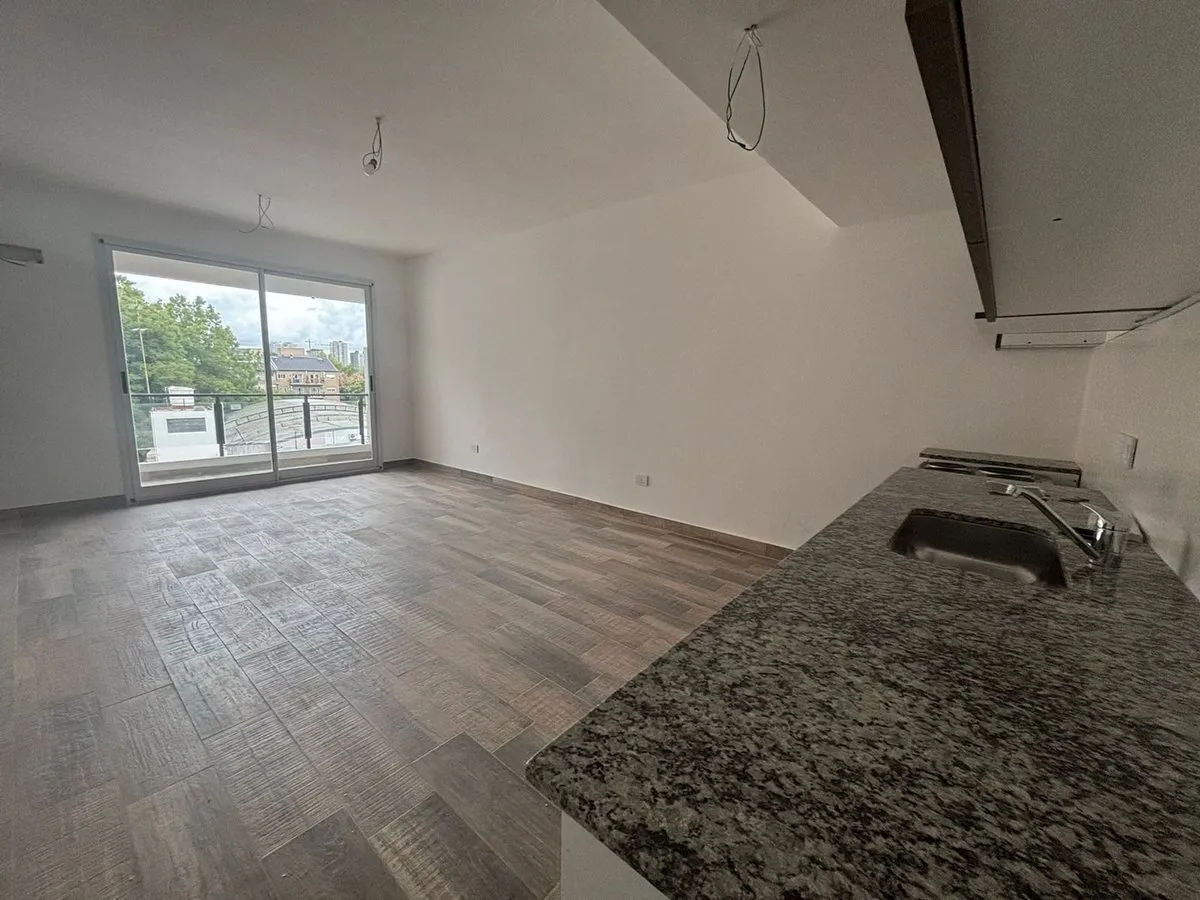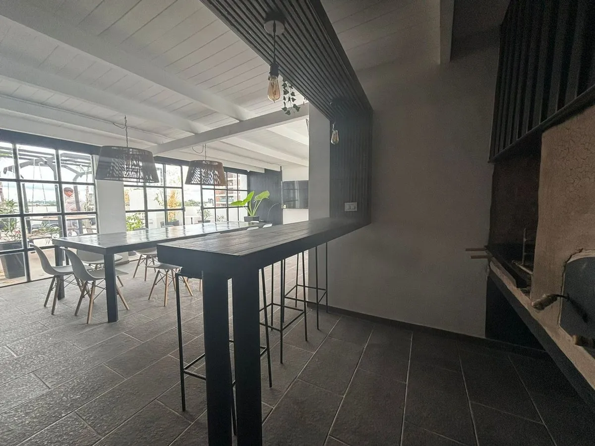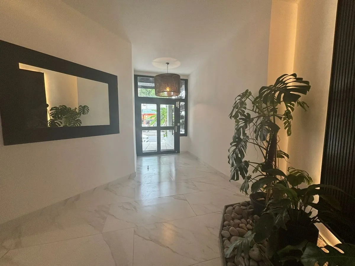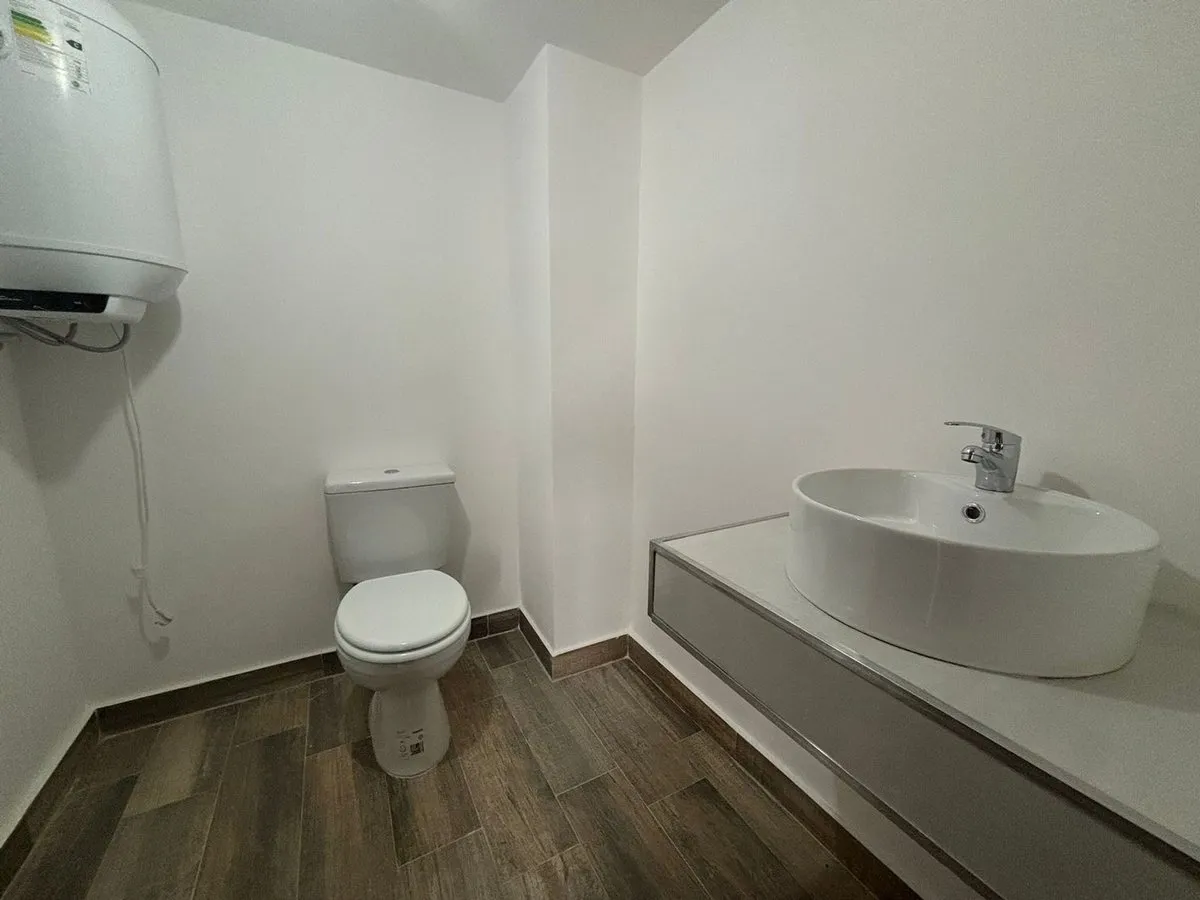 Two-room, brand-new apartment for rent on the 4th floor, street-facing, with a balcony to the street. The unit has a living-dining area with an integrated kitchen, a reception toilet, and a main bedroom en suite with a full bathroom and walk-in closet. The apartment is fully electric. The building includes amenities on the top floor: pool with jacuzzi type, solarium and a grill area.