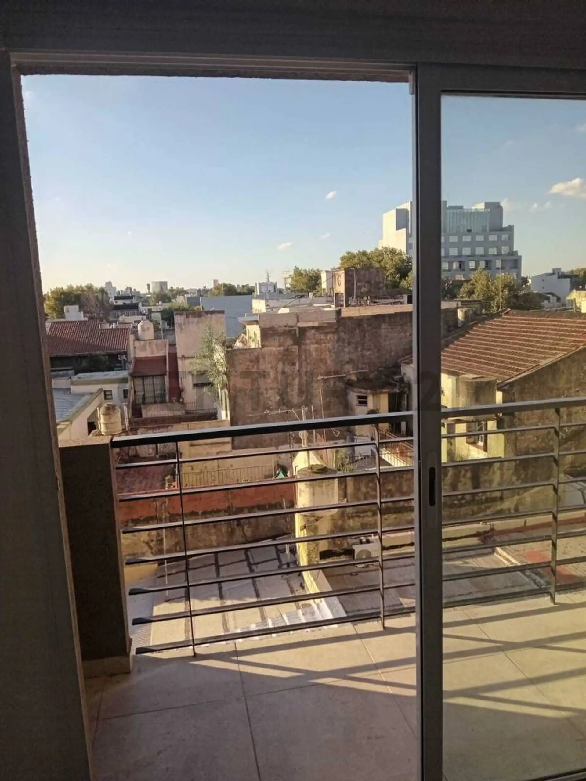 Studio apartment on the 3rd floor, front-facing and courtyard-facing, described as ready to move in. The listing states low building fees (expensas).