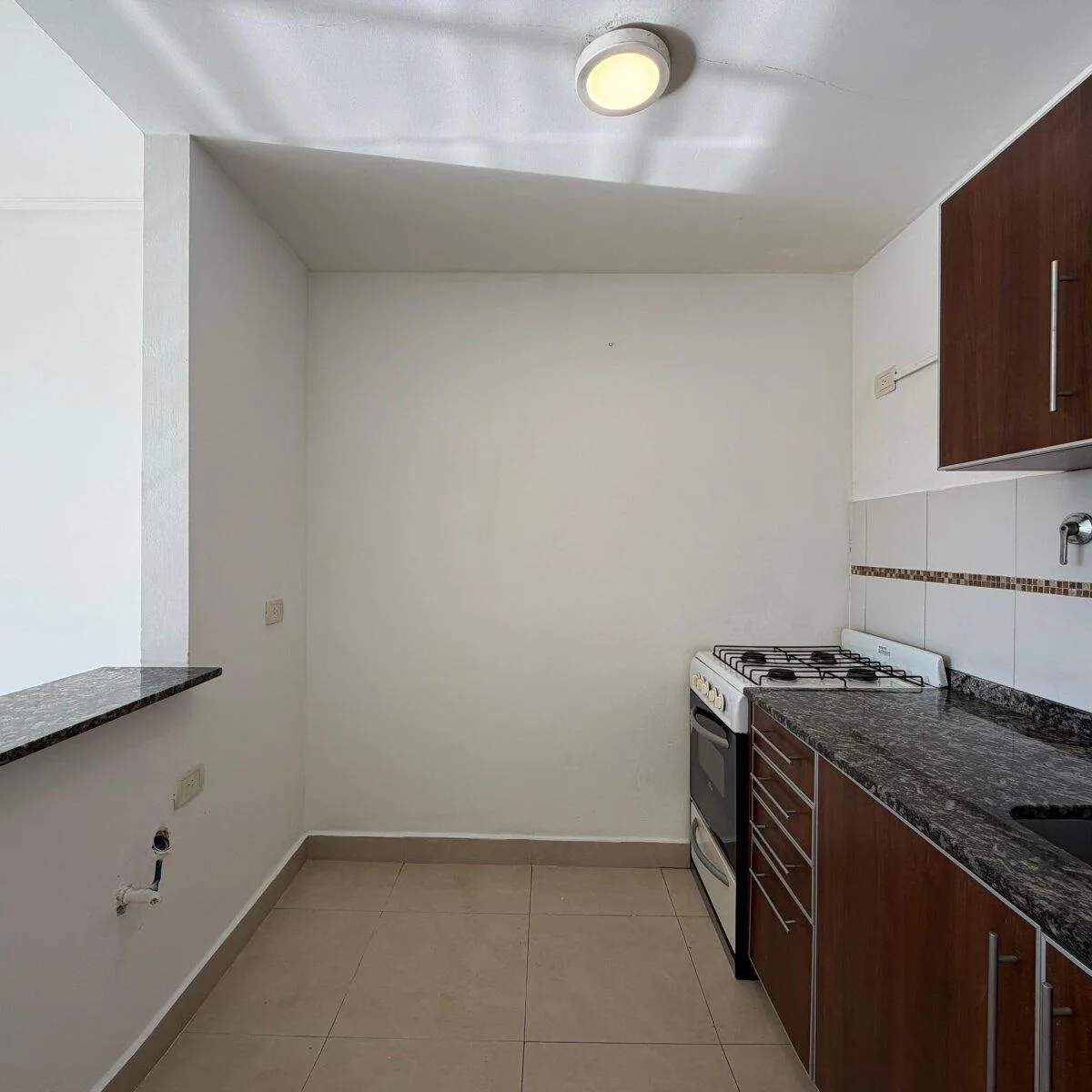 Two-room apartment on the 2nd floor, 43 m² total (39 m² covered). Includes a complete kitchen with a breakfast bar, a bedroom with built-in wardrobe, a full bathroom with a bathtub, and direct access to the balcony. The building has a pool, BBQ grills, children’s play area and a communal room (SUM) with equipment; building fees are $65,000 per month approximately. Pets are not allowed, and the rental requires a property guarantee or Finaer insurance and proof of income.