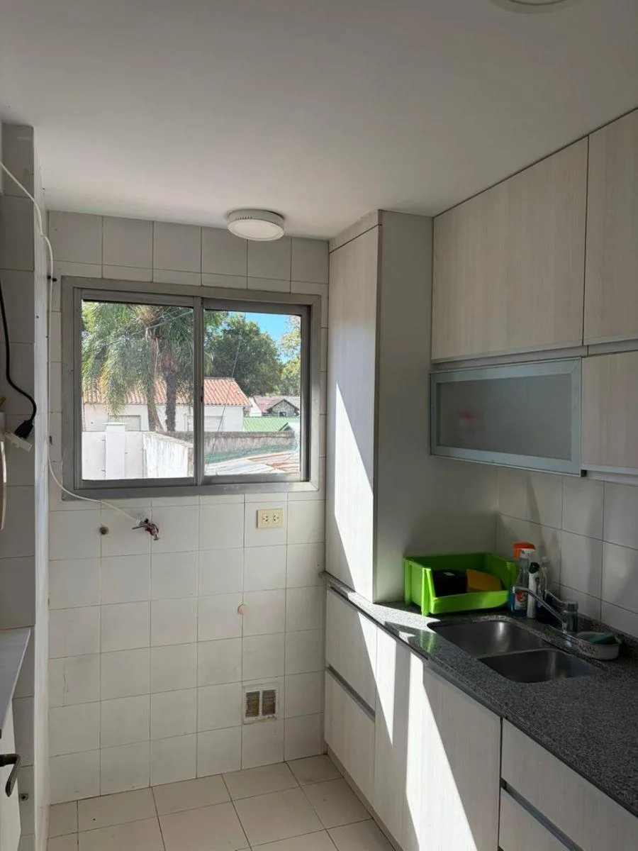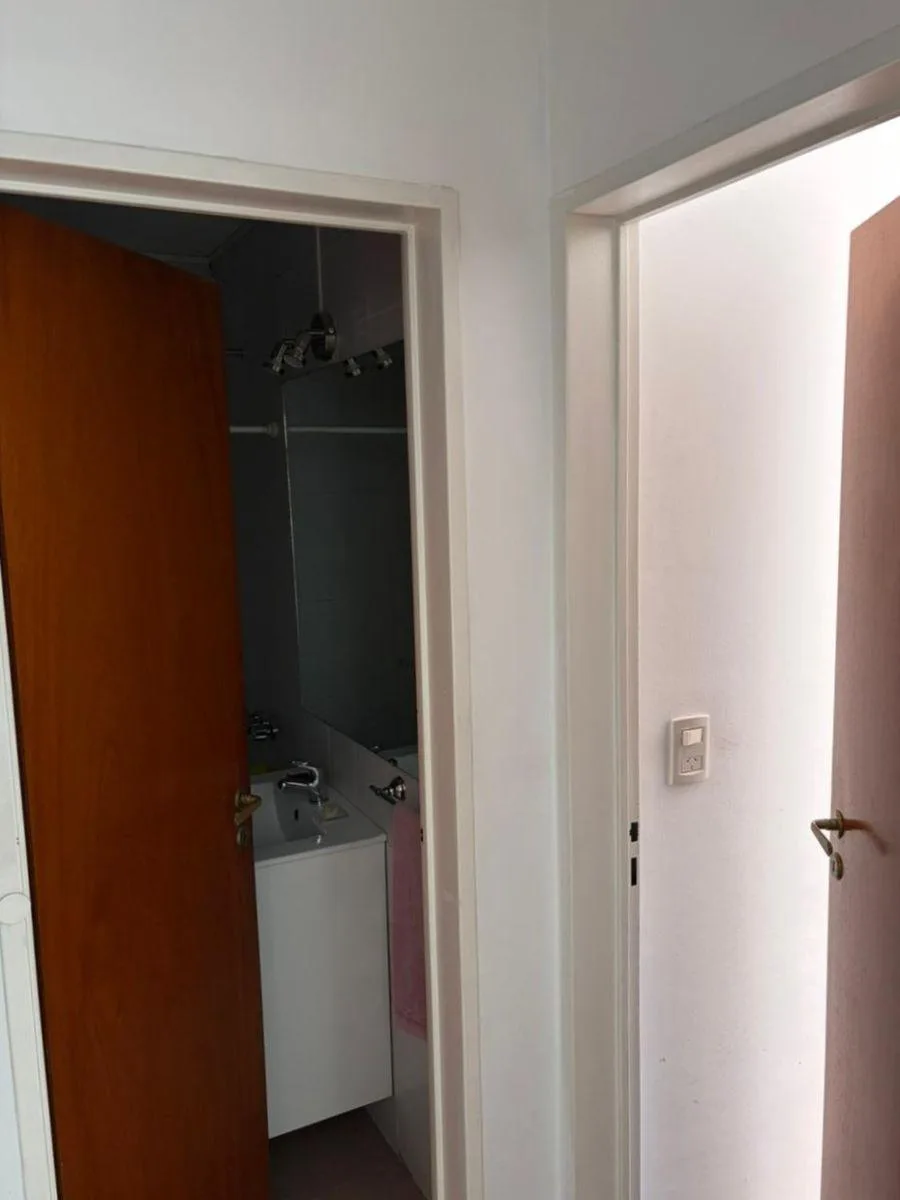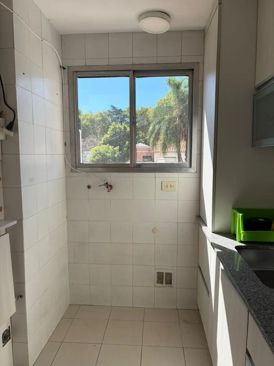 Two-room apartment of 42 m² on Av. Maipú, 1,300 (between Gobernador V. Vergara and Urquiza) in Vicente López. The layout includes a living-dining room, a hallway with a built-in storage closet, one bedroom with a built-in wardrobe, one bathroom with a bathtub, and a kitchen with a connection for a washing machine. Building fees (expensas) are payable, rent is ARS 650.000 with quarterly adjustments by ICL, and the lease is for 2 years.