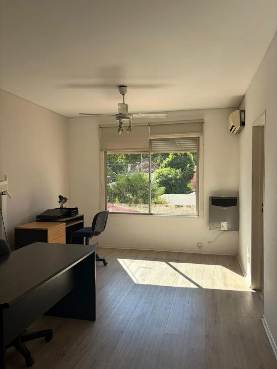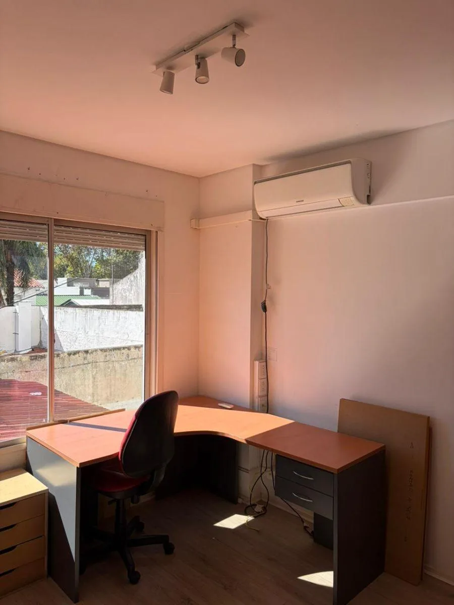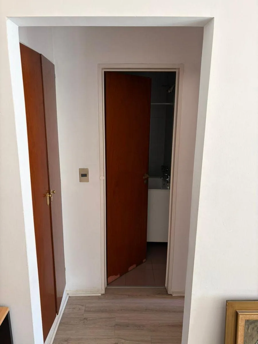 Two-room apartment of 42 m² on Av. Maipú, 1,300 (between Gobernador V. Vergara and Urquiza) in Vicente López. The layout includes a living-dining room, a hallway with a built-in storage closet, one bedroom with a built-in wardrobe, one bathroom with a bathtub, and a kitchen with a connection for a washing machine. Building fees (expensas) are payable, rent is ARS 650.000 with quarterly adjustments by ICL, and the lease is for 2 years.