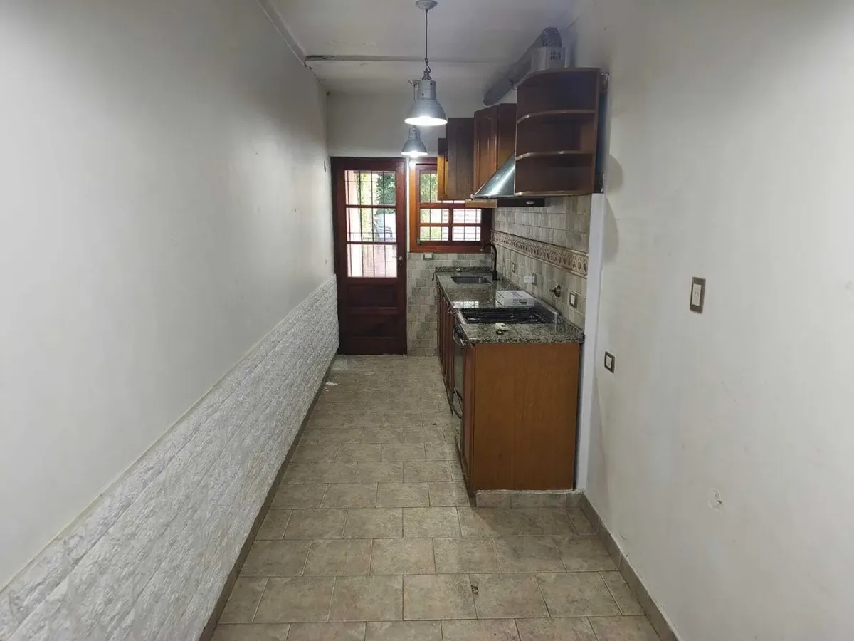 Ground-floor PH in Victoria, San Fernando, without building fees. Private interior-block courtyard with garden, a covered gallery and a grill. One bedroom plus a flexible living/work area; the bedroom has polished parquet flooring and a window facing the gallery and garden, with split air conditioning and a balanced-flue heater.