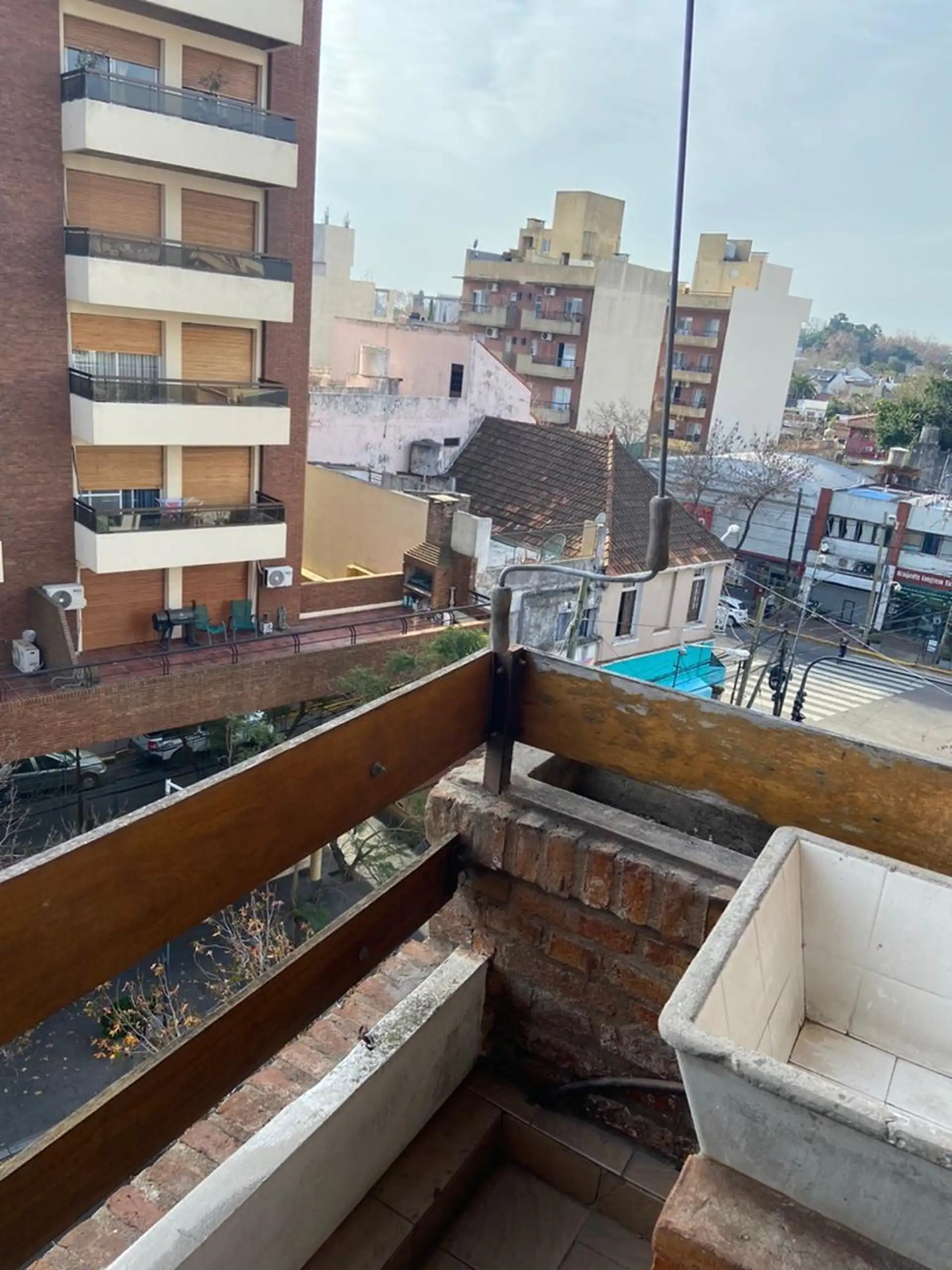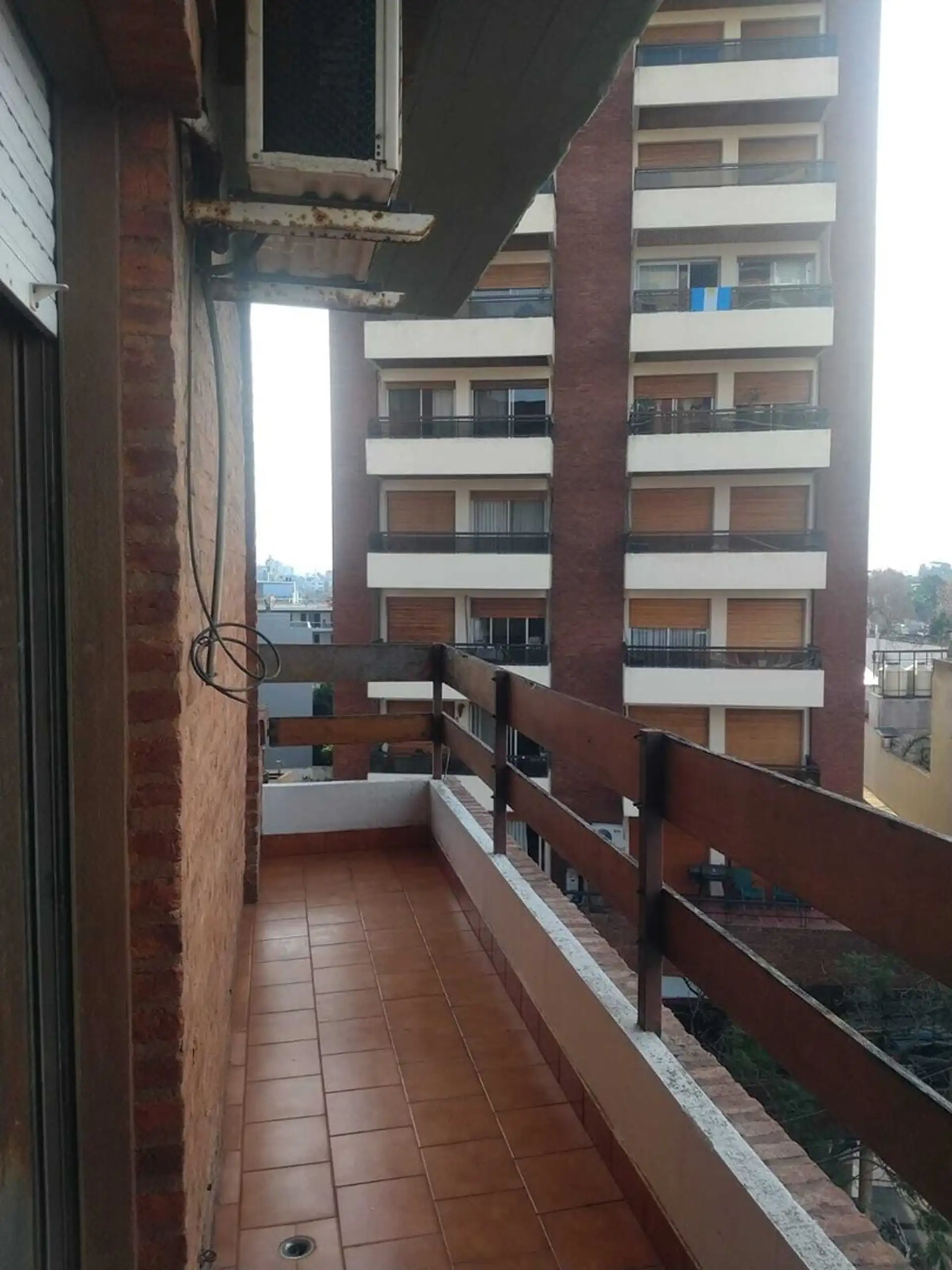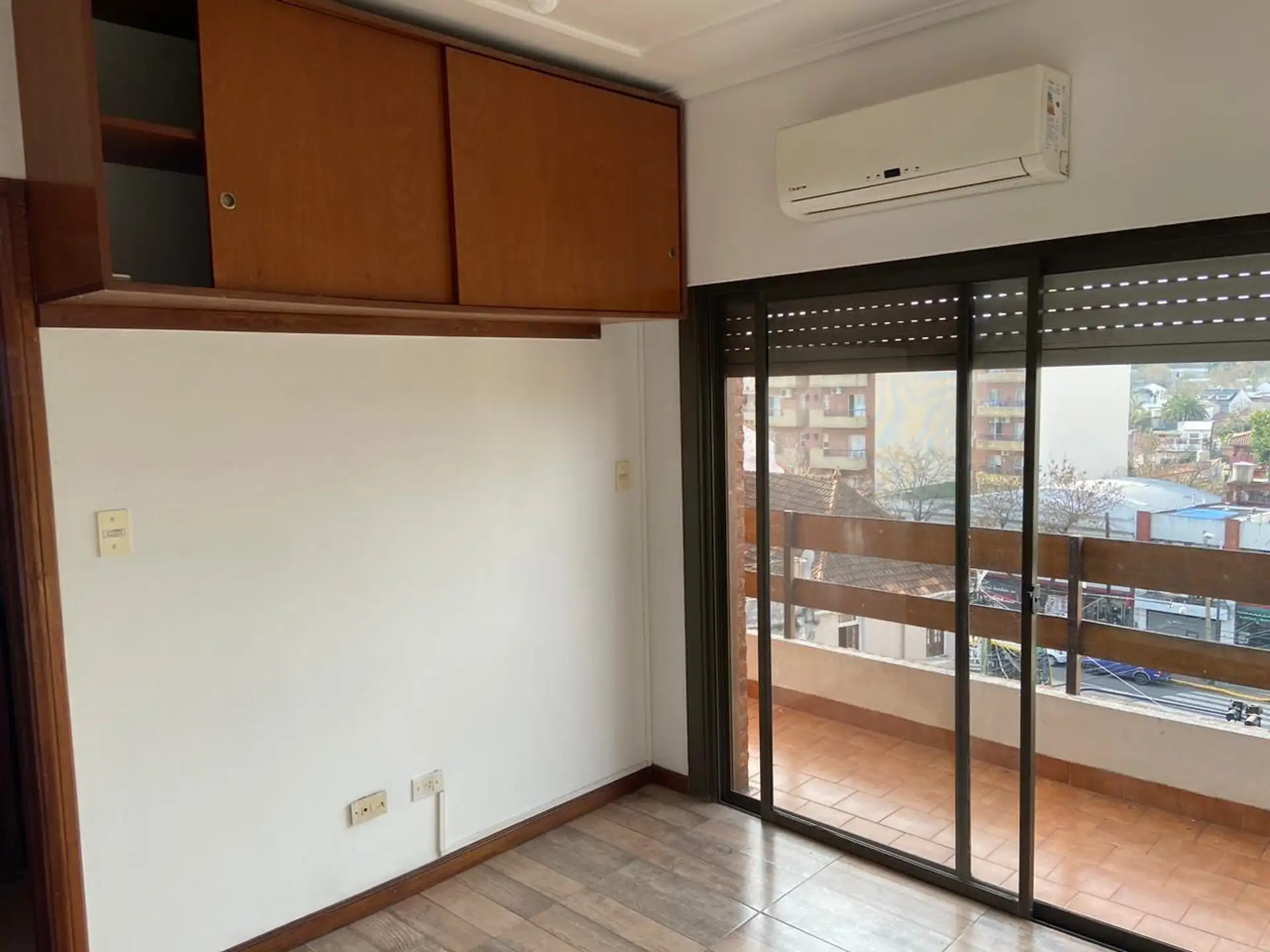 Two-room apartment for rent in Victoria, on the 4th floor of a high-rise building. Northeast-facing with three balconies and separate exits from the living-dining area to the balcony overlooking Calle Santamarina. Separate kitchen opens to a balcony on Calle Simón de Isondo; there is space for a washing machine with a laundry tub. Full bathroom, bedroom with split air conditioning (cooling and heating) and access to a continuous balcony on Avenida Perón, plus a separate dressing room. Building f