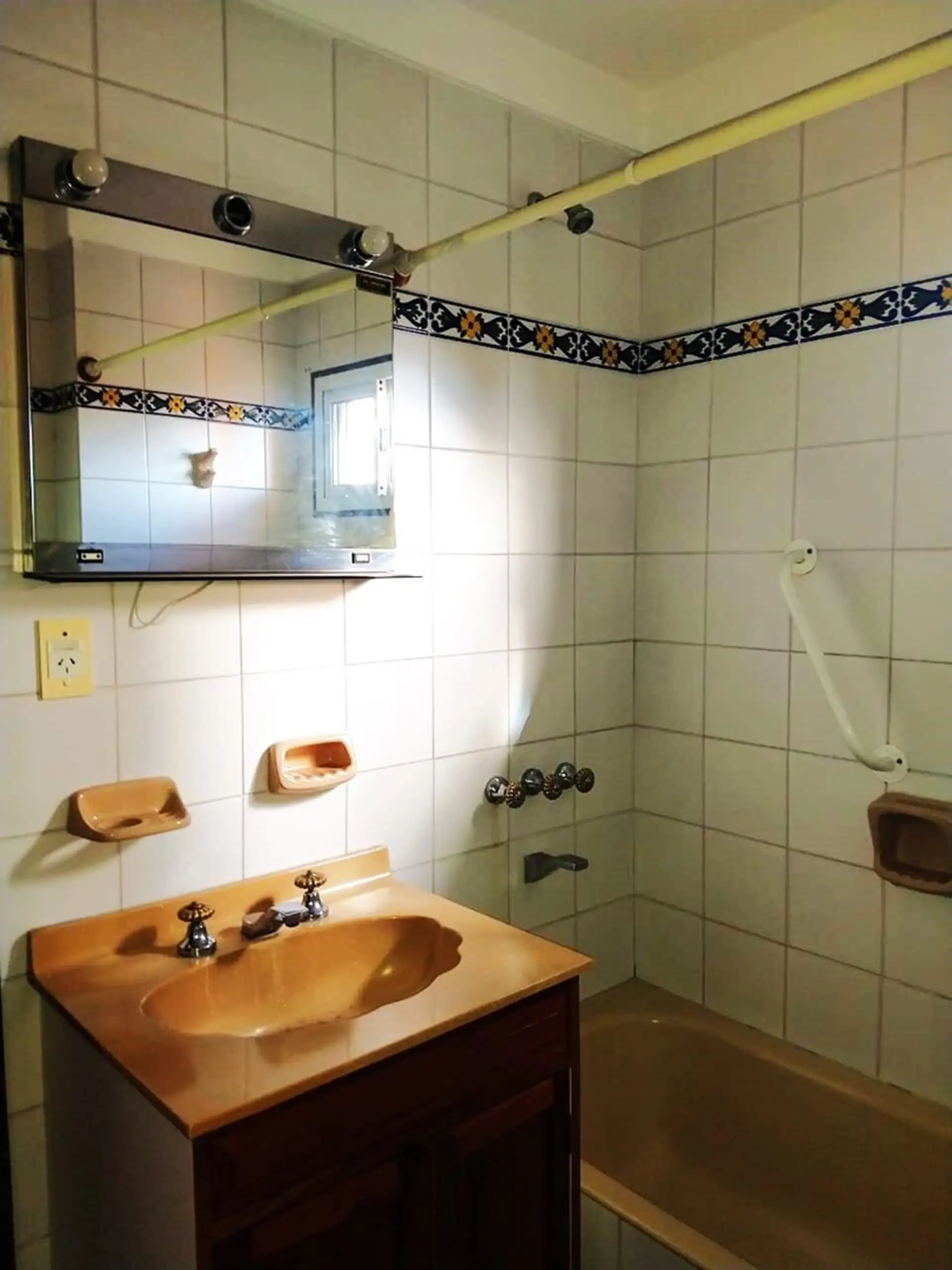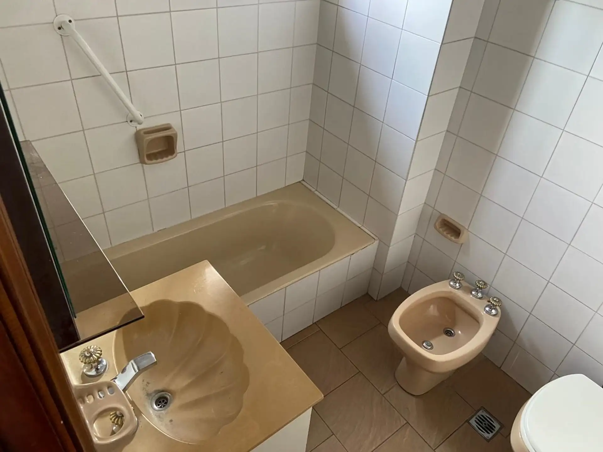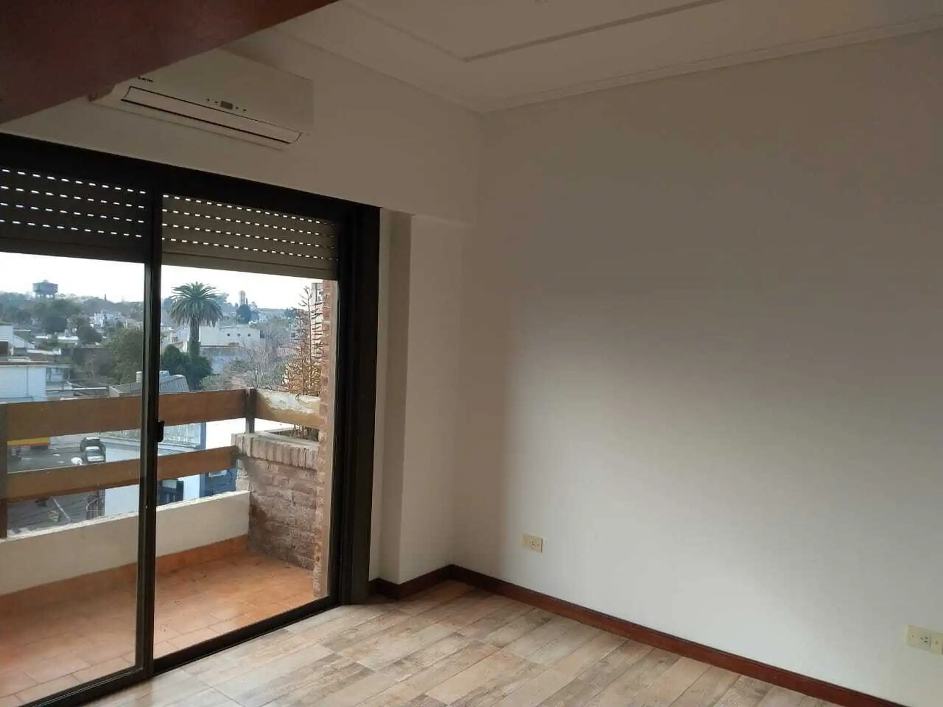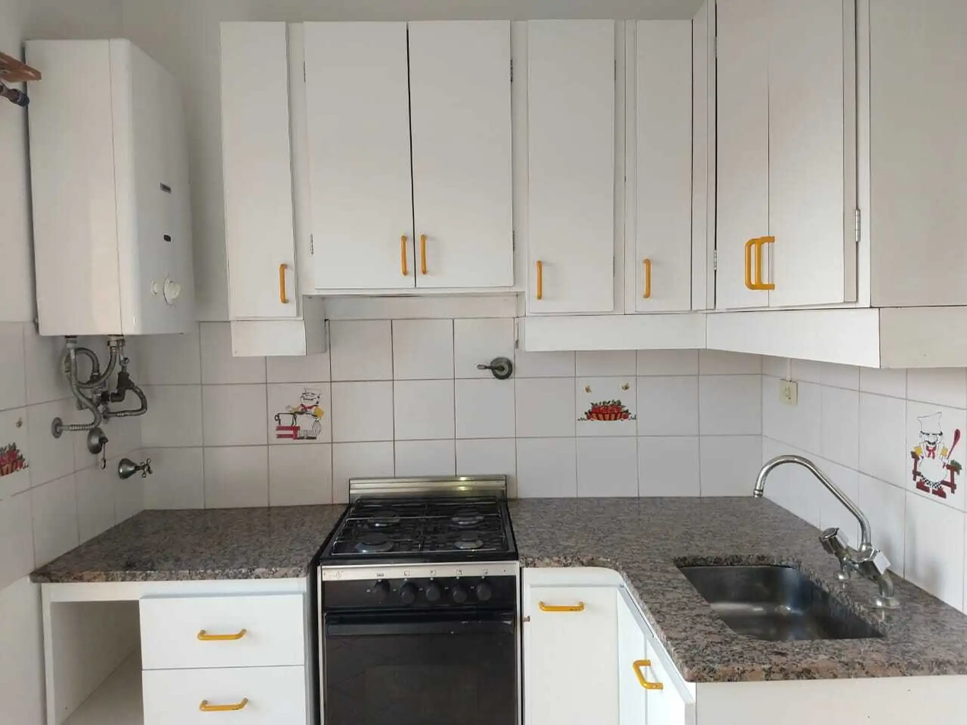 Two-room apartment for rent in Victoria, on the 4th floor of a high-rise building. Northeast-facing with three balconies and separate exits from the living-dining area to the balcony overlooking Calle Santamarina. Separate kitchen opens to a balcony on Calle Simón de Isondo; there is space for a washing machine with a laundry tub. Full bathroom, bedroom with split air conditioning (cooling and heating) and access to a continuous balcony on Avenida Perón, plus a separate dressing room. Building f