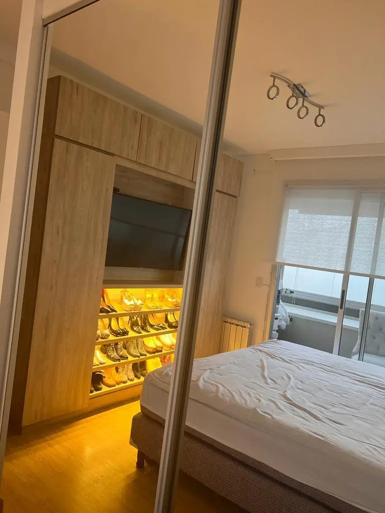 Apartment with a large living room of 42 m², with space that can be partitioned to add an office or a bedroom. It has a balcony with an enclosed system for year-round use. Building amenities include a communal room (SUM), a grill area, patios, and a covered parking space, with reinforced security.