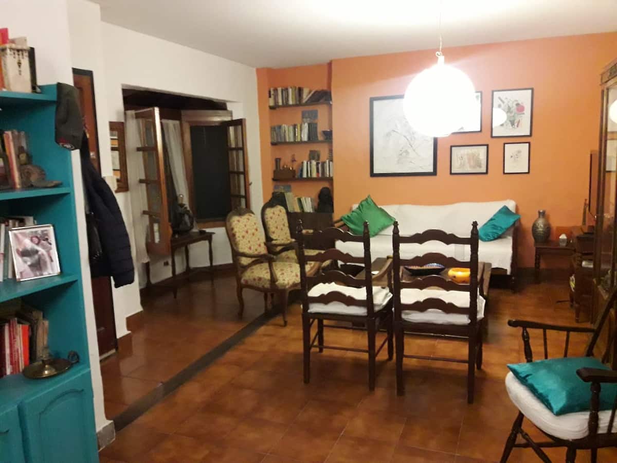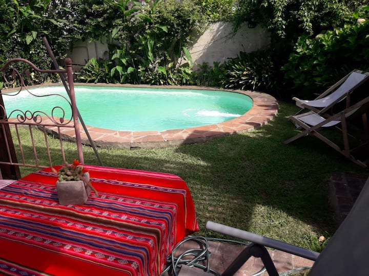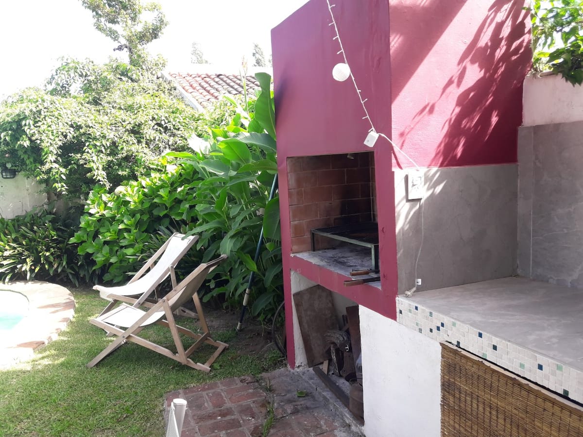 Room in a bright house in a residential, wooded area in Victoria. Shared access to a kitchen, garden and pool, with two full bathrooms. The house is about 10 minutes from Victoria station on the Mitre line and about 2 minutes from Av. del Libertador and JD Perón, with several bus lines.