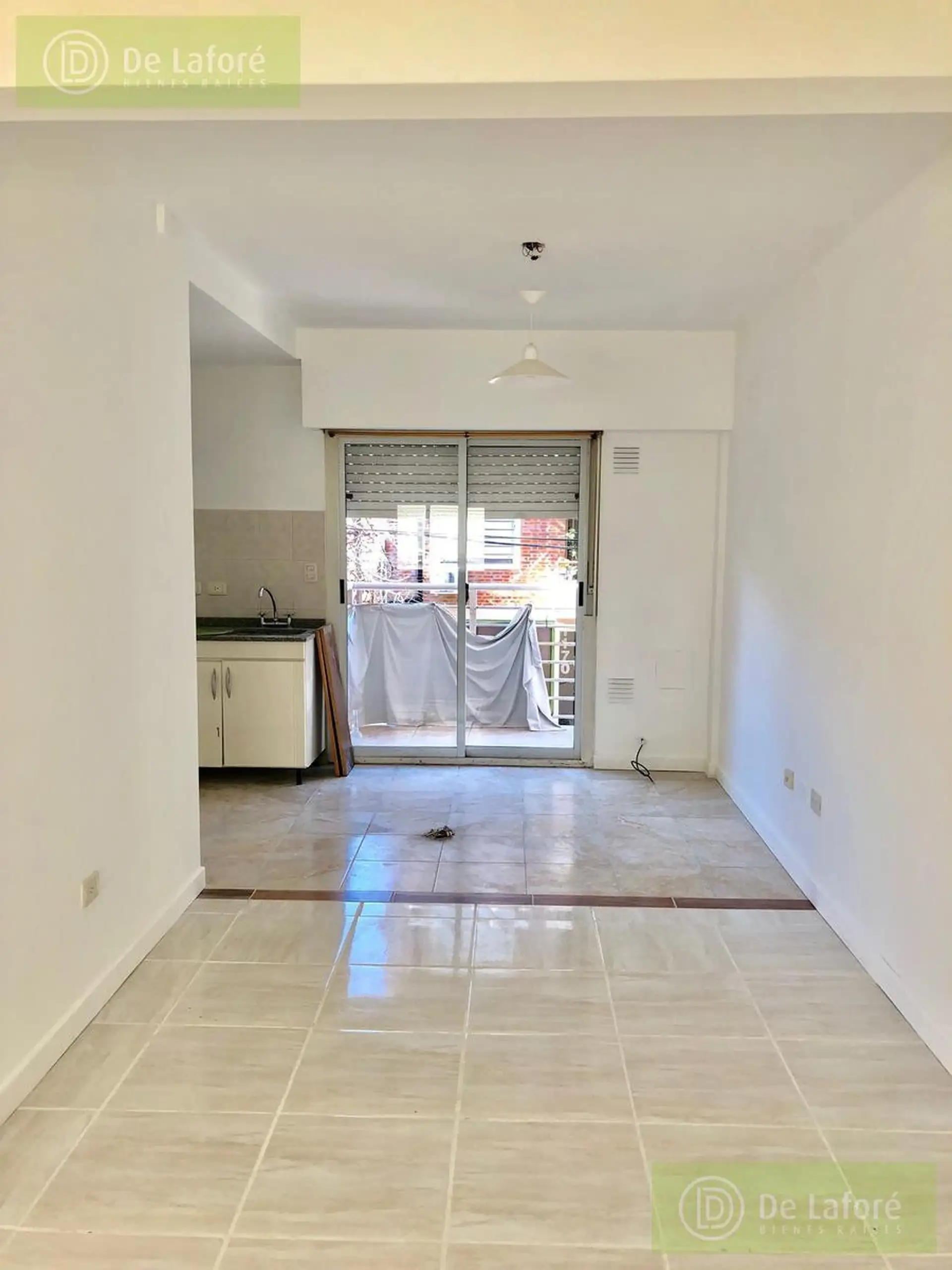 One-room apartment with divisible layout in Victoria Centro, 35 m² total, street-facing and south-oriented. Integrated kitchen and a bathroom; ceramic flooring. Heating is via balanced-flue system. Building is about 25 years old and has a lift. Contract term is 2 years with quarterly adjustments by the IPC index; building fees are approximately $170,000. No pets.