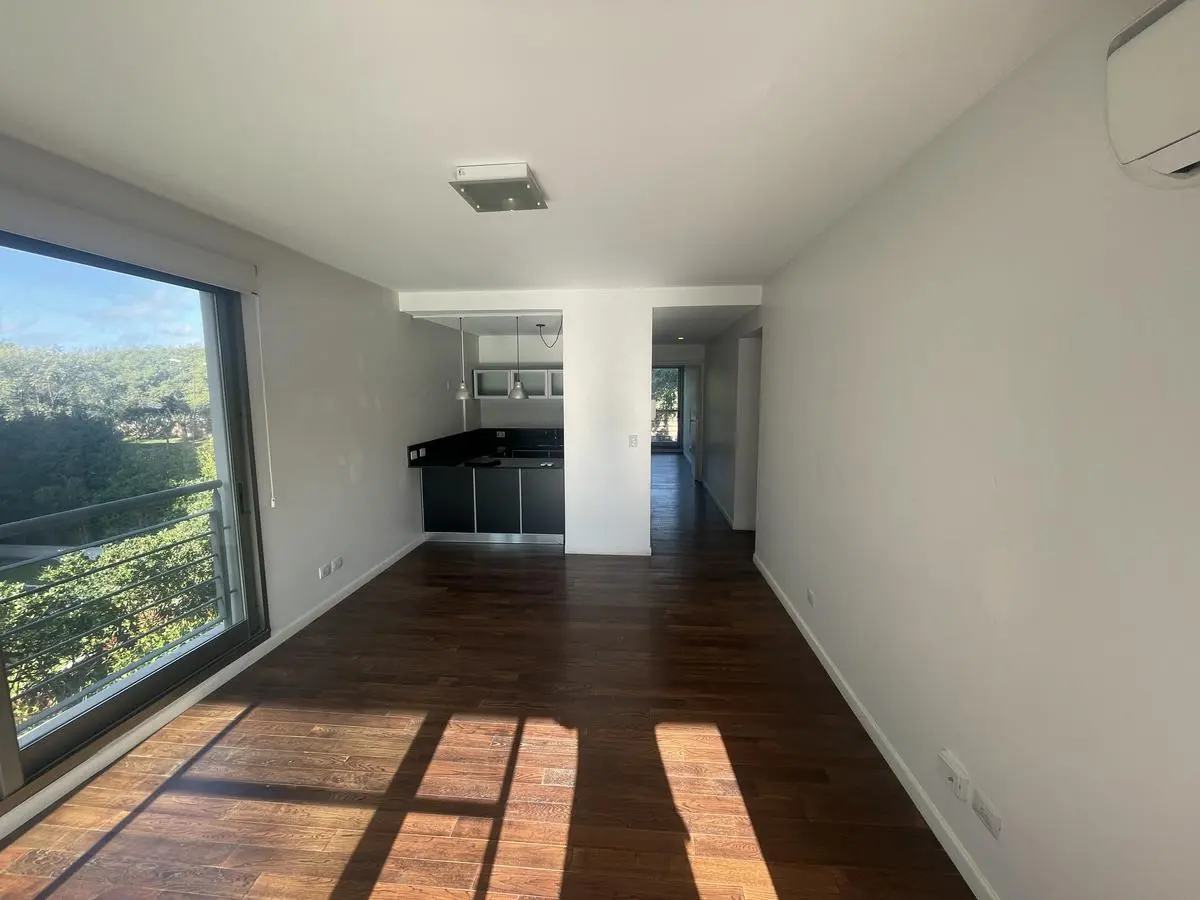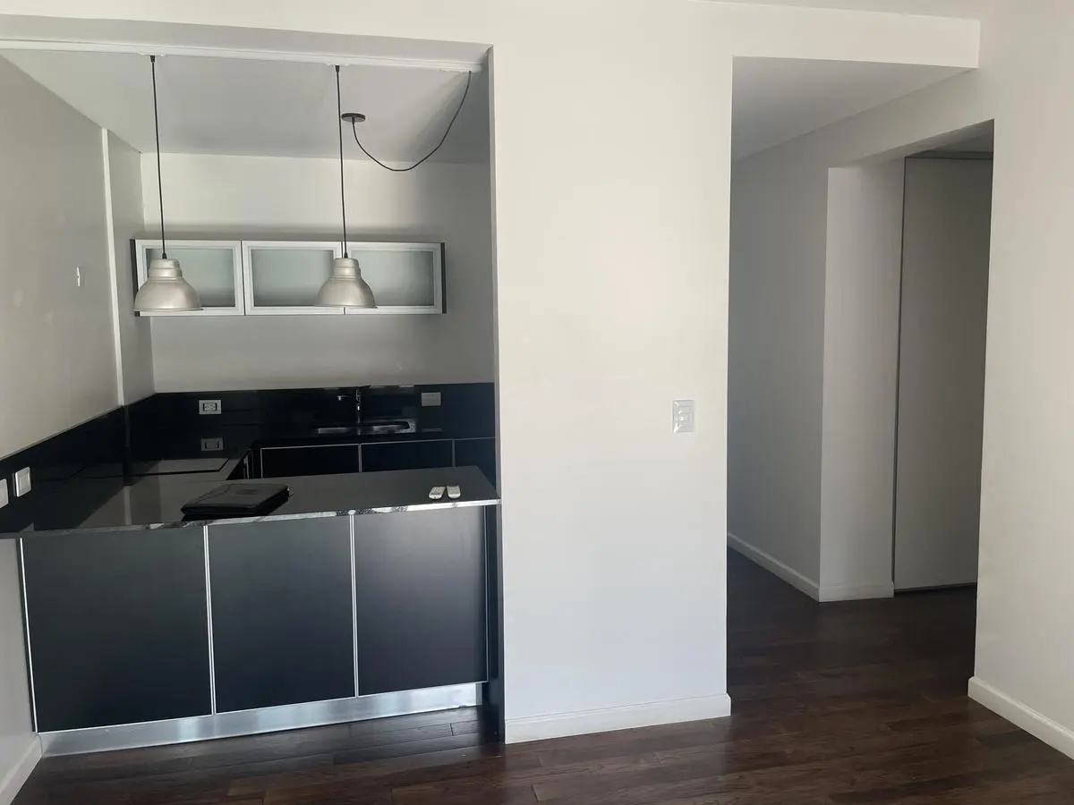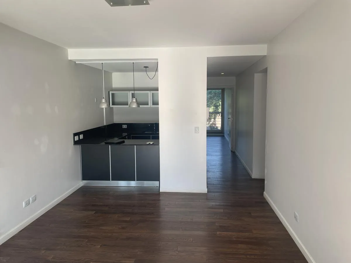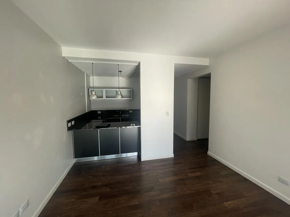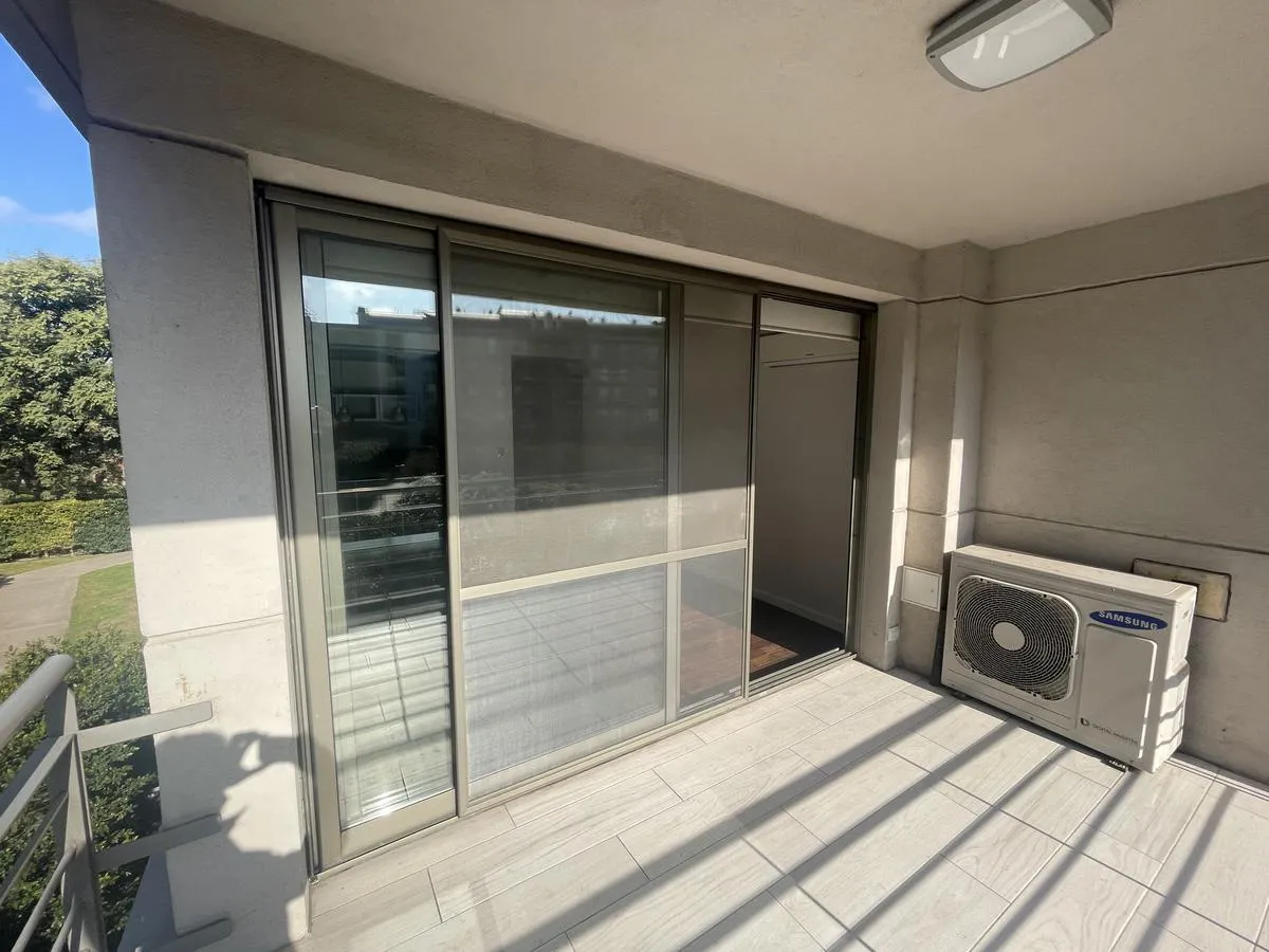 Two-room apartment for rent with 1 bedroom and a separate living-dining area that opens to a balcony measuring 4.75 x 3.60. Bedroom measures 3.50 x 3.60, with a separate kitchen and a full bathroom. Cold-heat air conditioning units in both rooms and a fixed (assigned) parking space. Building amenities include a health club with gym equipment, an aerobic path, covered heated pool, spa area, sauna, semi-Olympic pool, residents’ lounge rooms with a grill, outdoor playground and parking (covered and