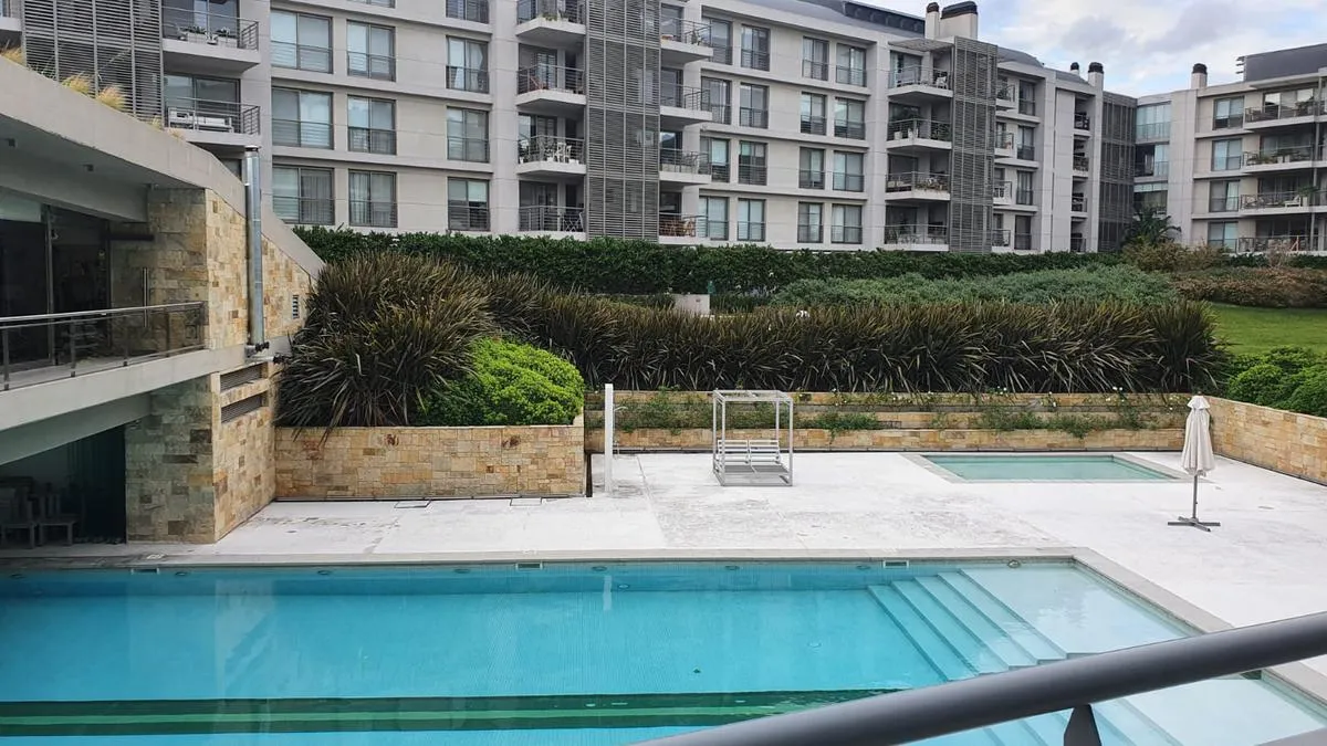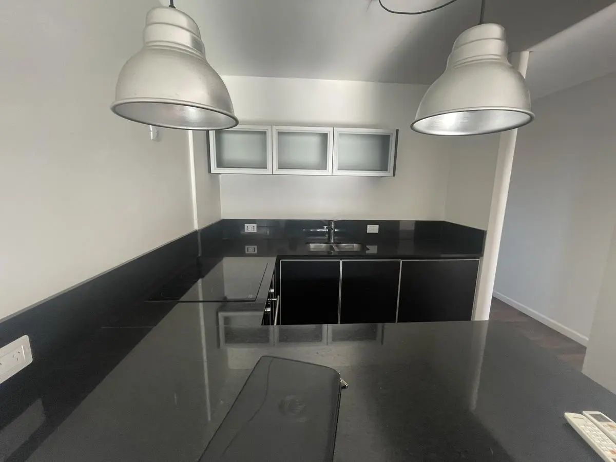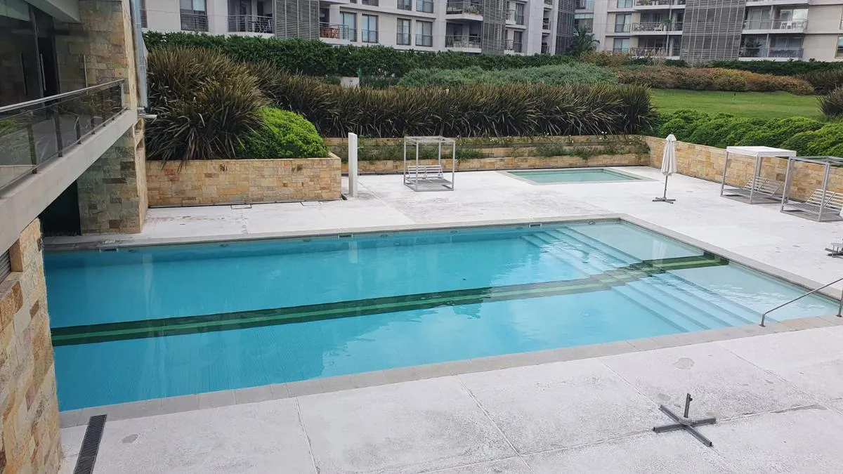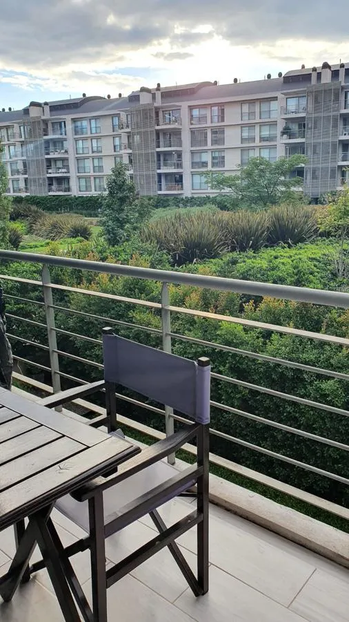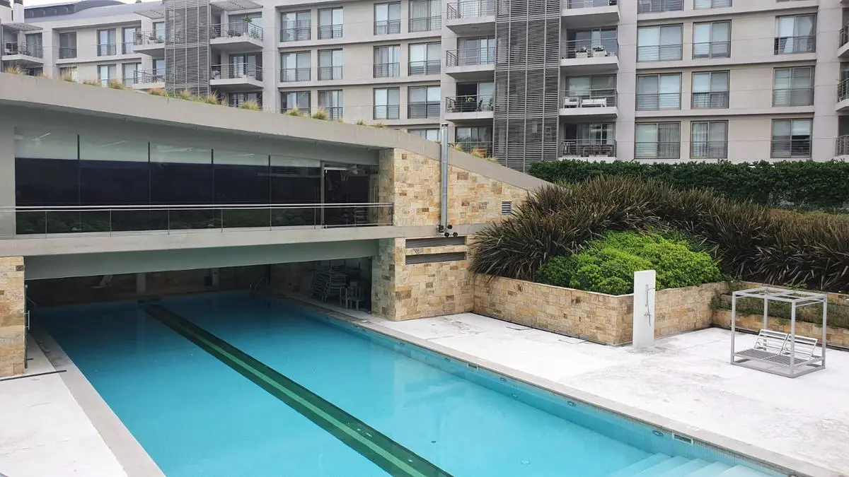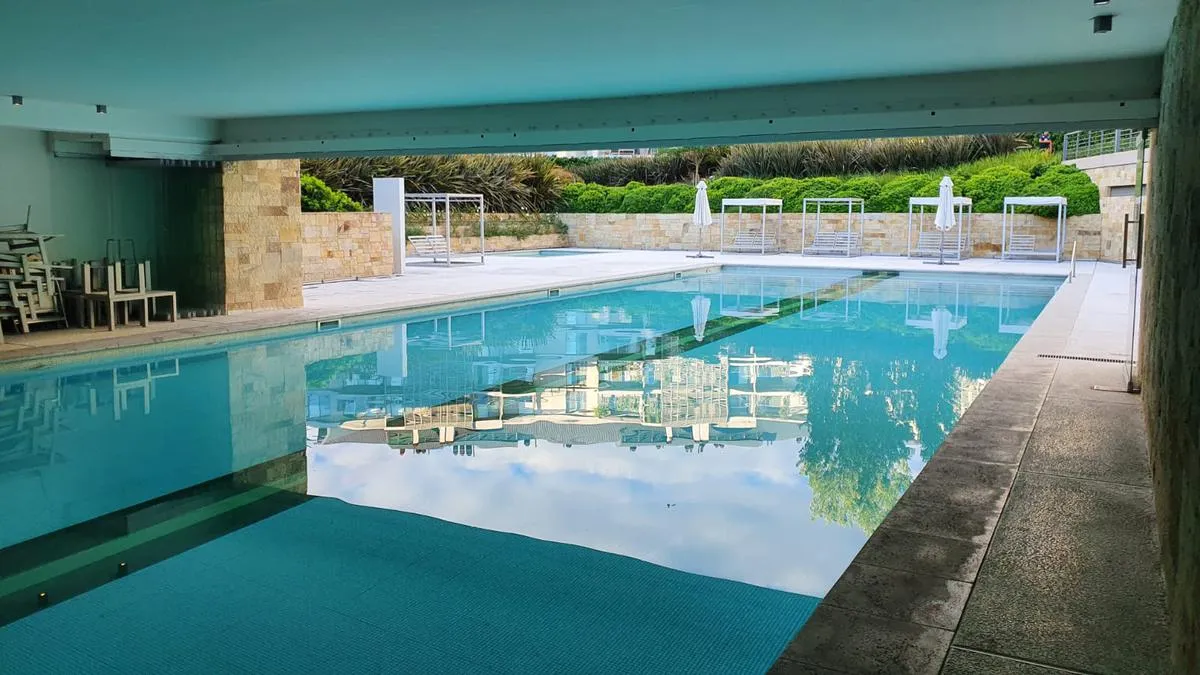 Two-room apartment for rent with 1 bedroom and a separate living-dining area that opens to a balcony measuring 4.75 x 3.60. Bedroom measures 3.50 x 3.60, with a separate kitchen and a full bathroom. Cold-heat air conditioning units in both rooms and a fixed (assigned) parking space. Building amenities include a health club with gym equipment, an aerobic path, covered heated pool, spa area, sauna, semi-Olympic pool, residents’ lounge rooms with a grill, outdoor playground and parking (covered and