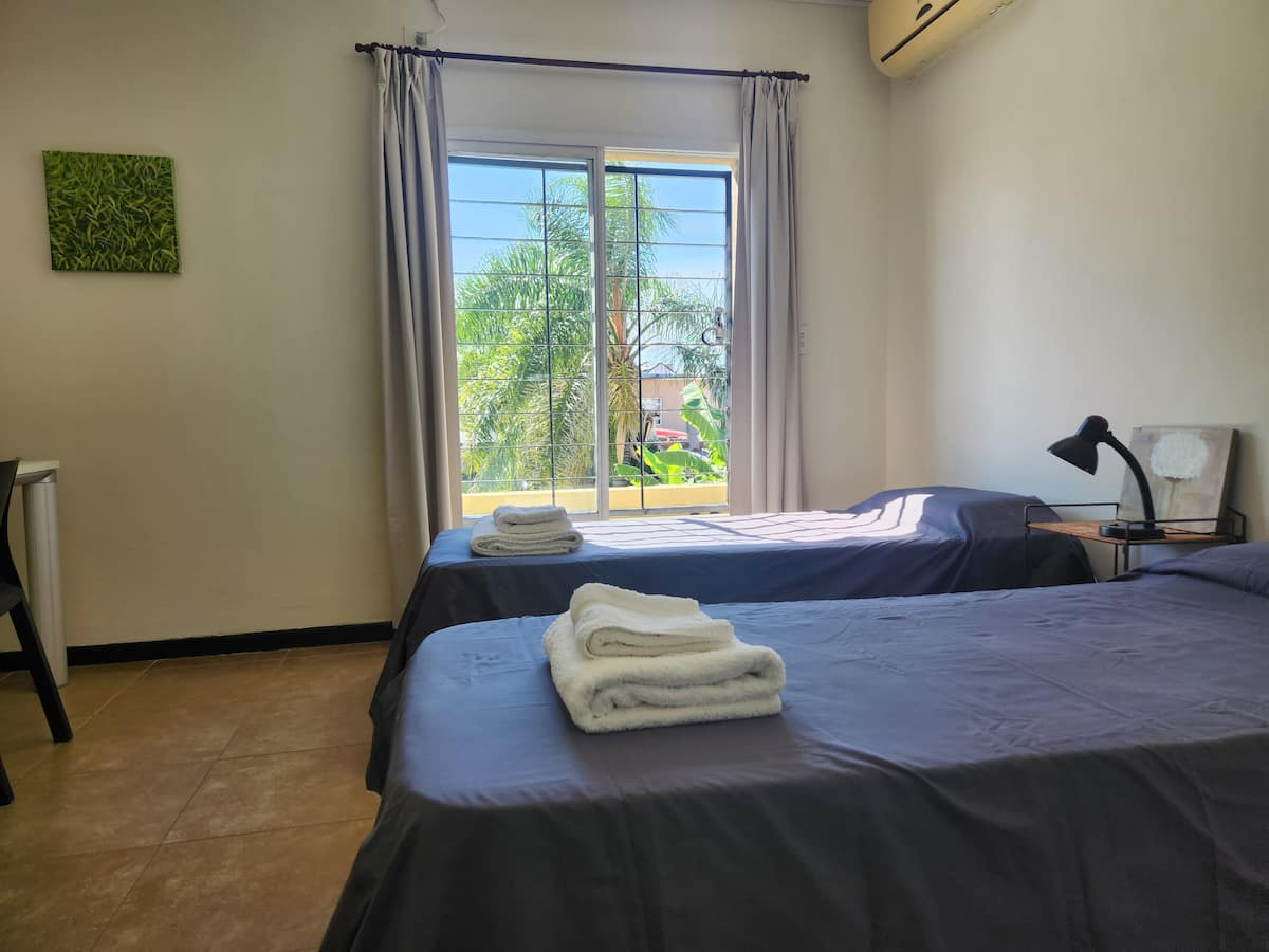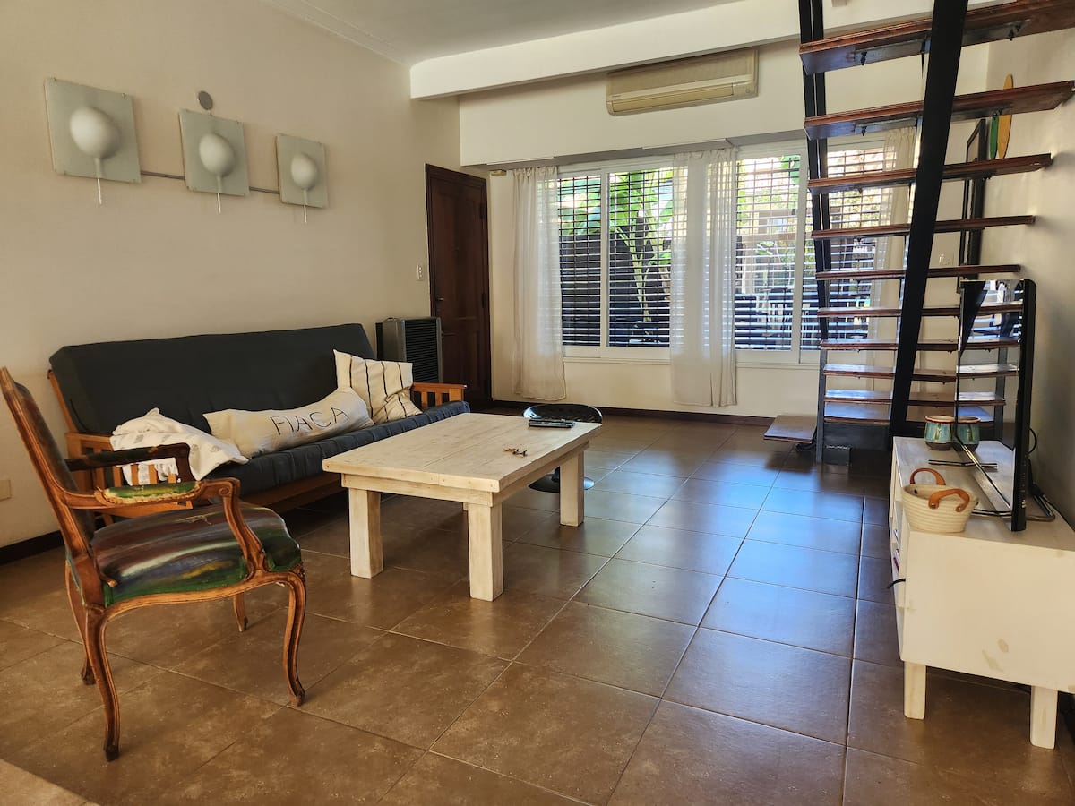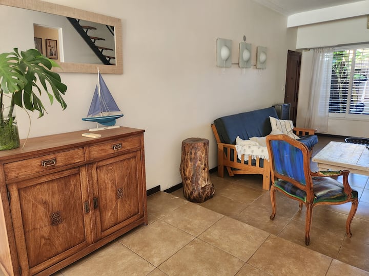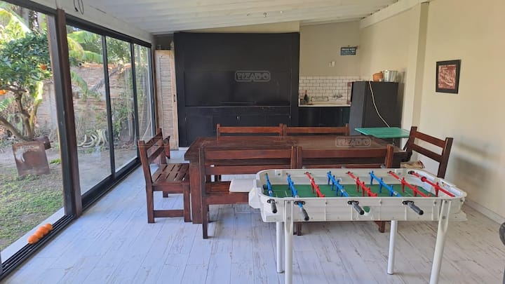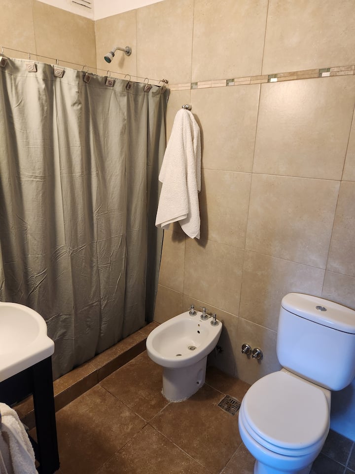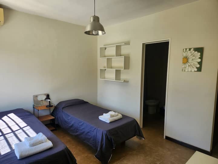 Double room in a house in Victoria. Shared kitchen, living and dining areas with TV, plus a dining room with garden views. The property has a large pool, garden and barbecue (quincho). Public transport includes buses 2 blocks away and Mitre train station 4 blocks away.