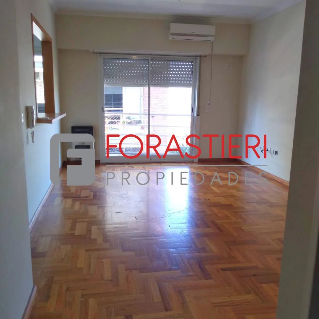 Two-room apartment with a studio layout in Victoria, available from May 2026. Living-dining area with a balanced flue heater and air conditioning, integrated with a practical kitchen with lower cabinets. Bedroom with a built-in wardrobe and direct access to a private balcony. Includes an assigned parking space and two storage rooms (bauleras). The building has a residents' lounge (SUM) and a terrace. Location: 200 metres from Av. Perón, 200 metres from the shopping centre, and 500 metres from th
